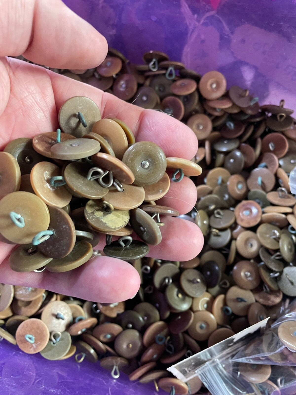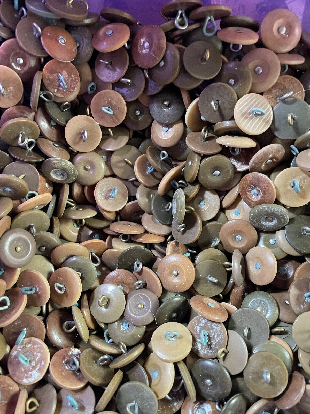 For each purchase you will receive one group of 15 x original WW2 British Army Economy Issue Tunic Buttons from the lot shown.