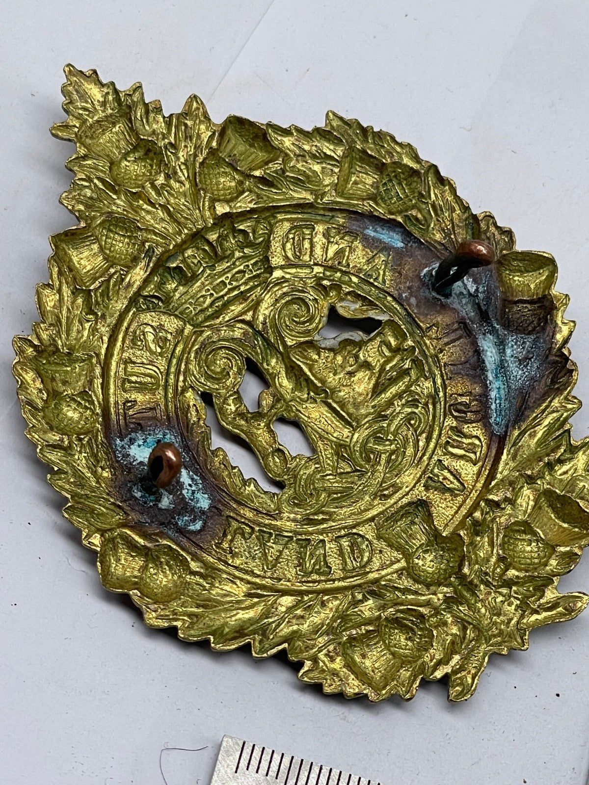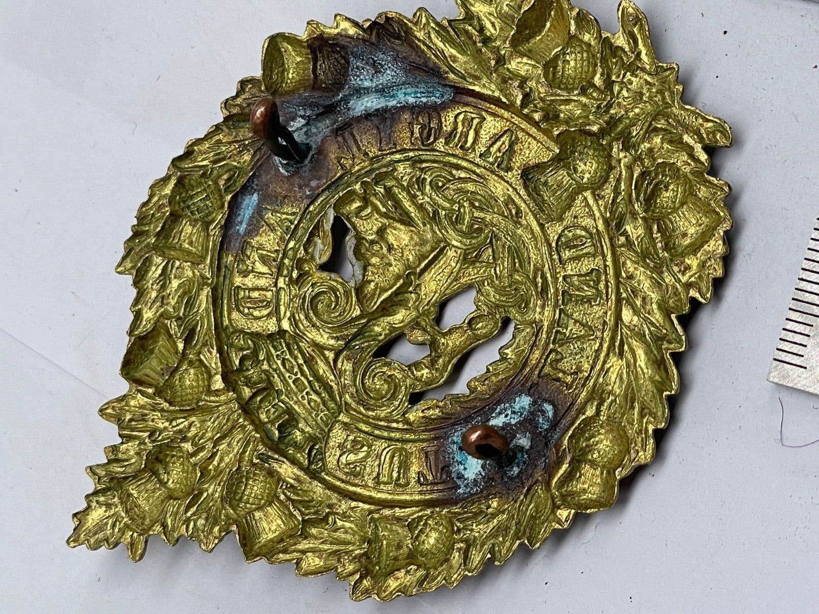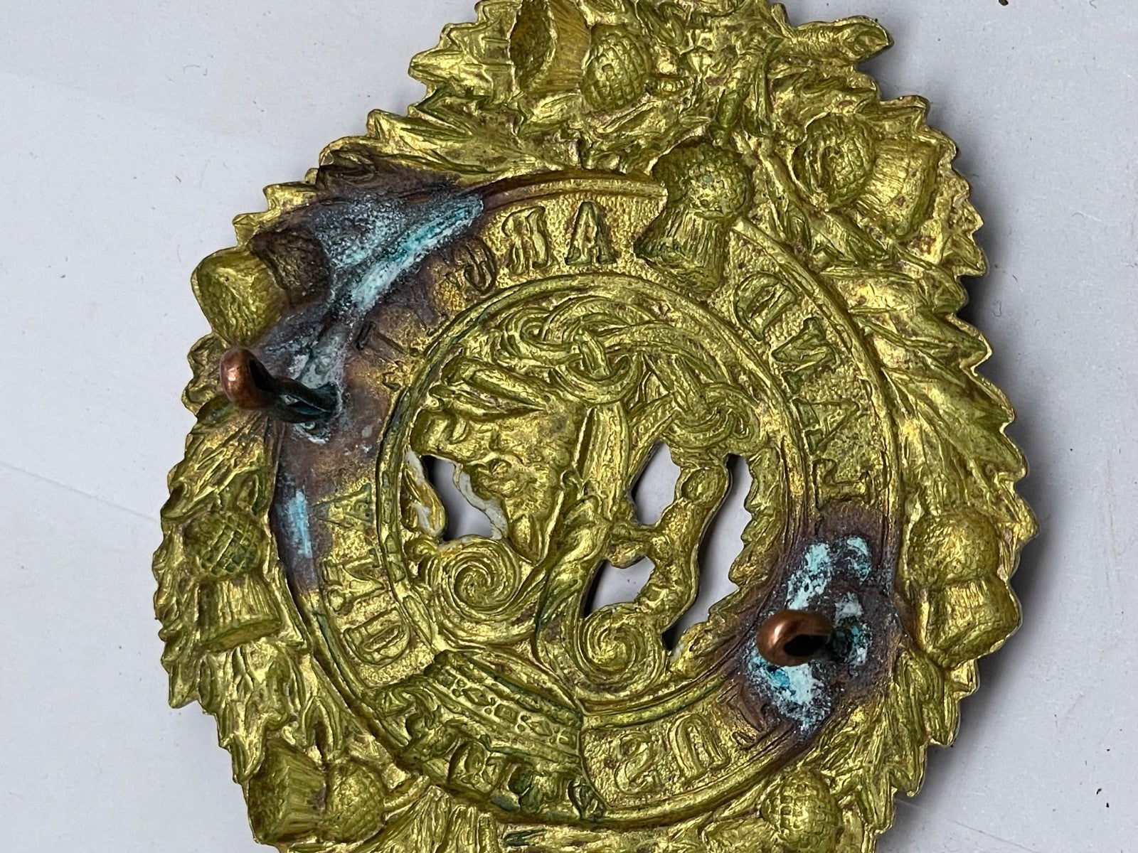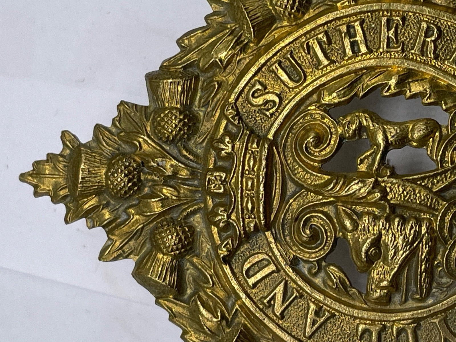 Argyll & Sutherland Highlanders 1916 Economy Glengarry Cap Badge - Brass / gilt original.