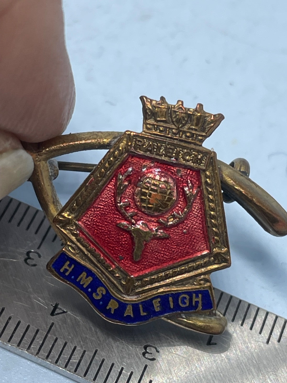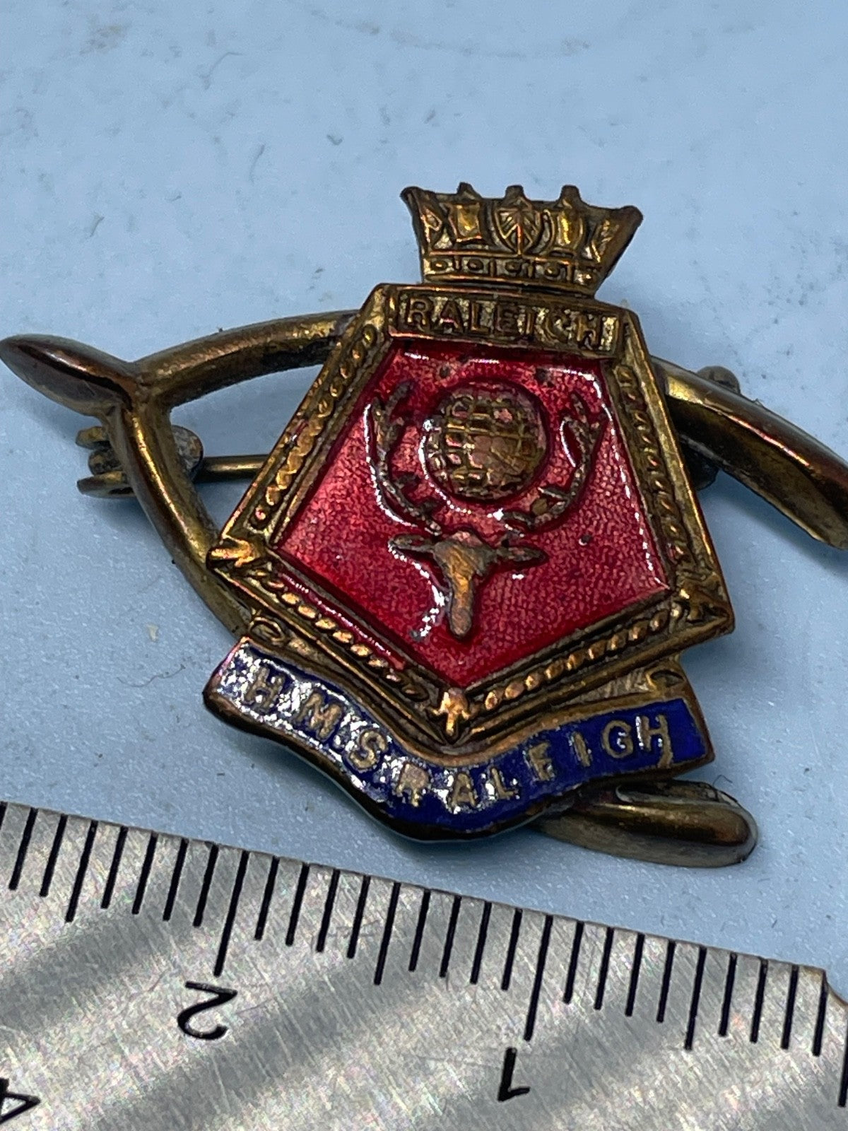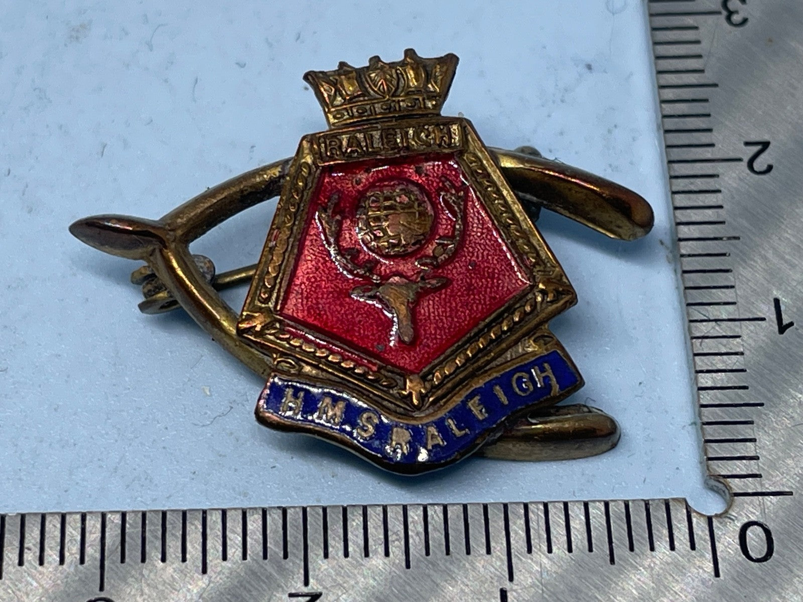 HMS Raleigh Sweetheart Brooch - Gilt & Enamel - Raleigh is a British Training Base in Cornwall.
