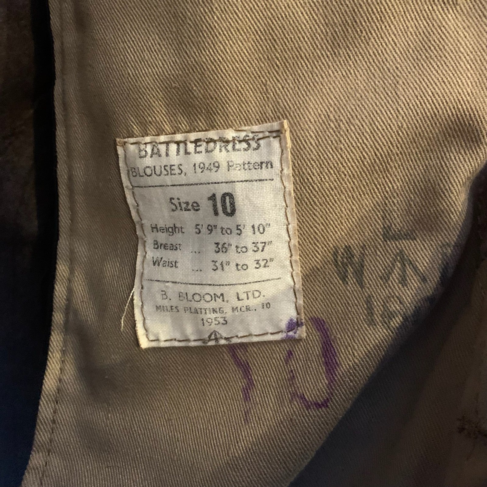 Original British Army Battledress Jacket - South Stafford - Size 10 - 37" Chest
