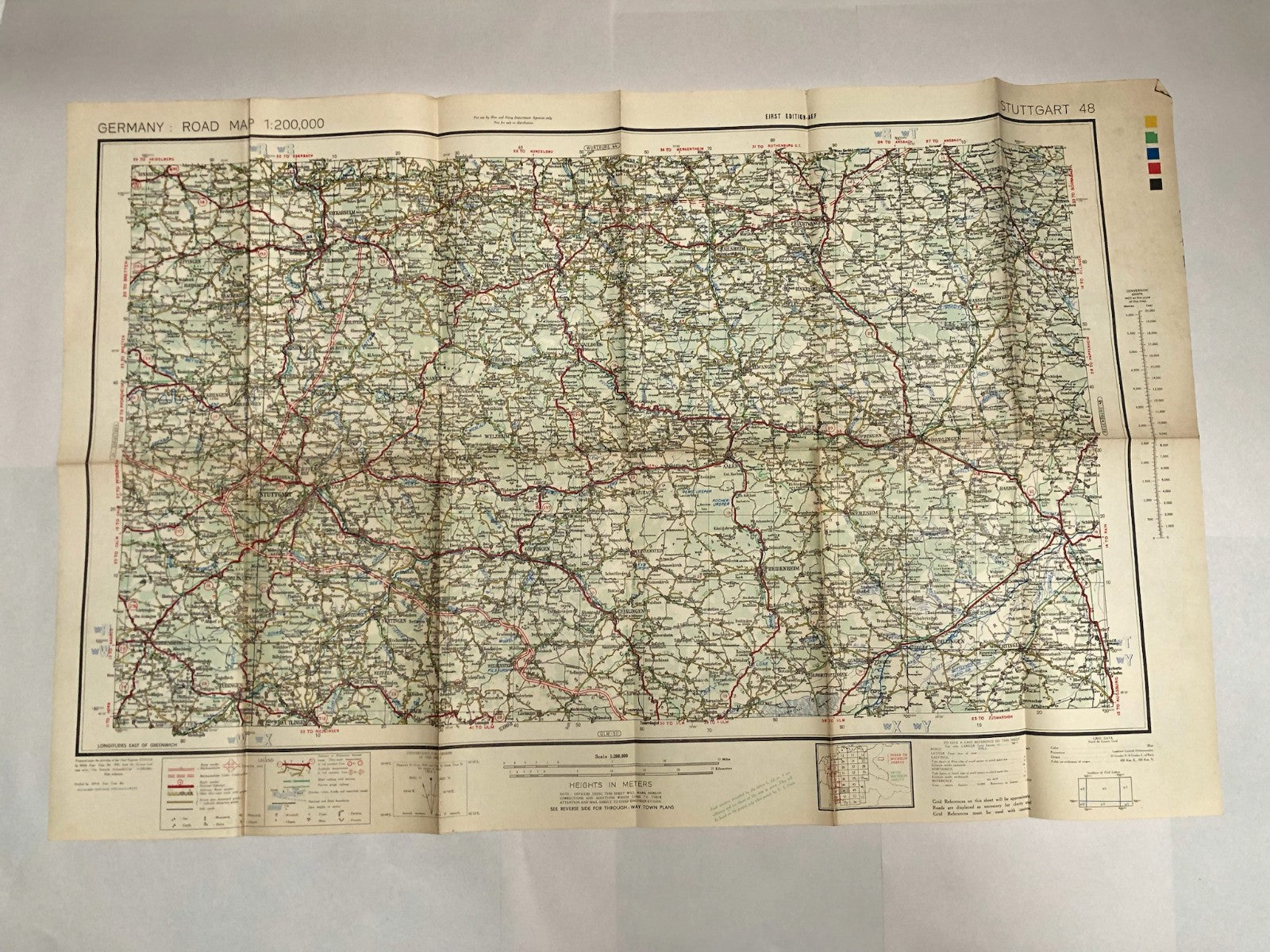 Original British Army Road Map of Stuttgart Germany