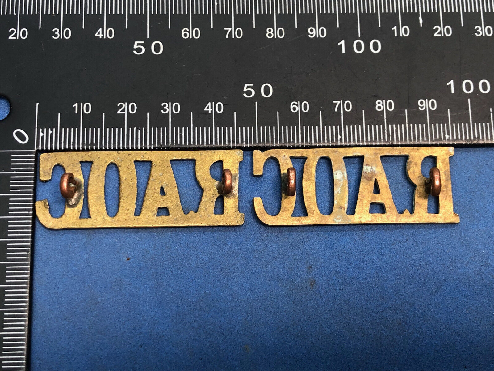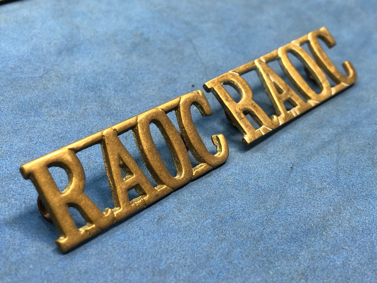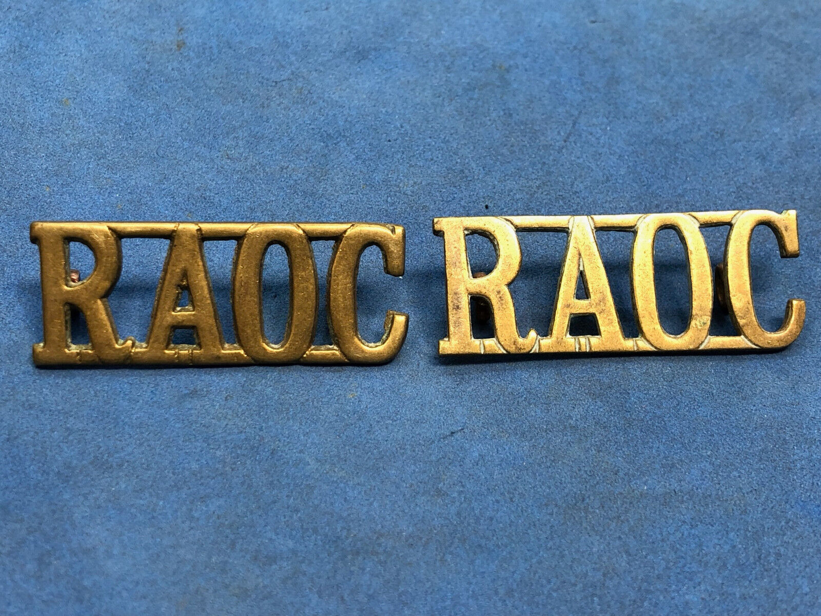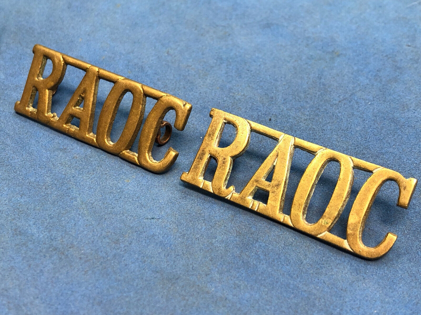 Original Pair of WW2 Brass British Army Shoulder Titlea RAOC Army Ordnance Corps