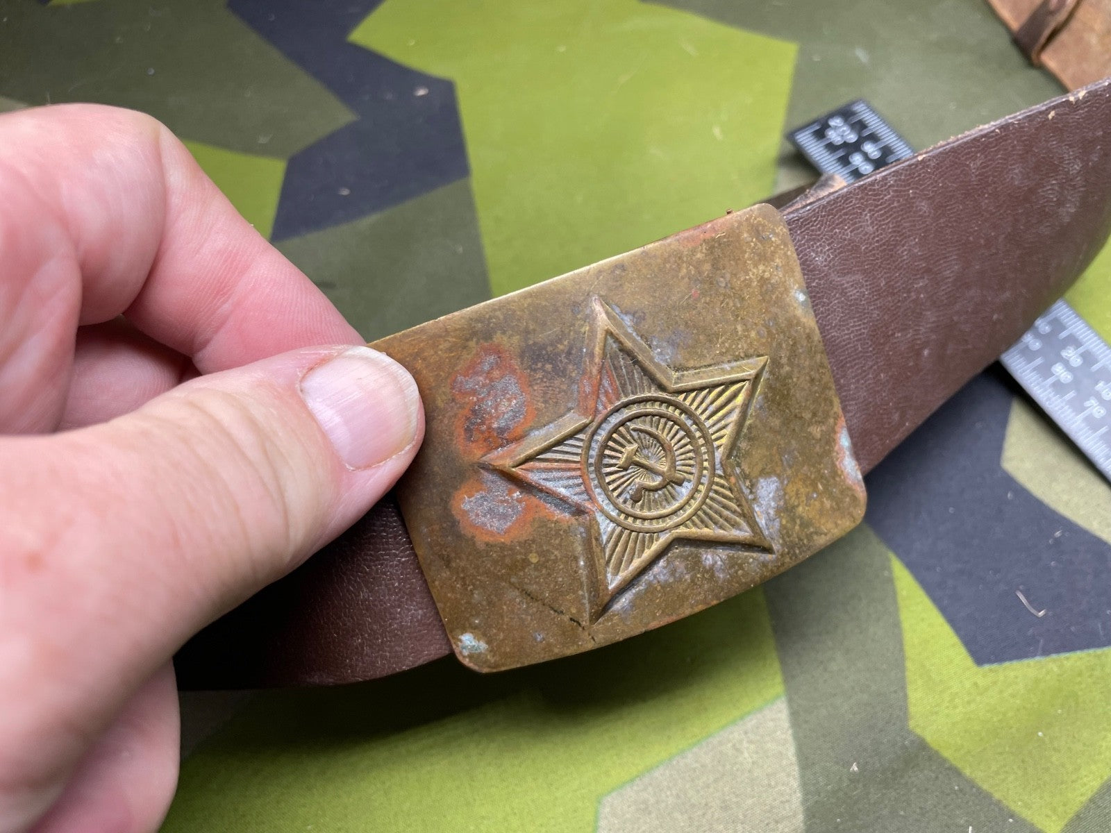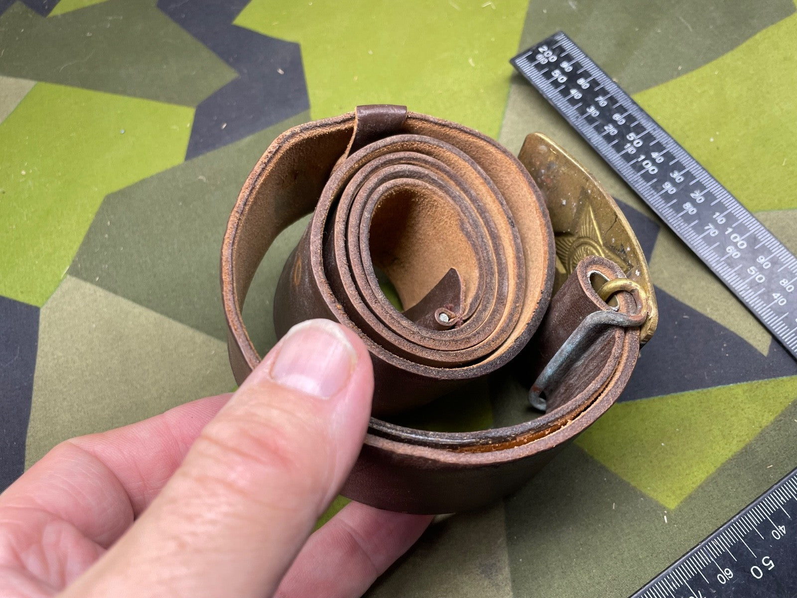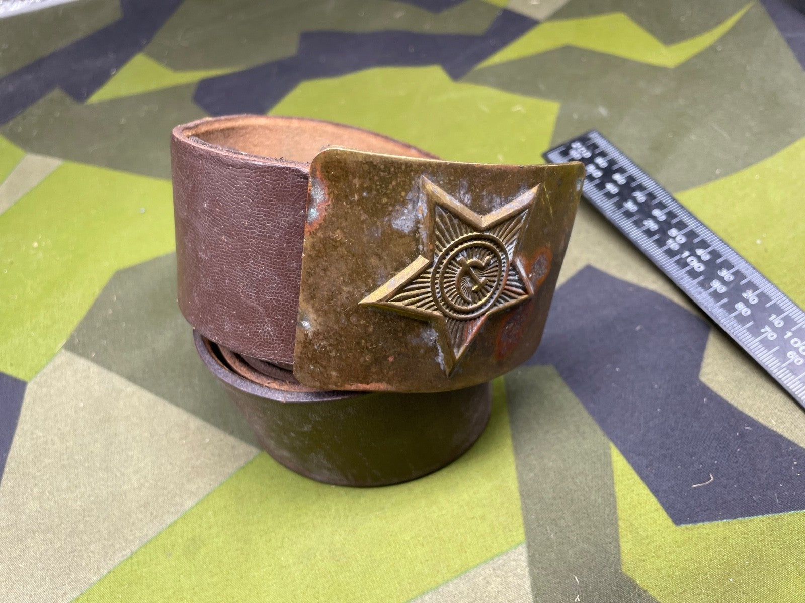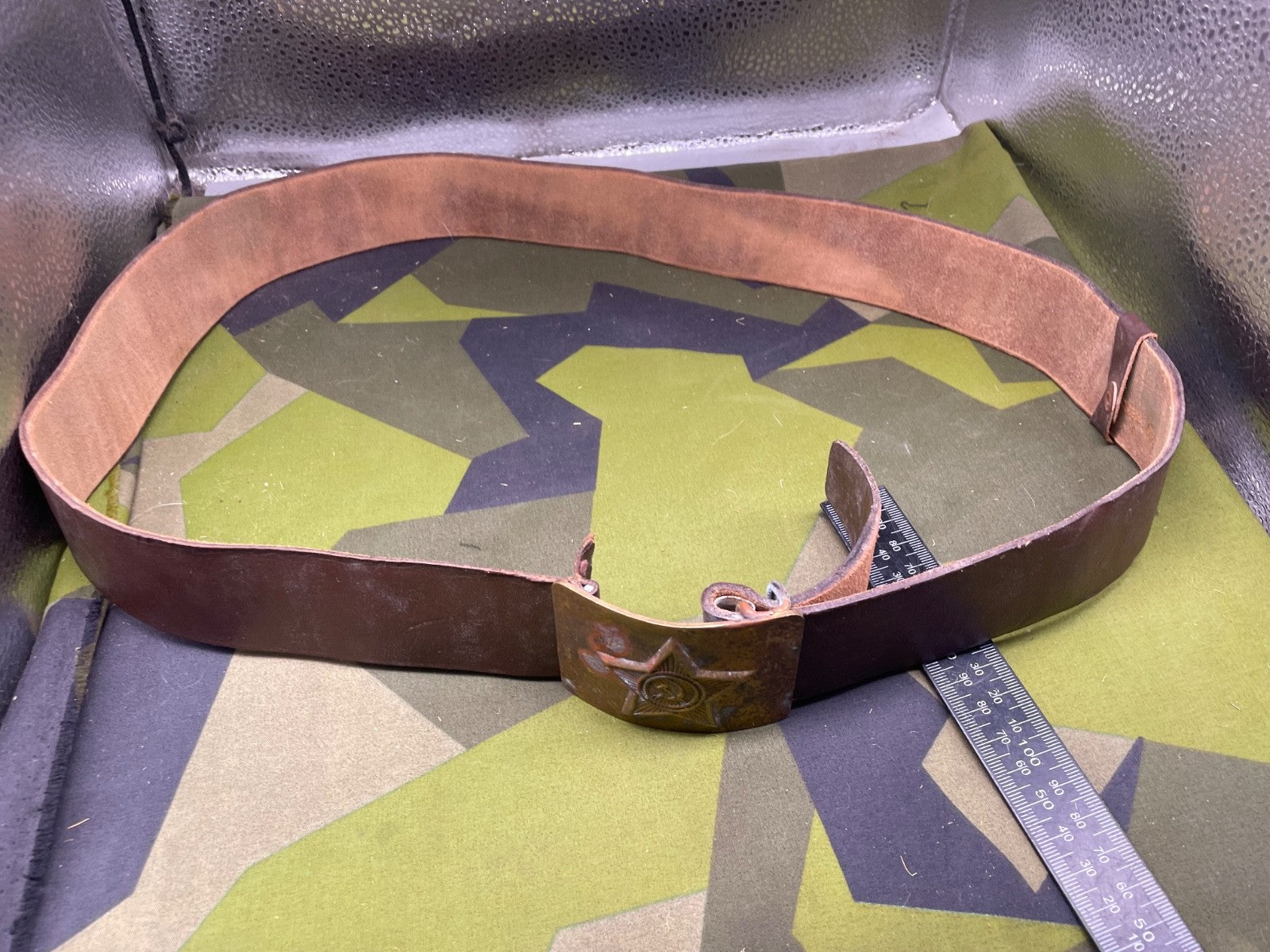 Original Soviet Era Russian Army Belt & Brass Buckle - approximately 40" waist.