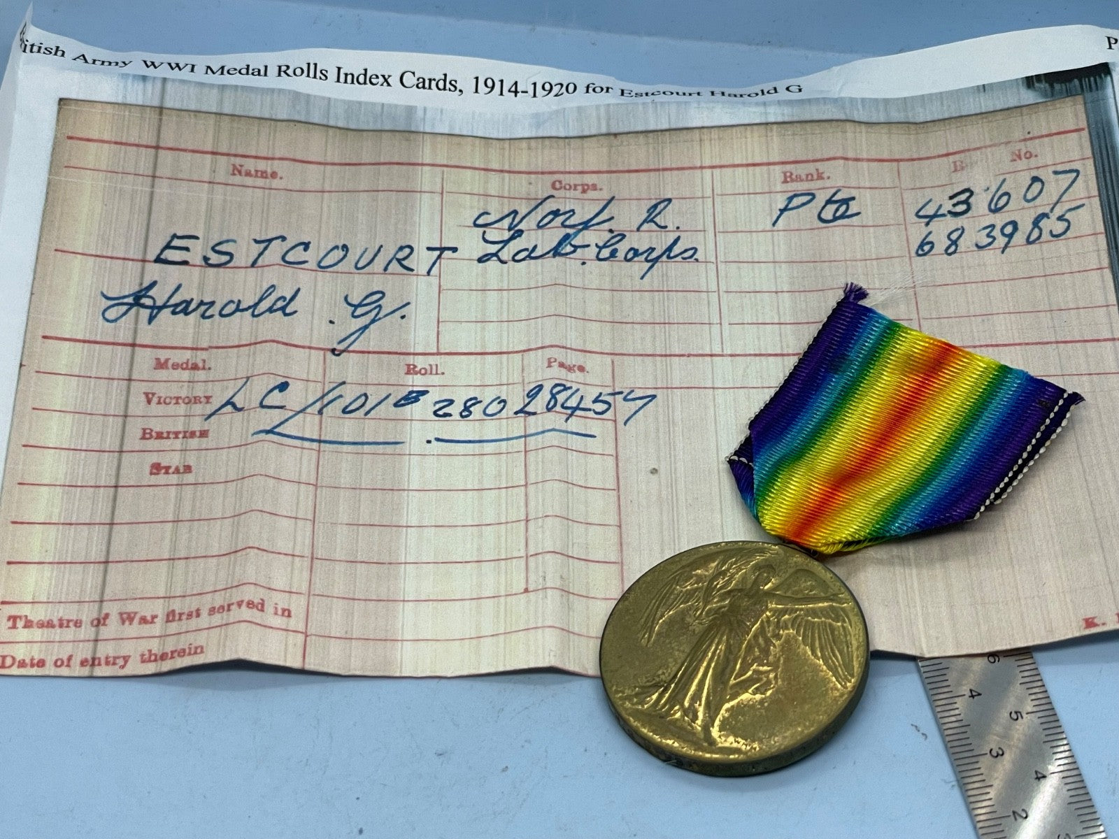 Original WW1 British Army Victory Medal - Pvt HGE ESTCOURT Northumberland Fusiliers.