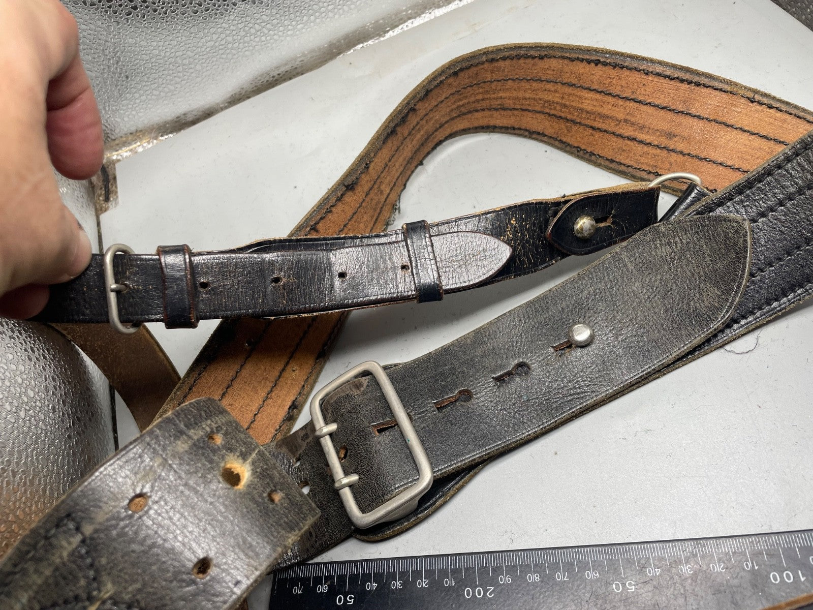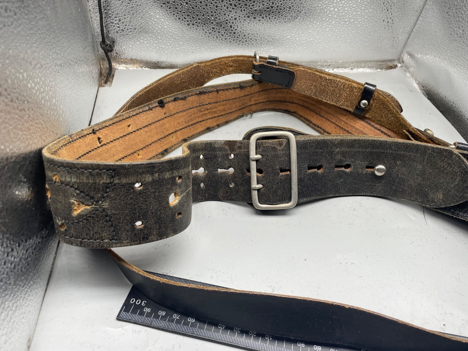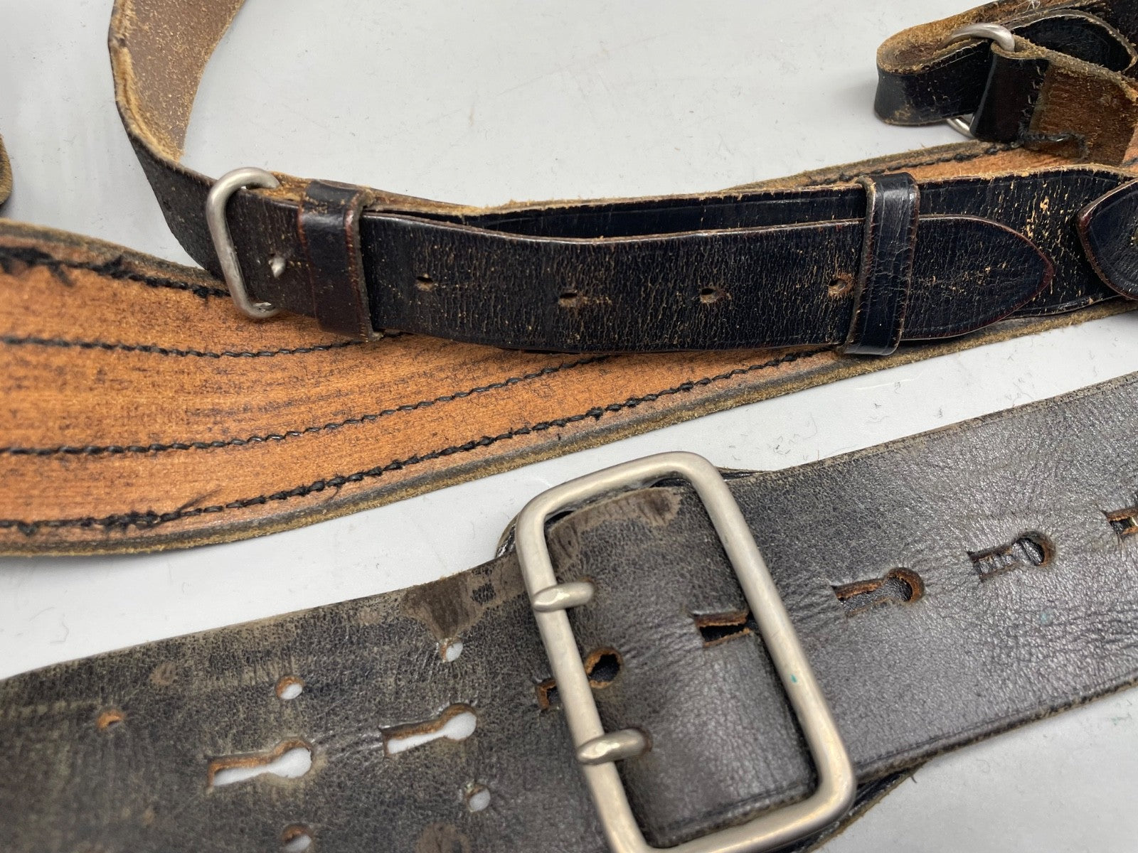 Original WW1 / WW2 British Army Officer's Leather Sam Browne Belt & Cross Strap