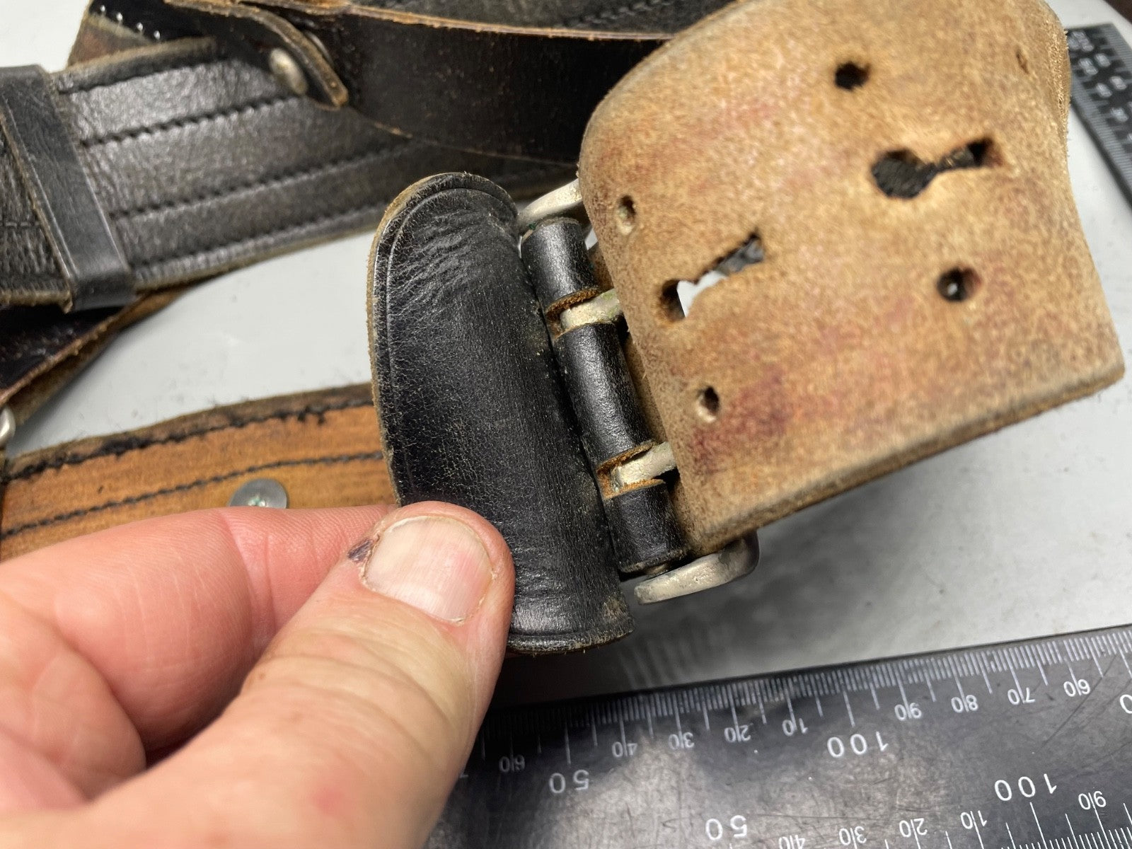 Original WW1 / WW2 British Army Officer's Leather Sam Browne Belt & Cross Strap - 46" Waist.