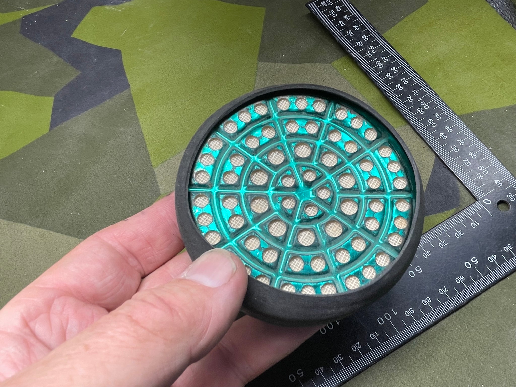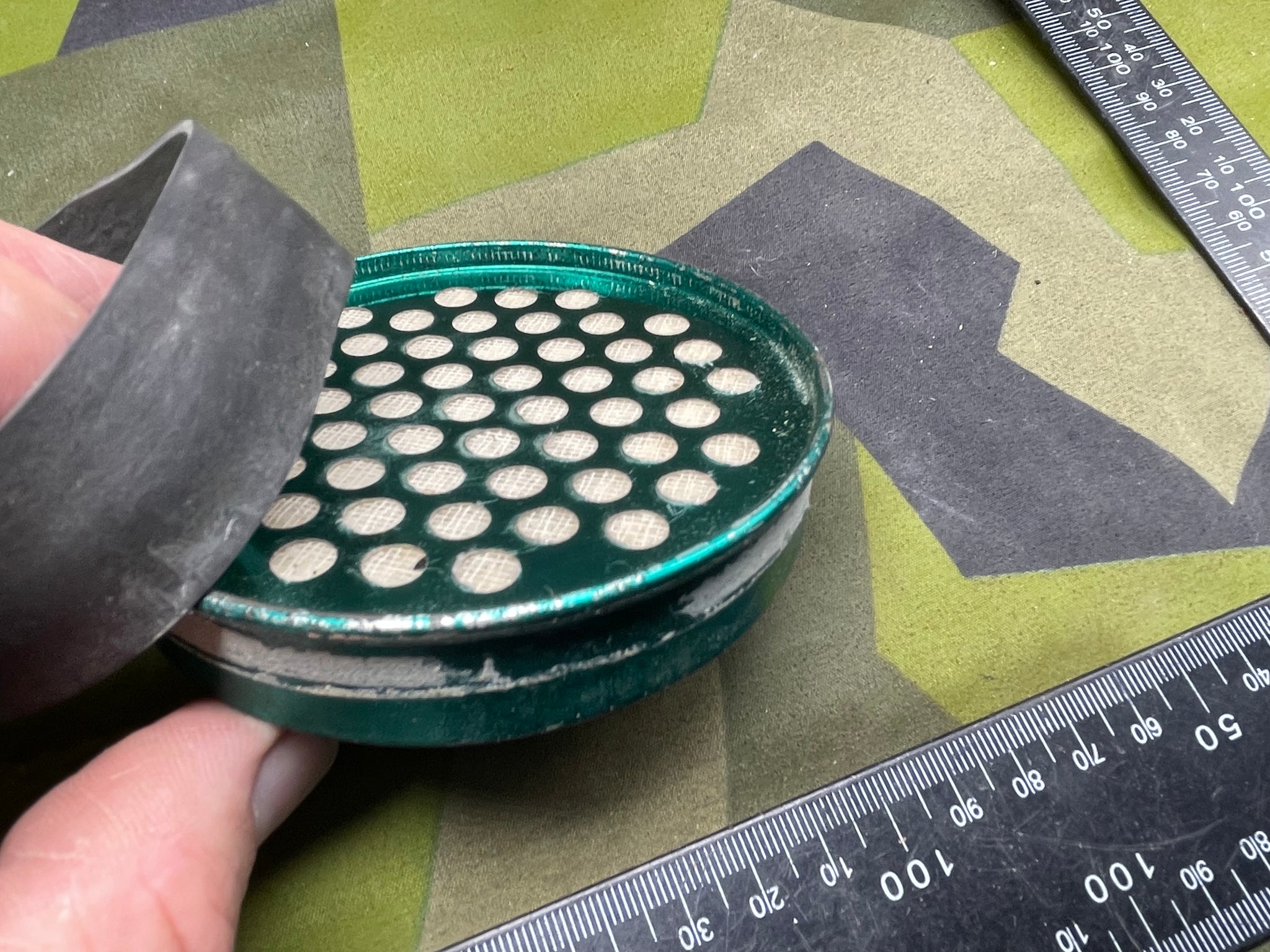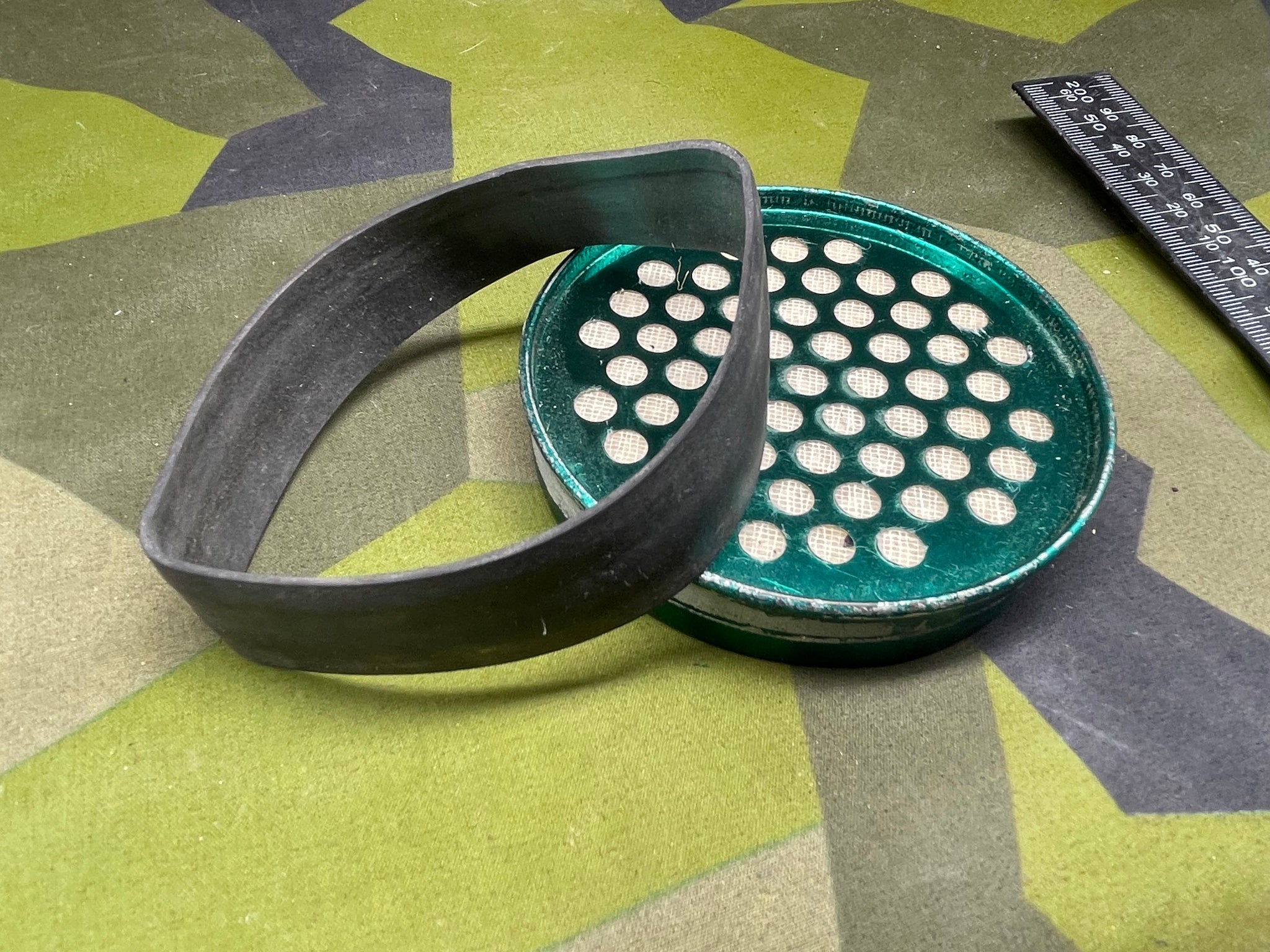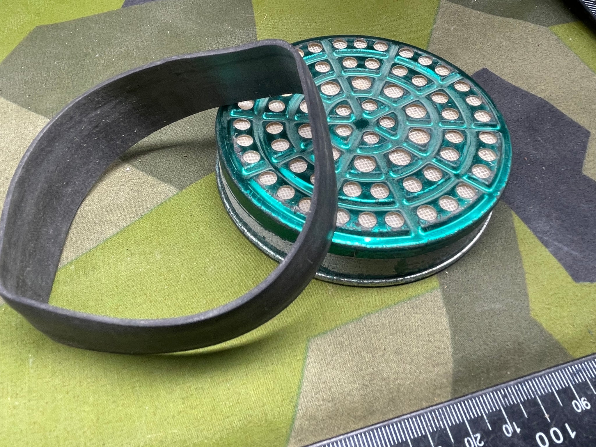 Original WW2 British Home Front Gas Mask Spare Filter & Band.