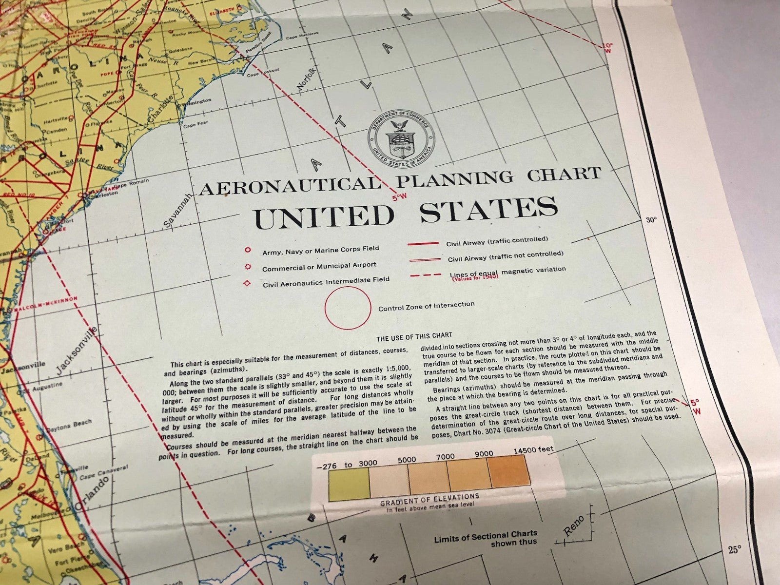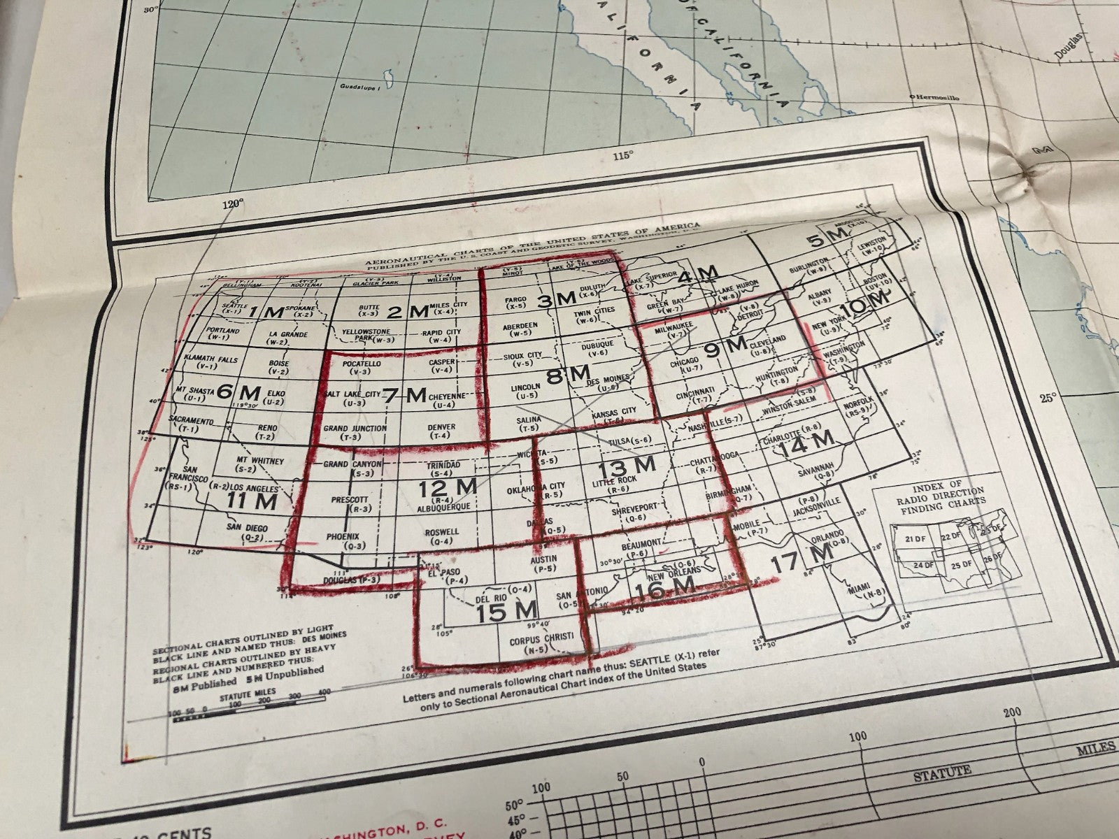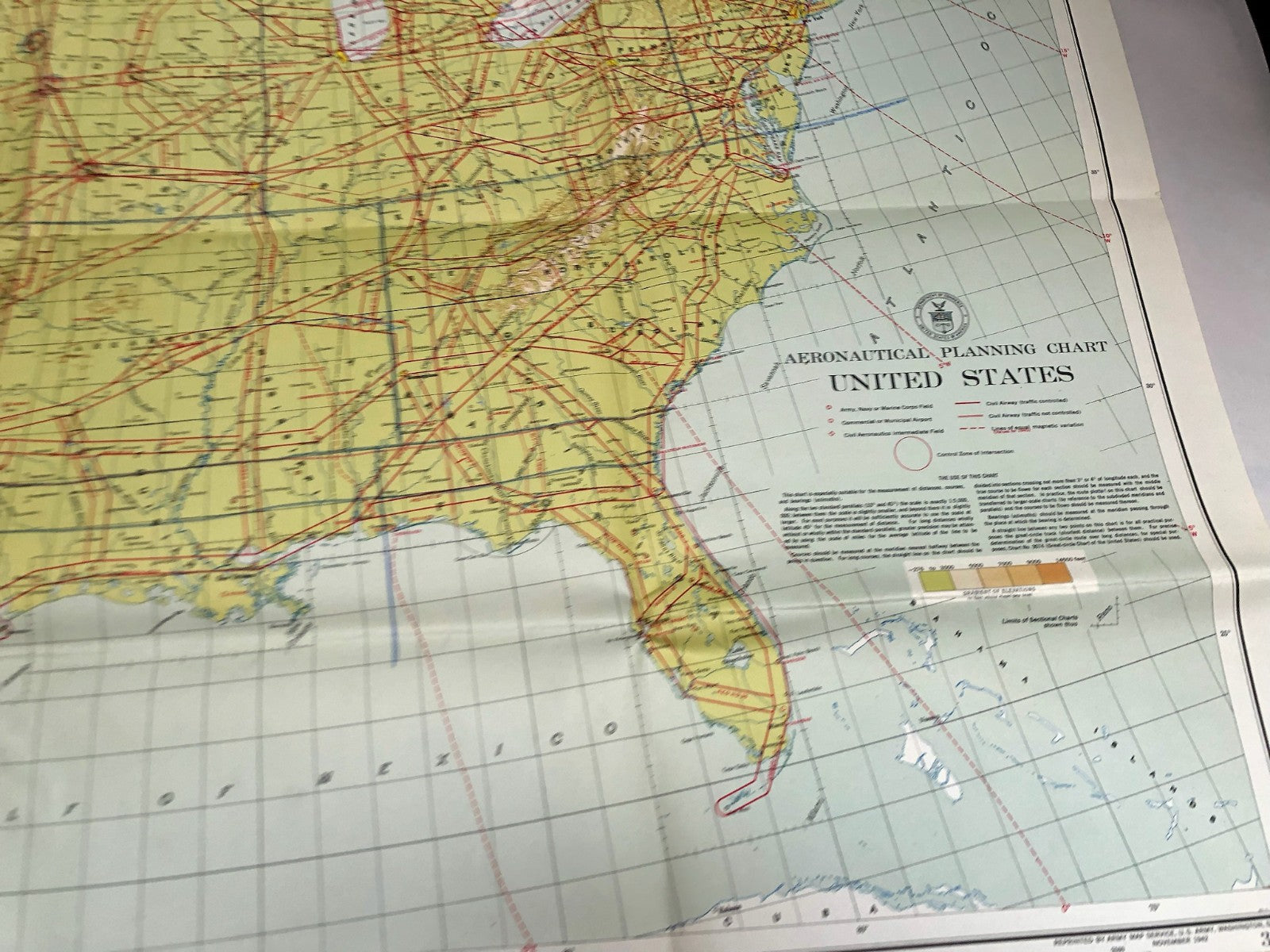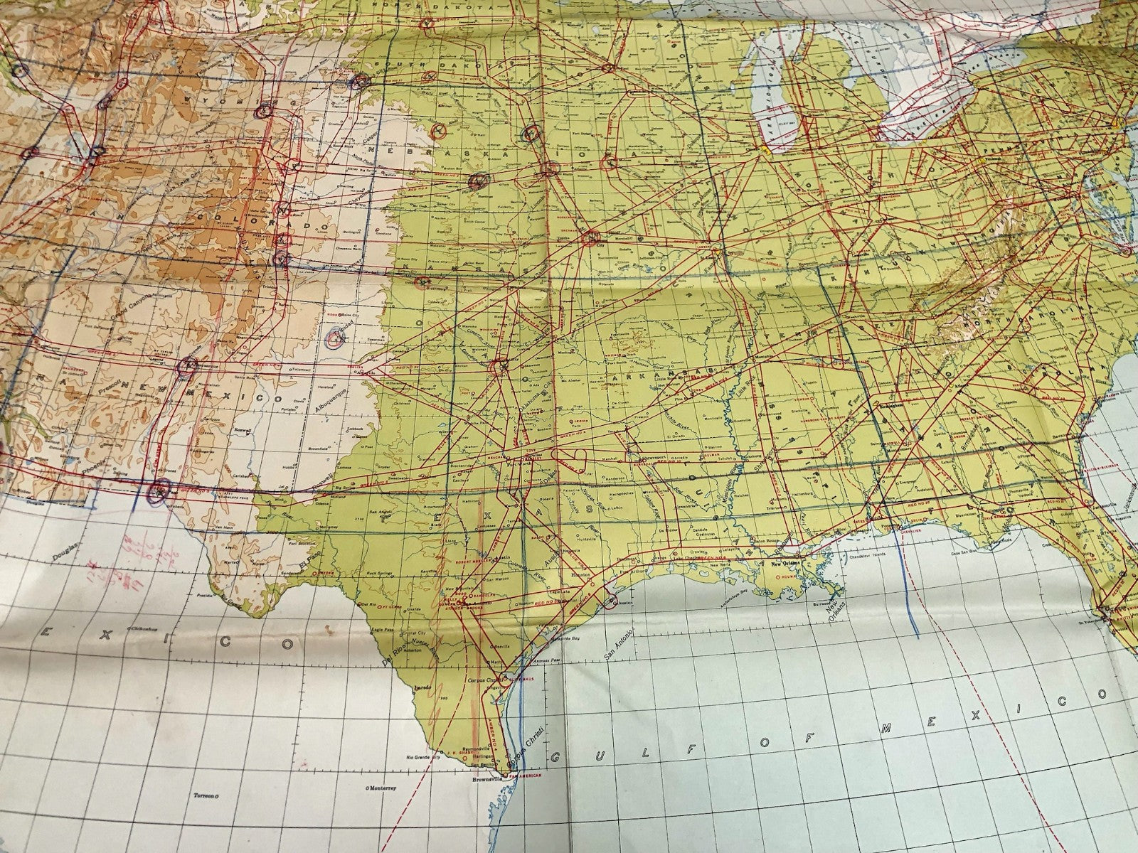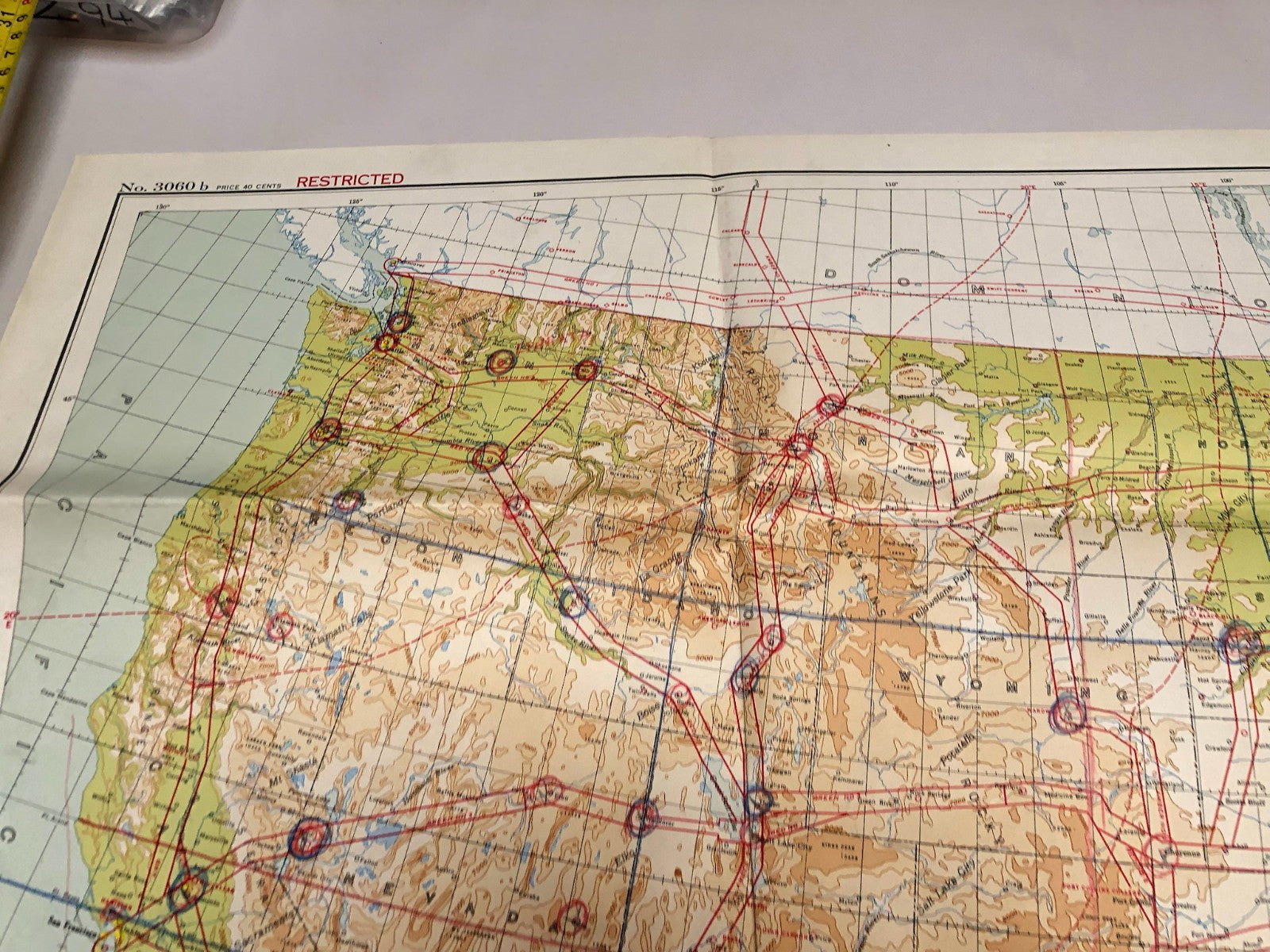 Original WW2 US Air Force Restricted Map Chart of the USA - CONUS - Annotated