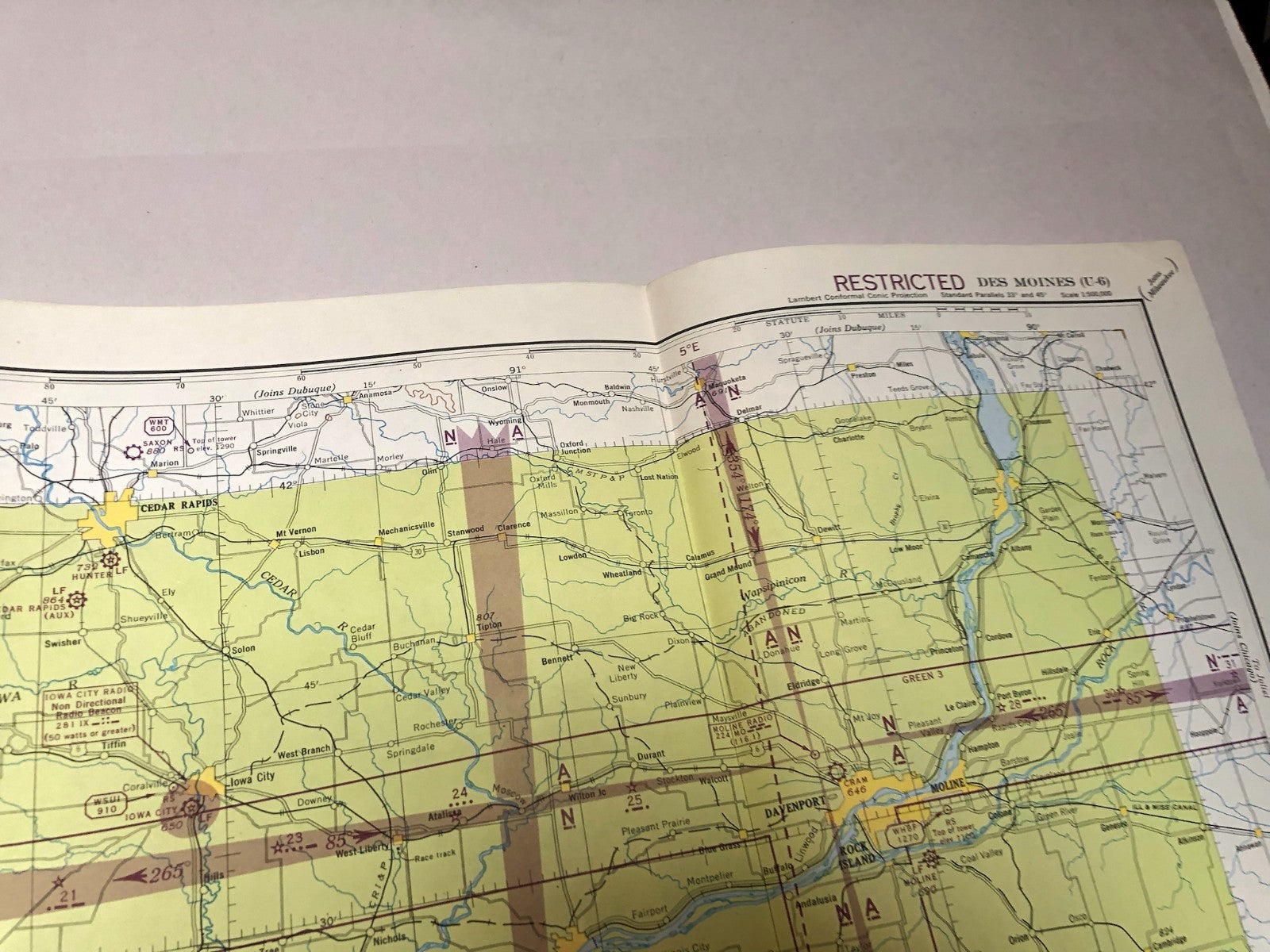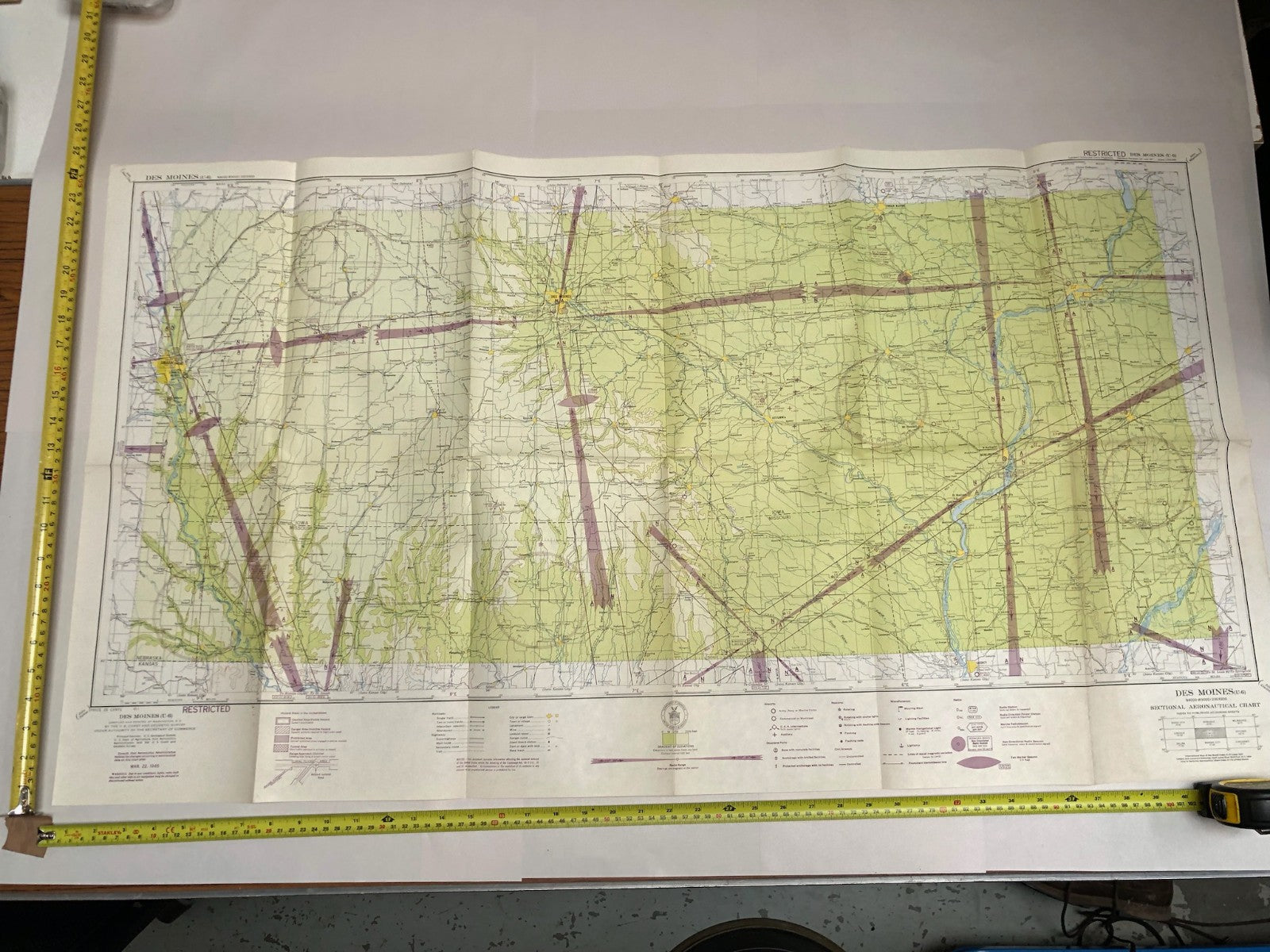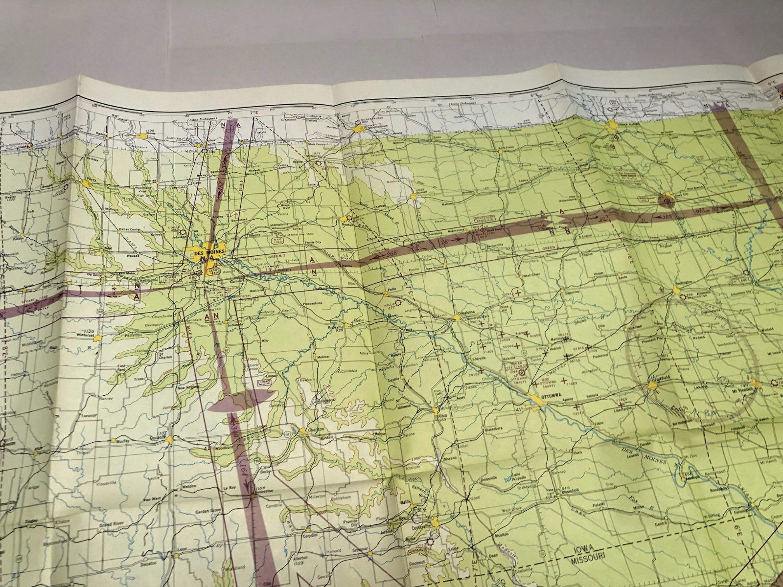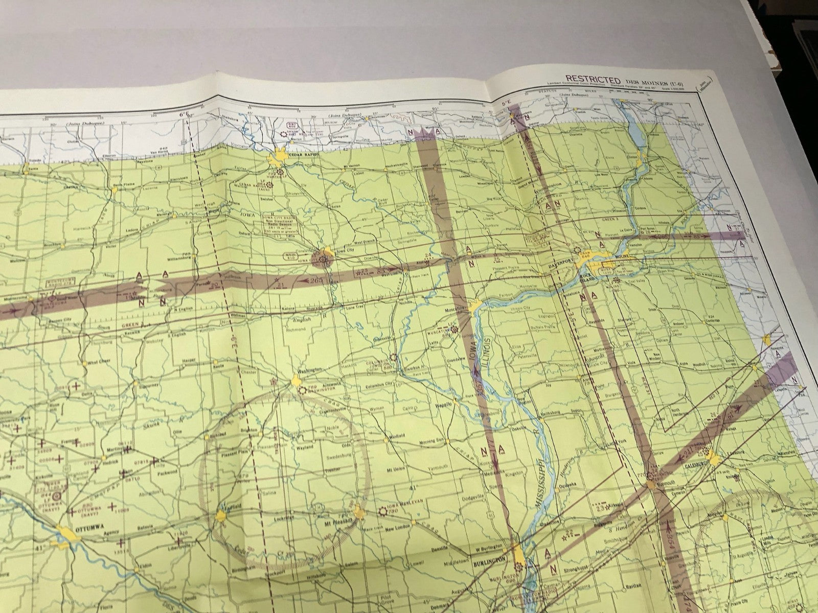 Original WW2 US Air Force Restricted Map Chart of the USA - Des Moines