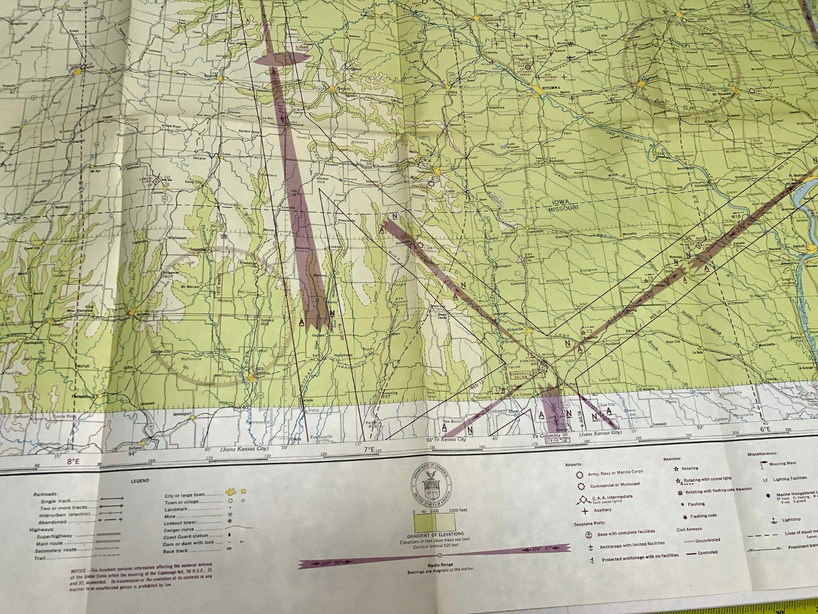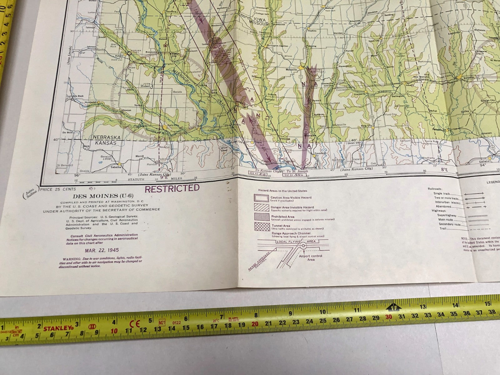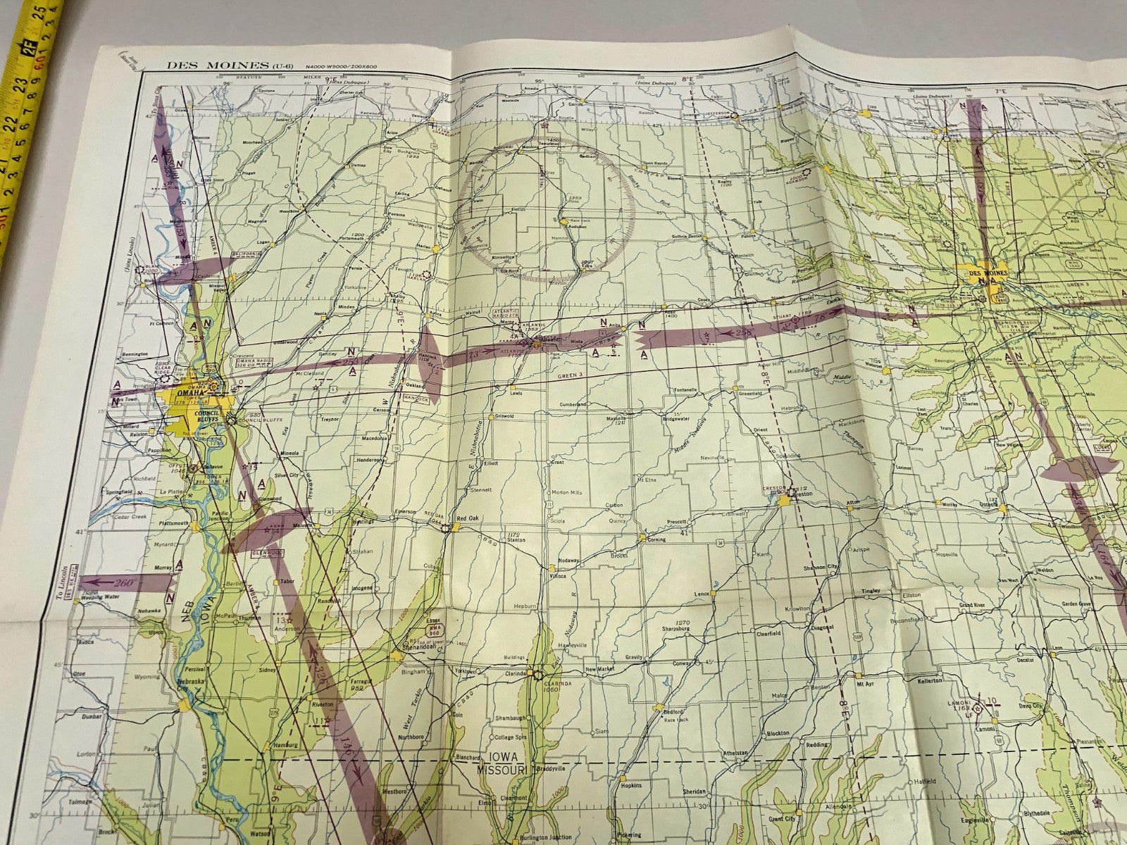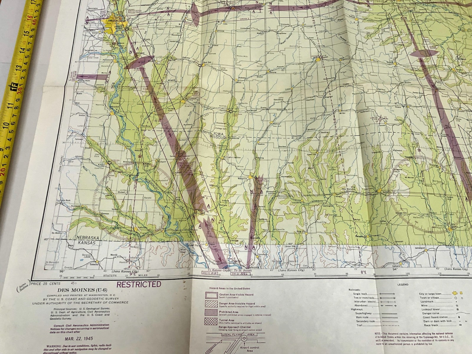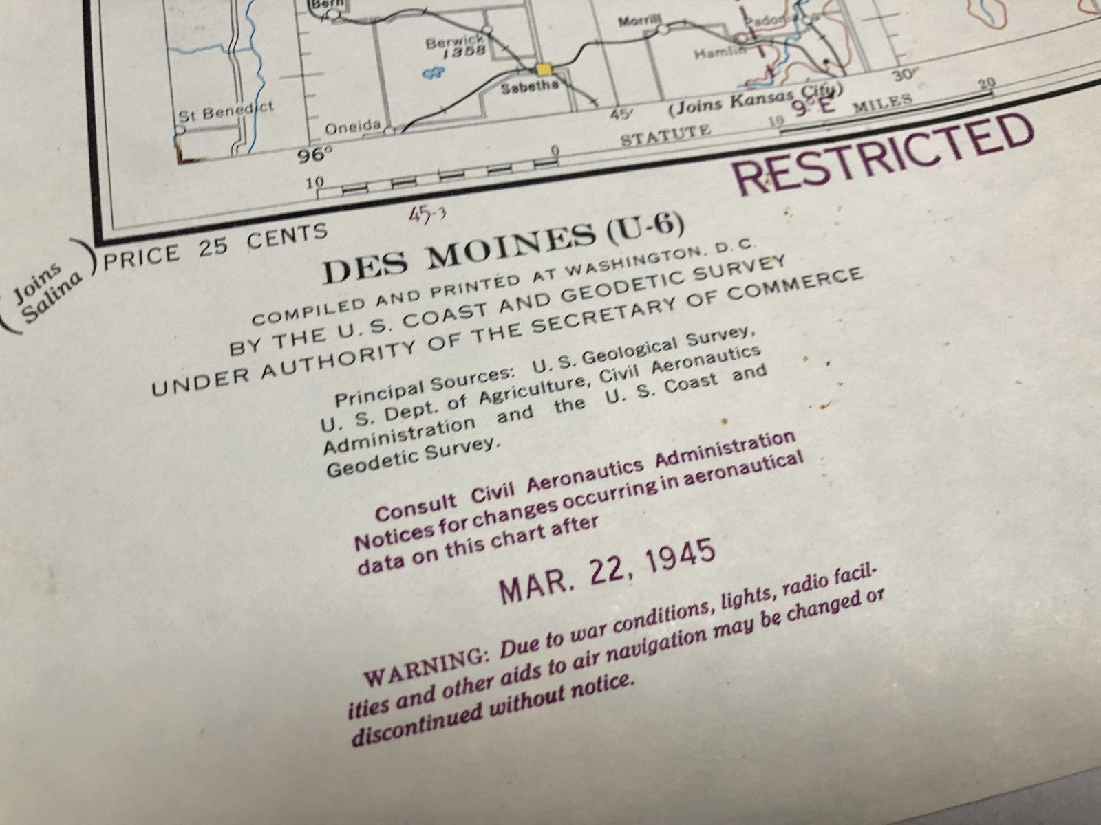 Original WW2 US Air Force Restricted Map Chart of the USA - Des Moines