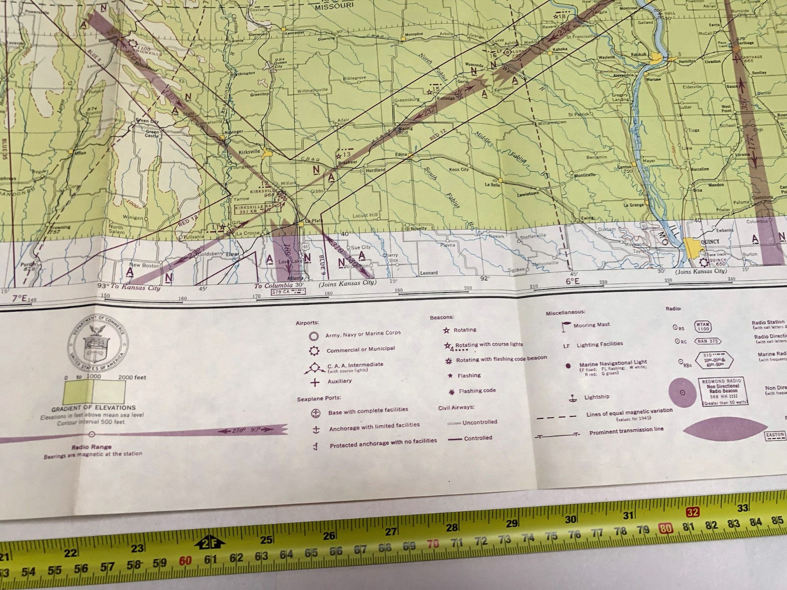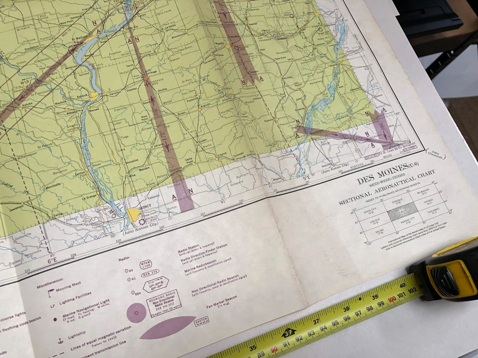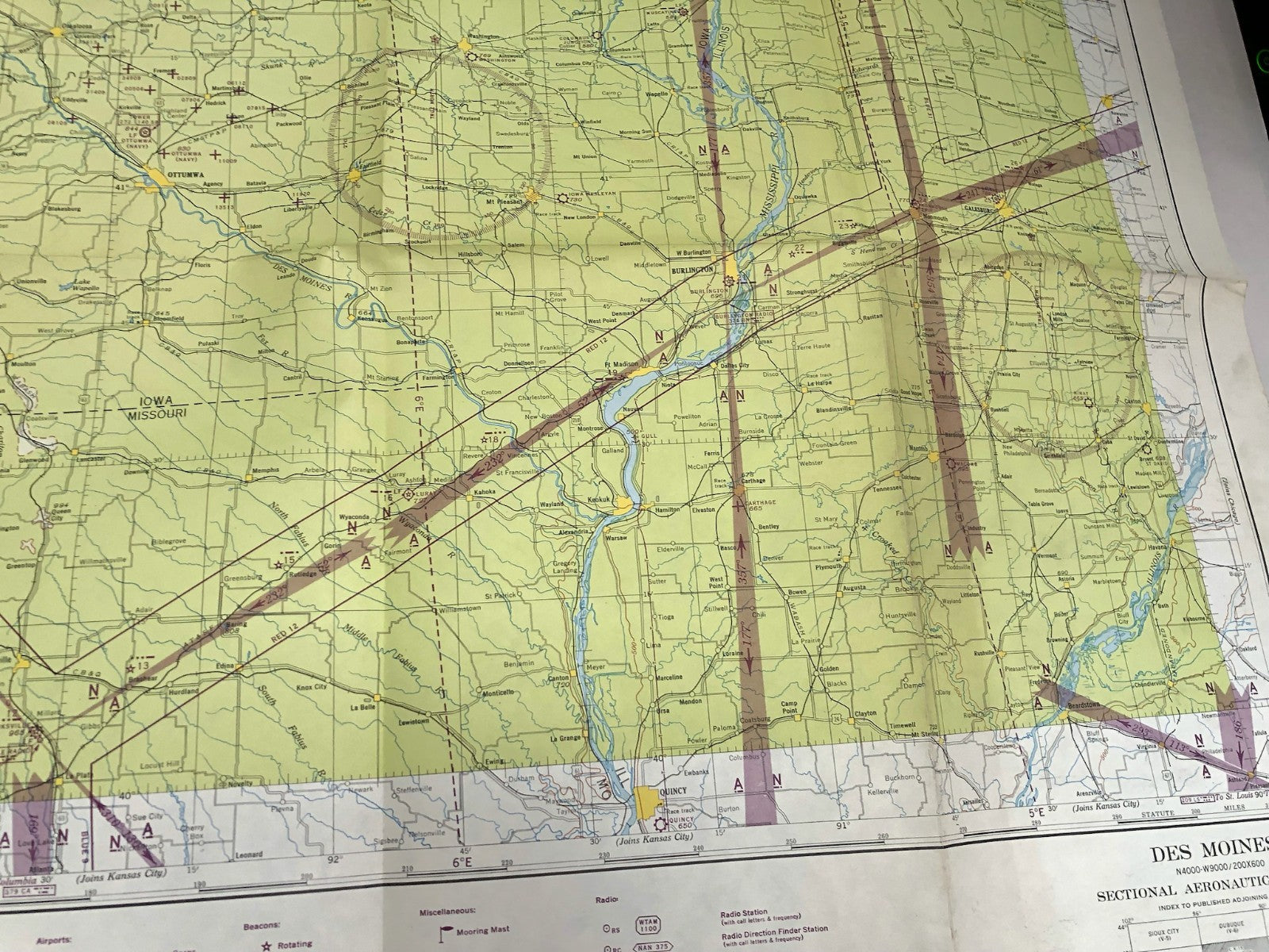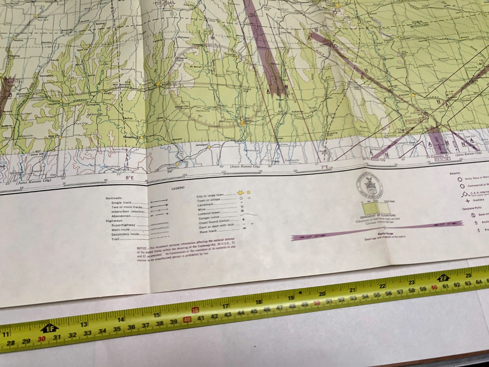 Original WW2 US Air Force Restricted Map Chart of the USA - Des Moines