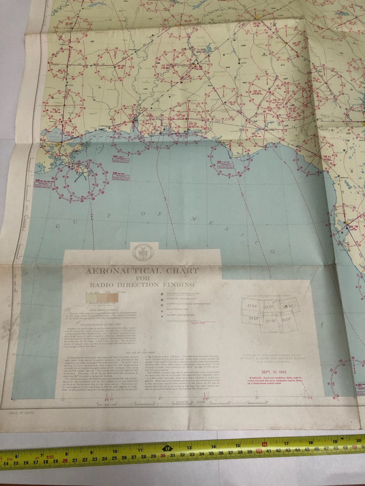 Original WW2 US Air Force Restricted Map Chart of the USA - Florida
