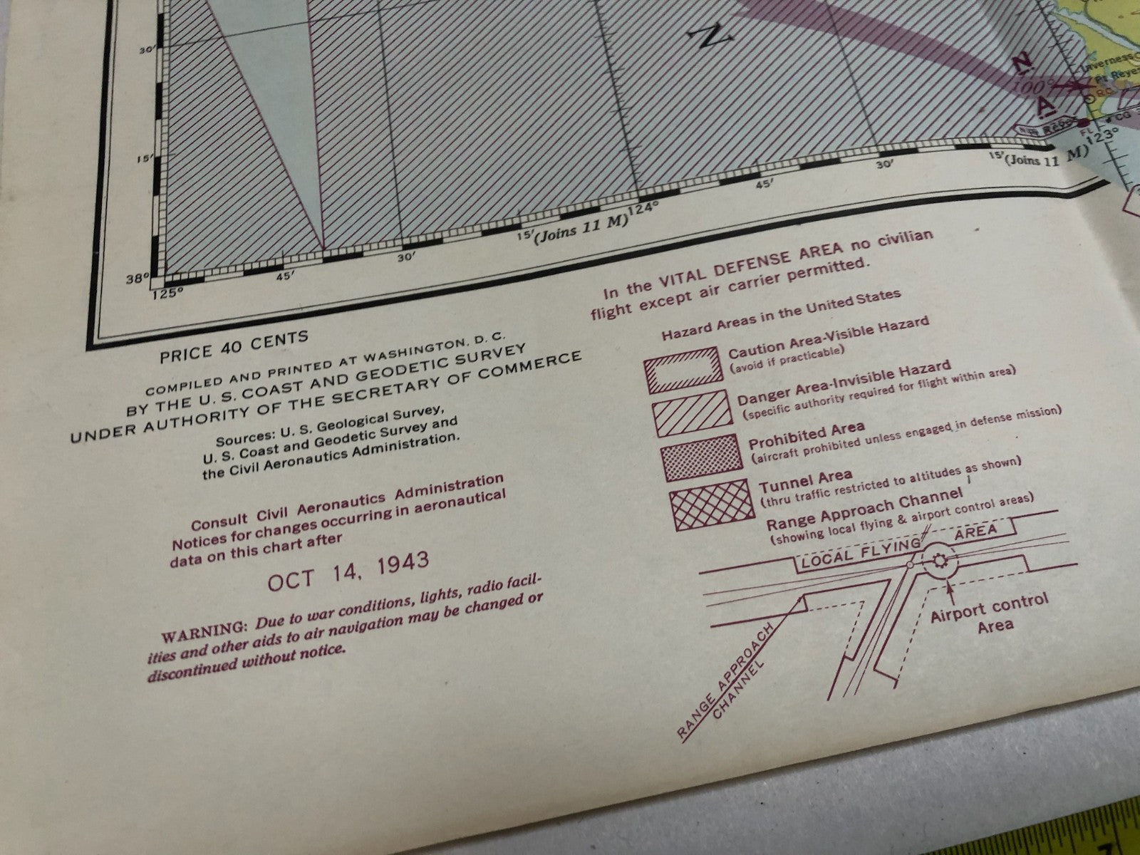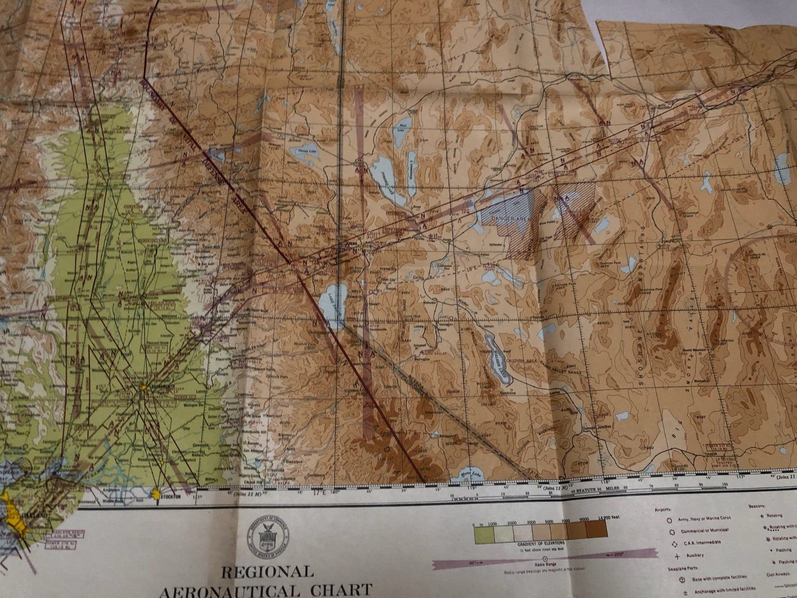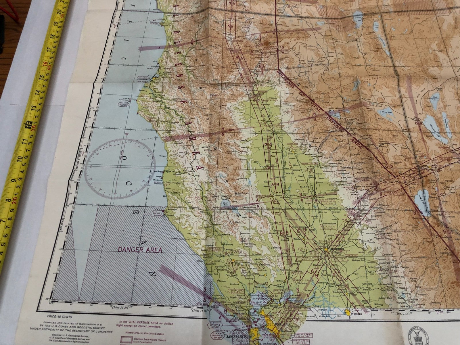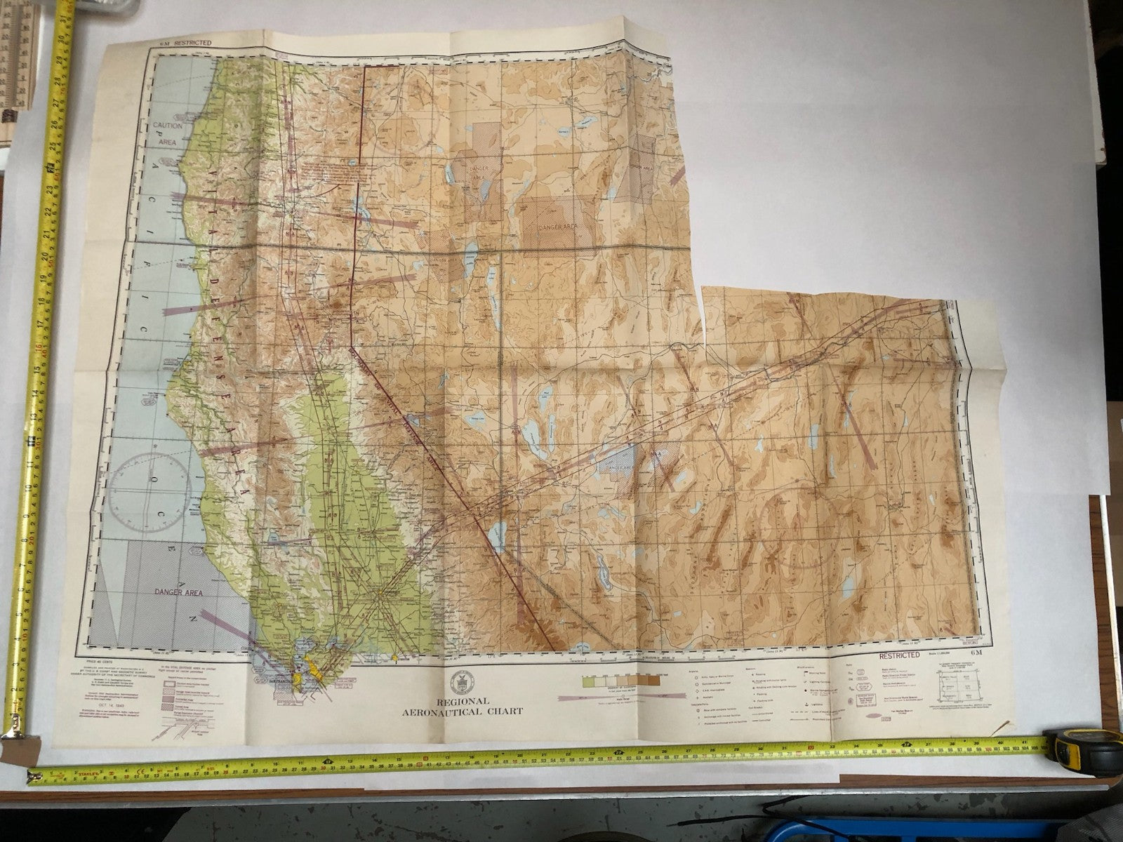 Original WW2 US Air Force Restricted Map Chart of the USA - San Fransisco