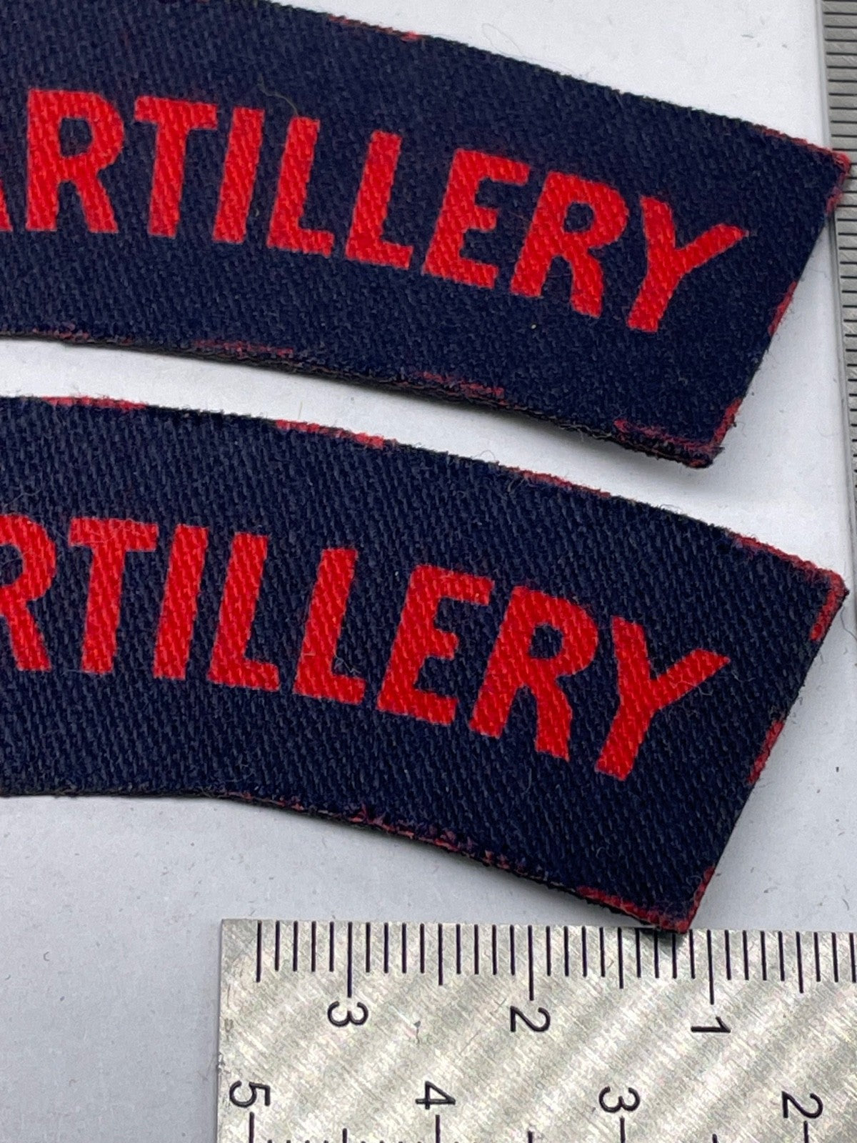 Royal Artillery WW2 British Army Printed Shoulder Titles - Original Pair.
