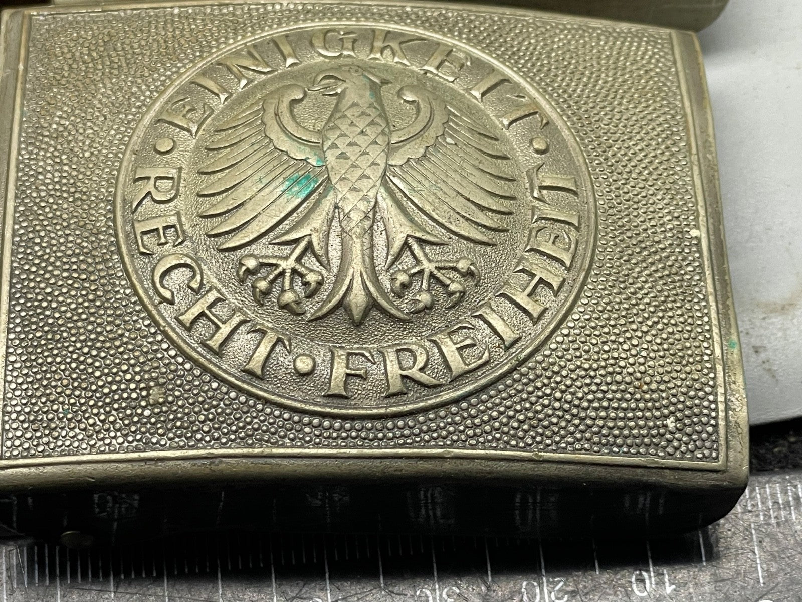 You are buying ONE West German Army Bundeswehr Belt Buckle. Original example with leather tab.