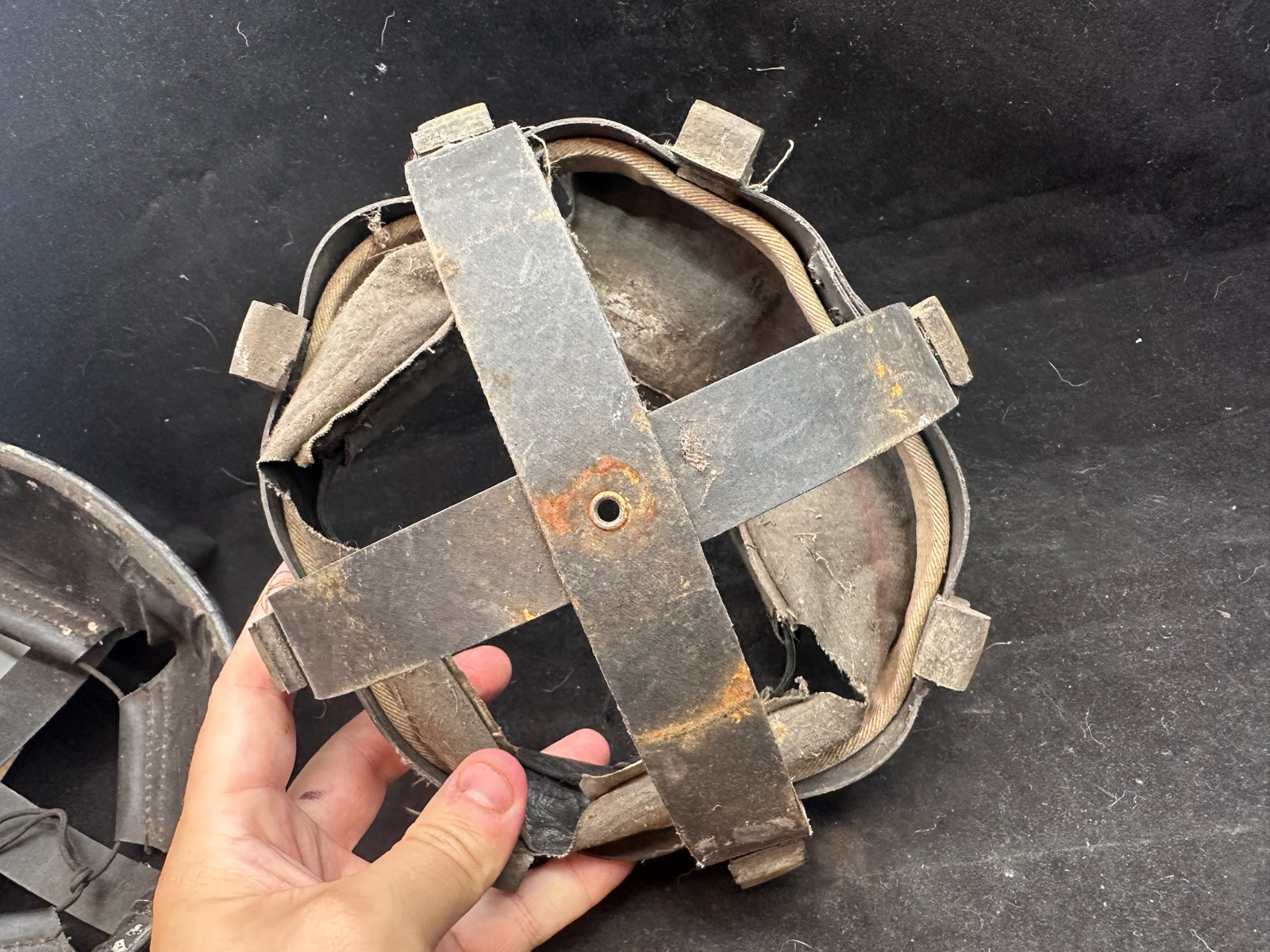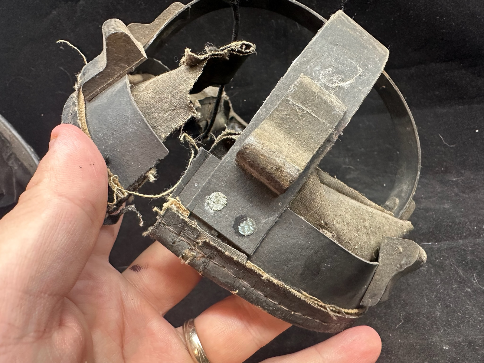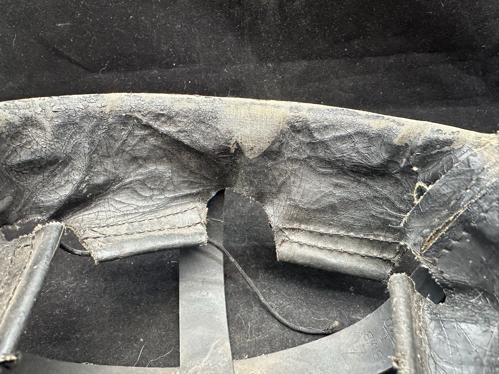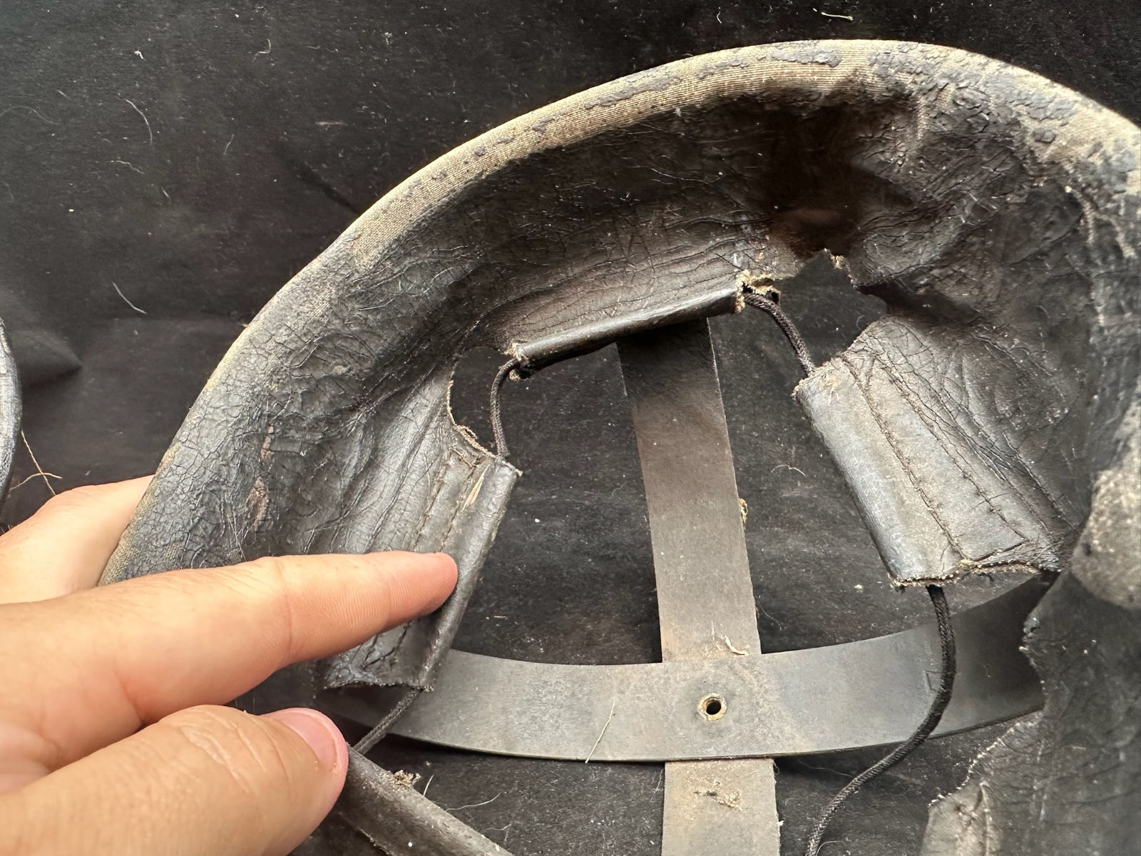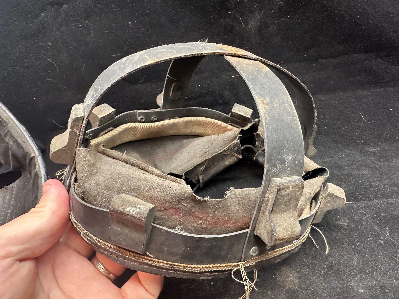 WW2 British Army Helmet Liner - This is a nice original that has been split (Normally to fit someone with a larger head than the listed size) so it could be re-attached, or left as it is.