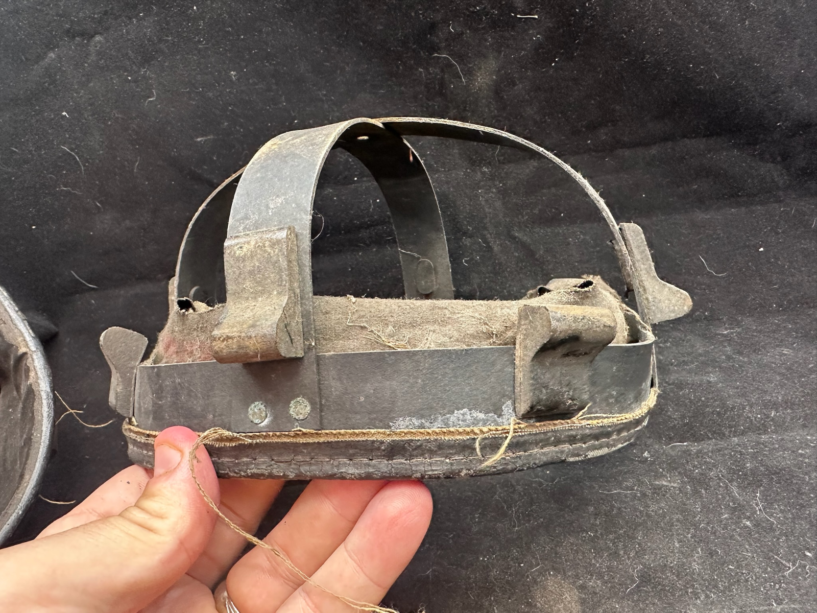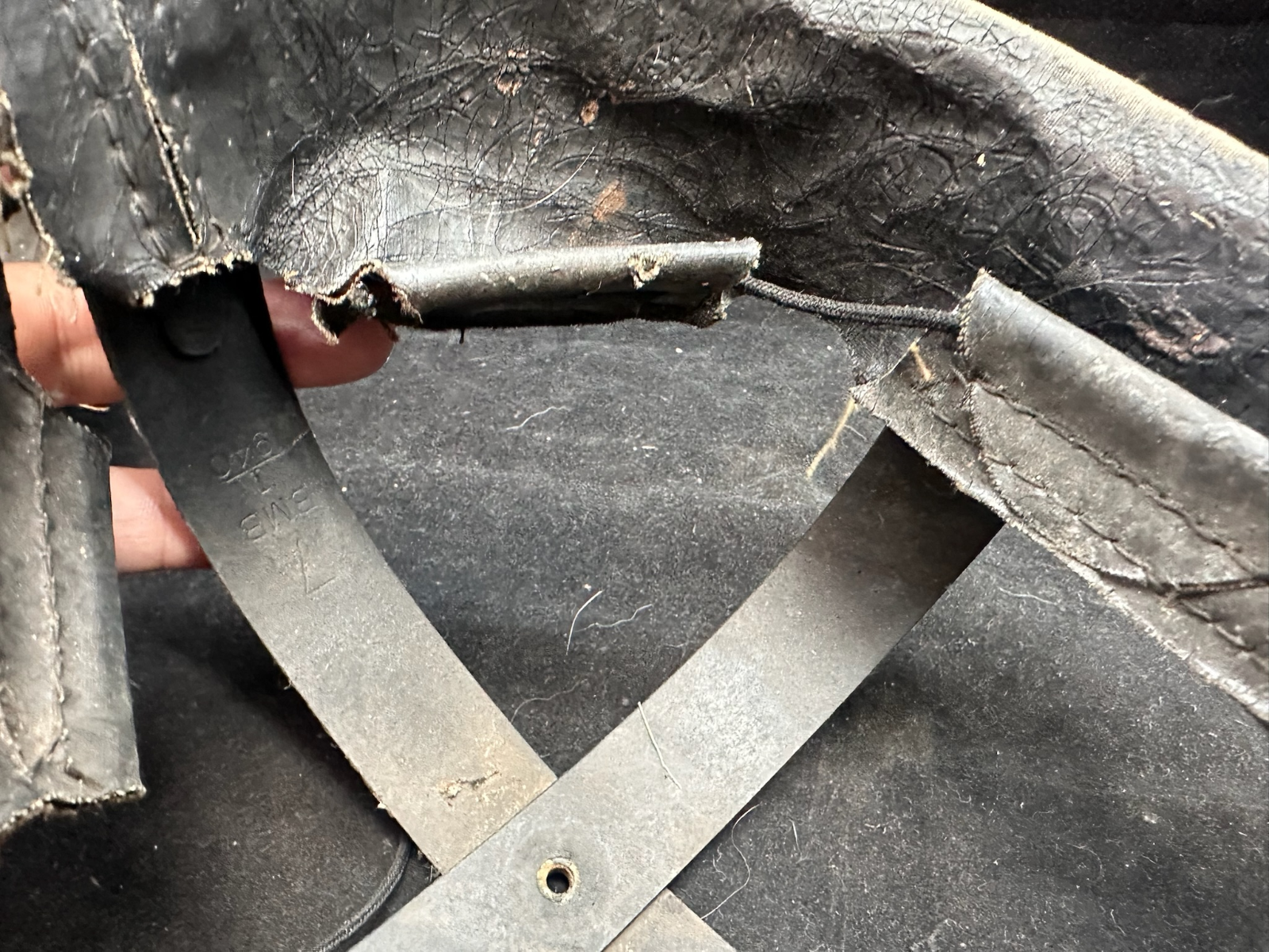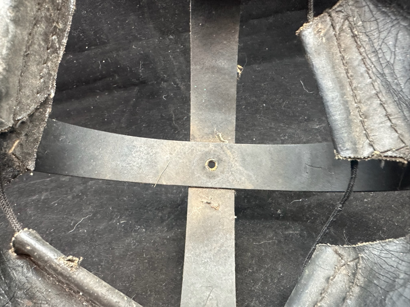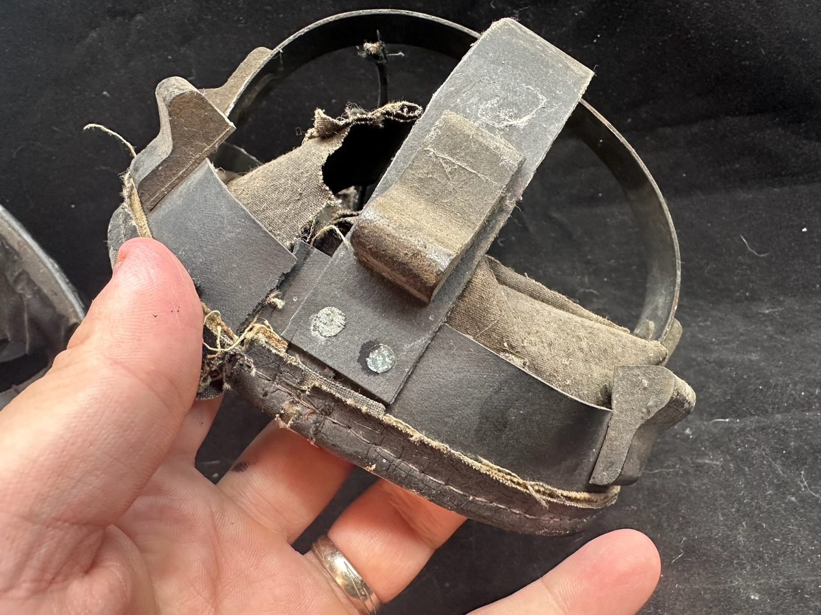 WW2 British Army Helmet Liner - This is a nice original that has been split (Normally to fit someone with a larger head than the listed size) so it could be re-attached, or left as it is.