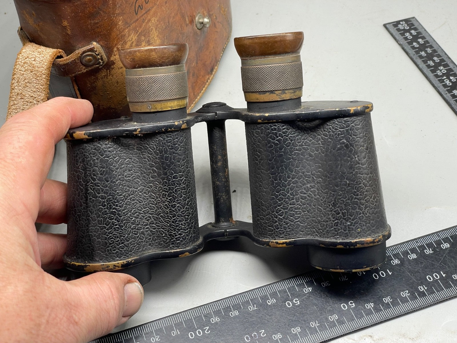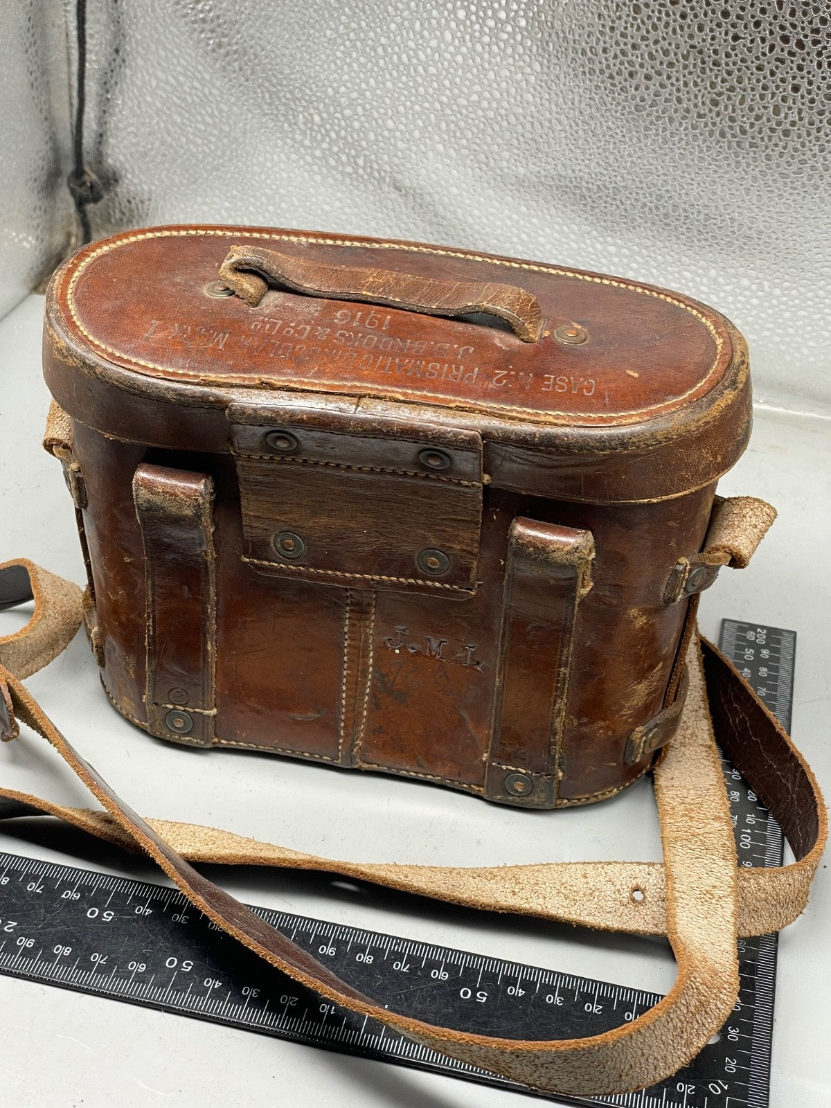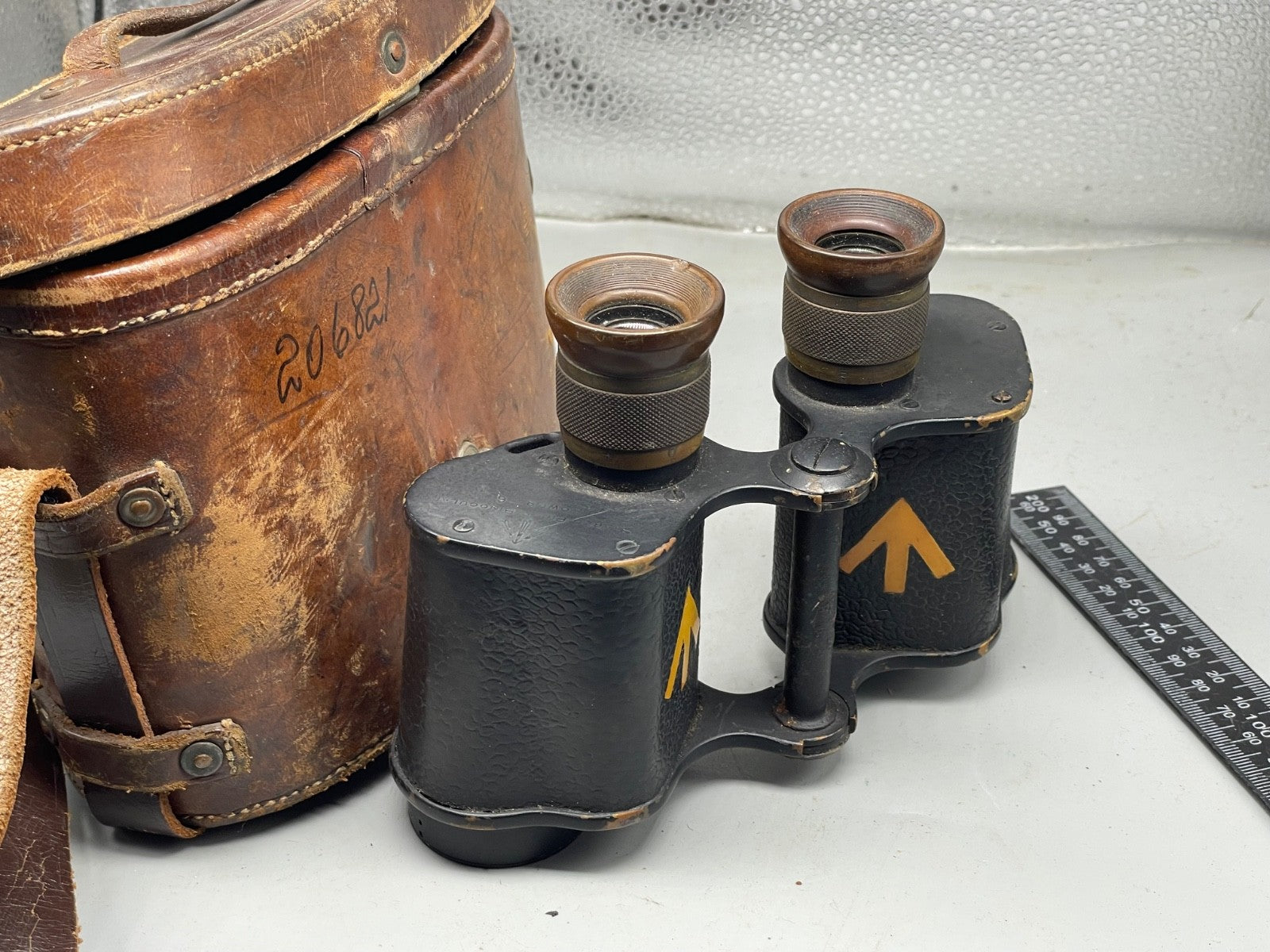 British Army WW1 1916 Dated Field Binoculars in Leather Case - WD Marked.