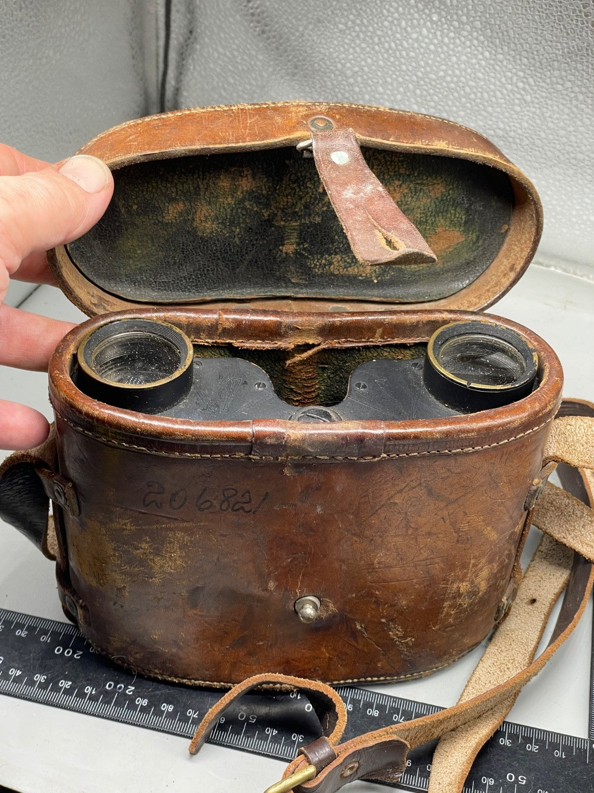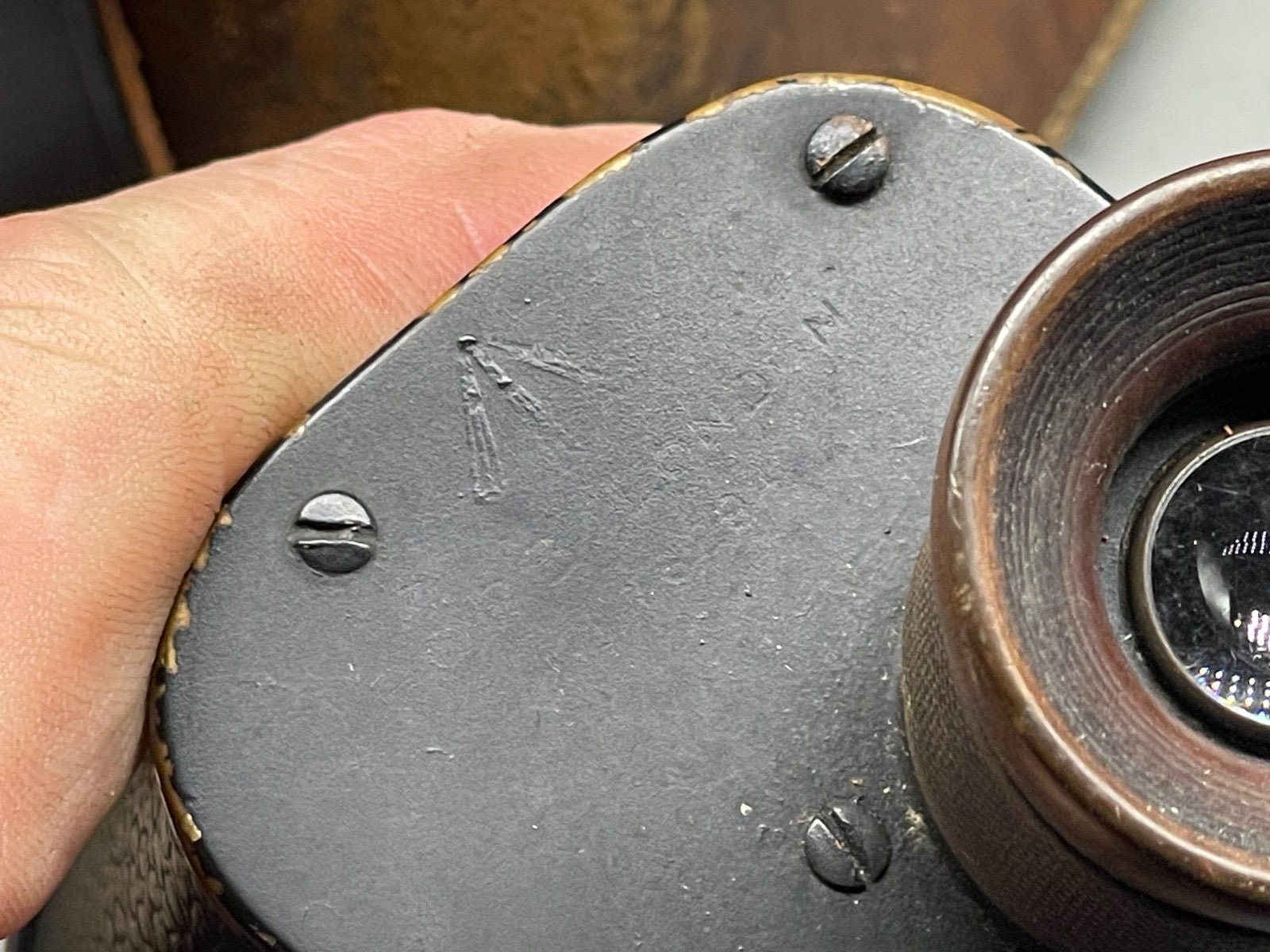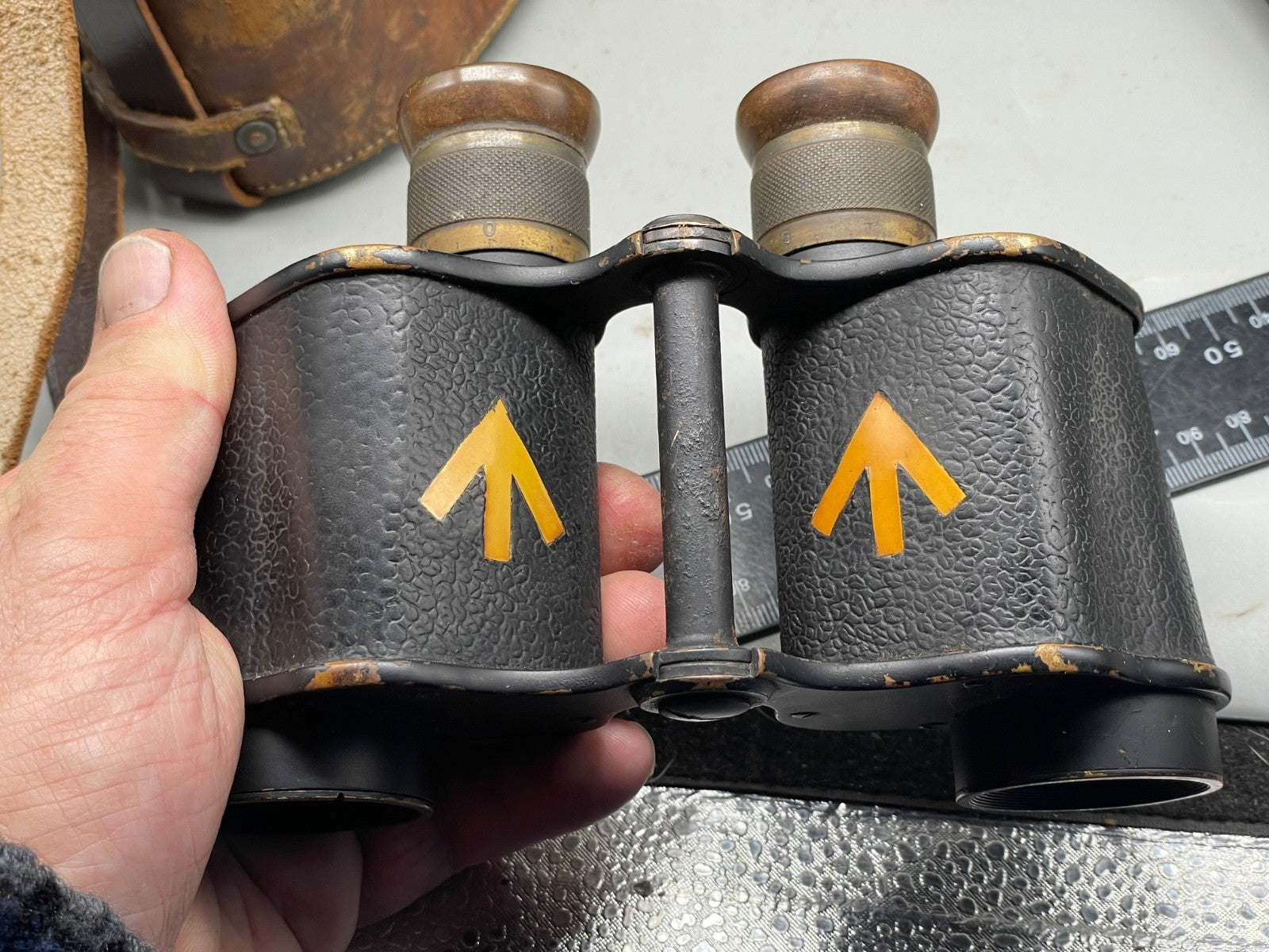 British Army WW1 1916 Dated Field Binoculars in Leather Case - WD Marked.