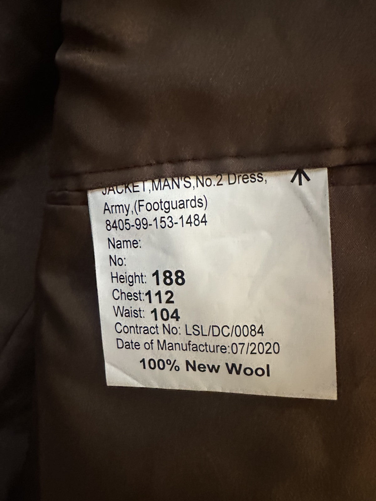 Foot Guards British Army Surplus Grade 1 No.2 Dress Uniform - Size 188/112/104