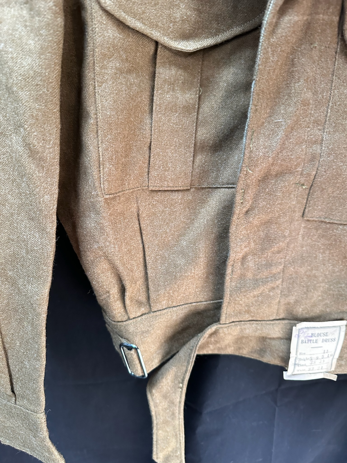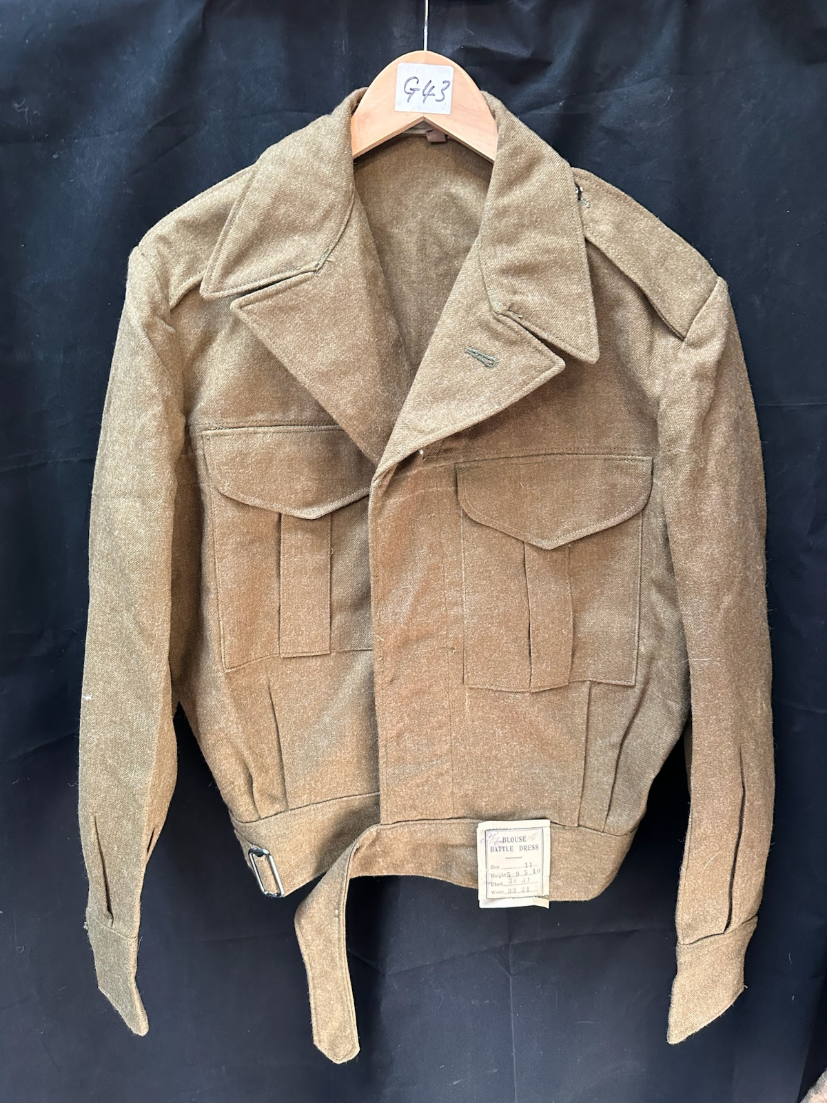 Genuine British Army Battledress Jacket - A lovely origina post WW2 battledress in the same material as wartime, so ideal cheap alternative for WW2 reenactment or display. And these are becoming more and more collected in thier own right!