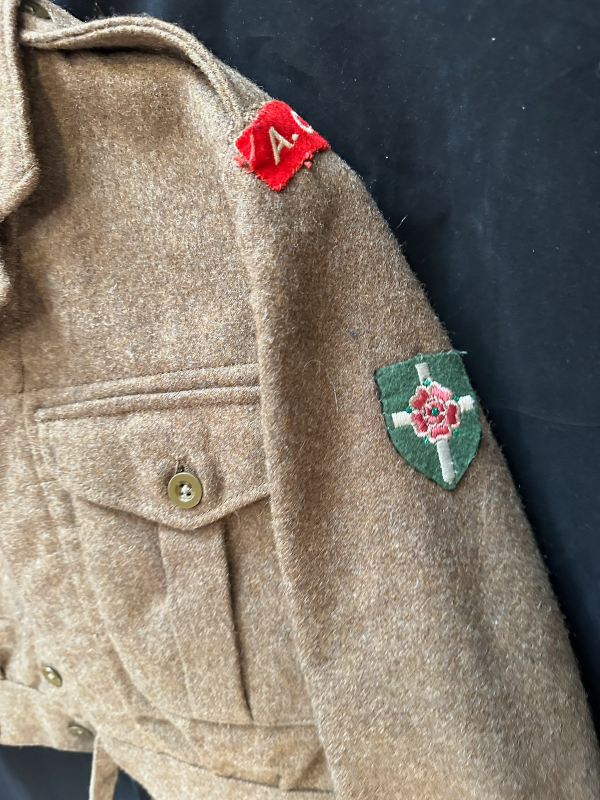 Genuine British Army Battledress Jacket - A lovely origina post WW2 battledress in the same material as wartime, so ideal cheap alternative for WW2 reenactment or display. And these are becoming more and more collected in thier own right!