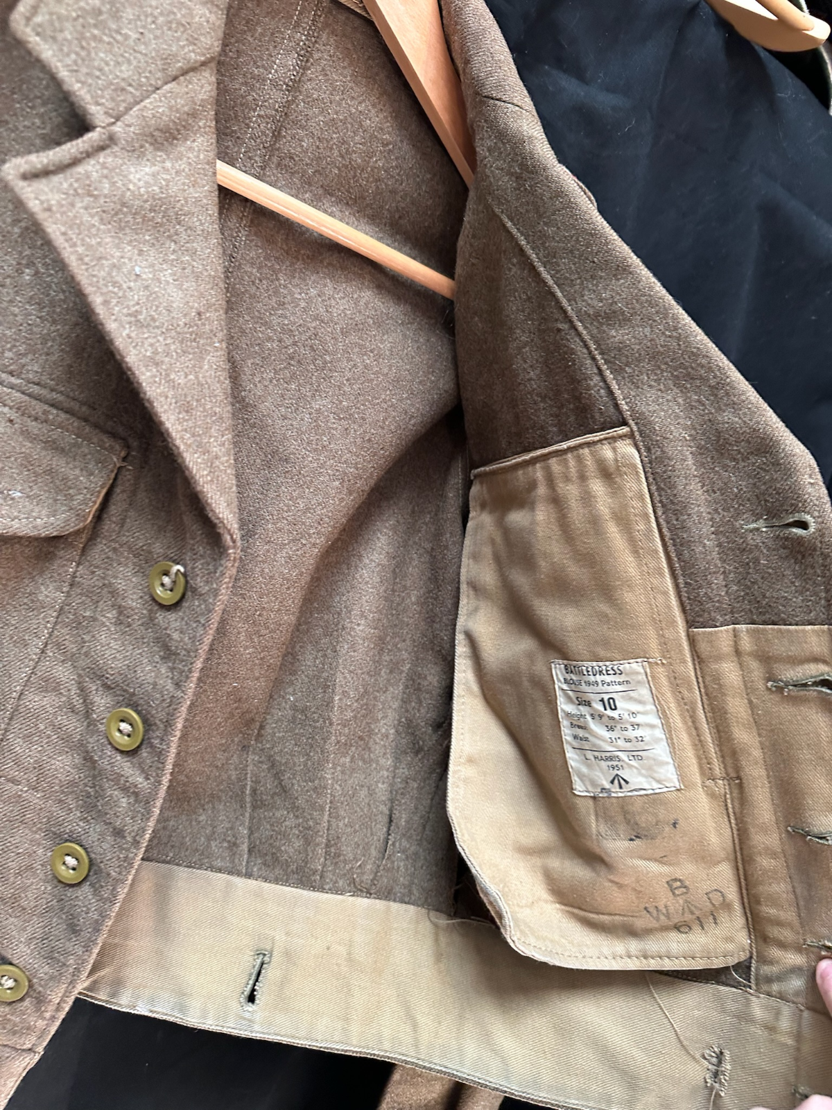 Genuine British Army Battledress Jacket - A lovely origina post WW2 battledress in the same material as wartime, so ideal cheap alternative for WW2 reenactment or display. And these are becoming more and more collected in thier own right!