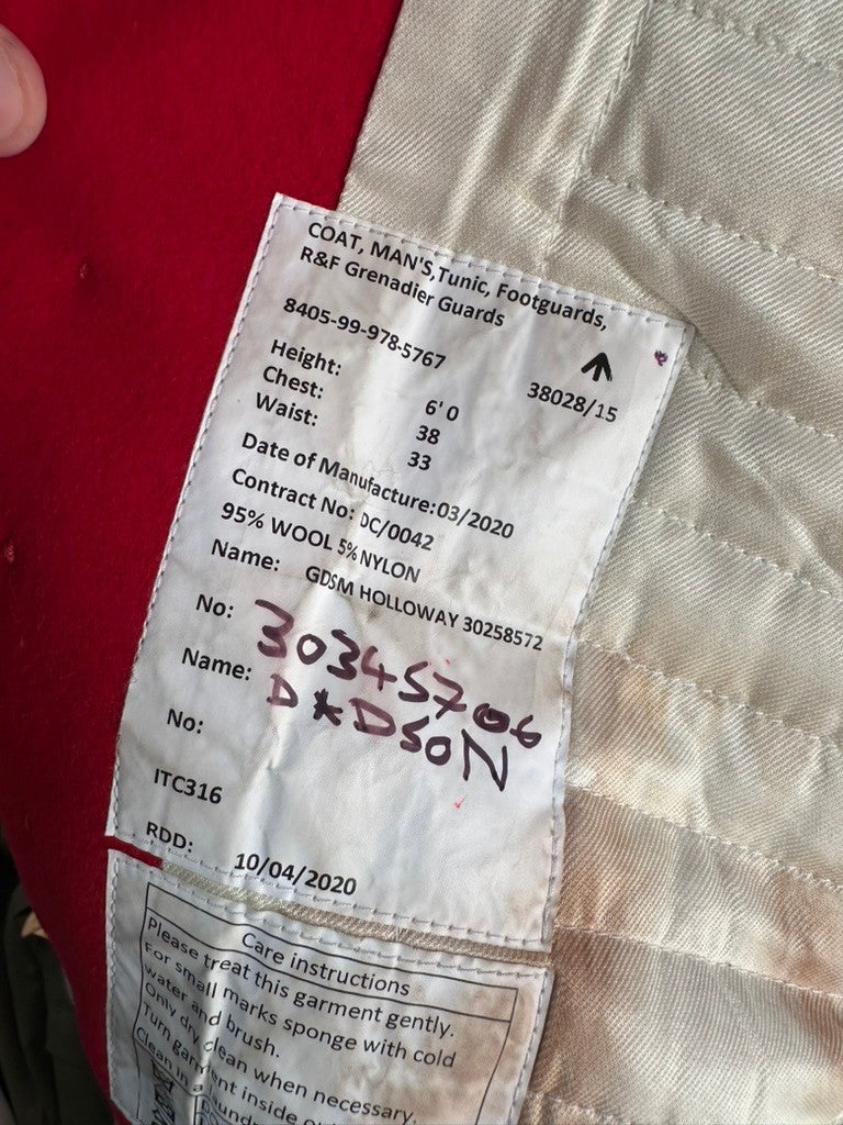 Genuine British Army Grenadier Guards Red Ceremonial Tunic Jacket - 38" Chest