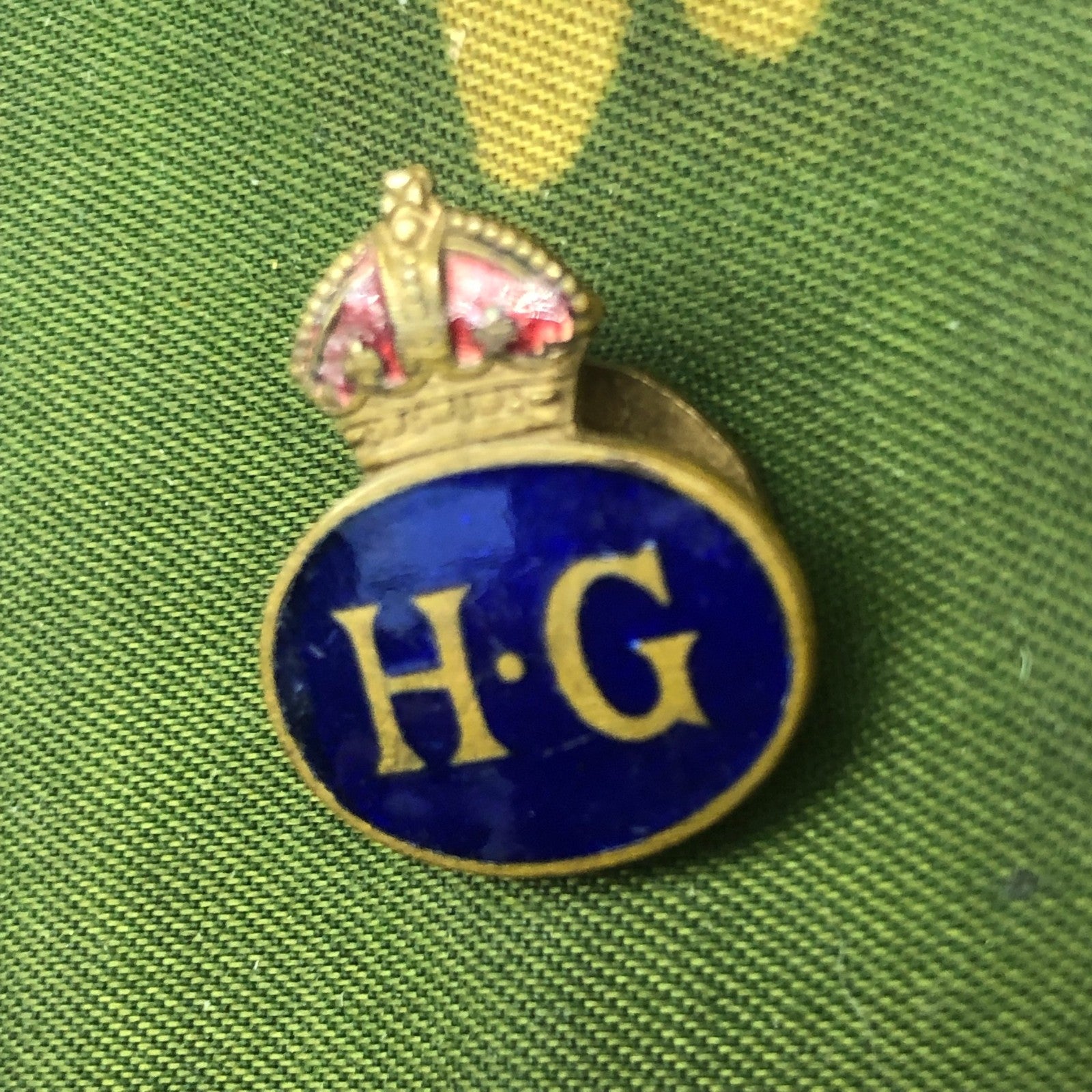 Home Guard HG Lapel Pin - Original WW2 Enamel Button Hole Badge