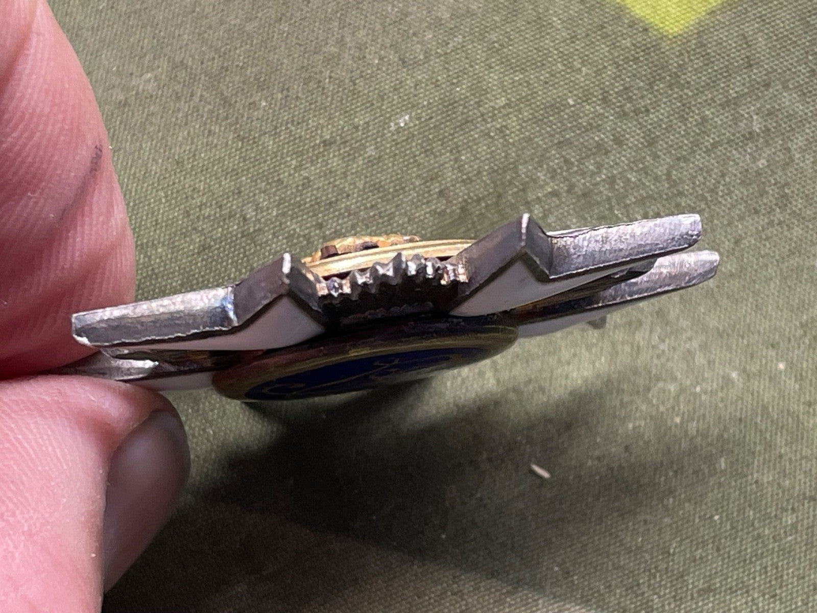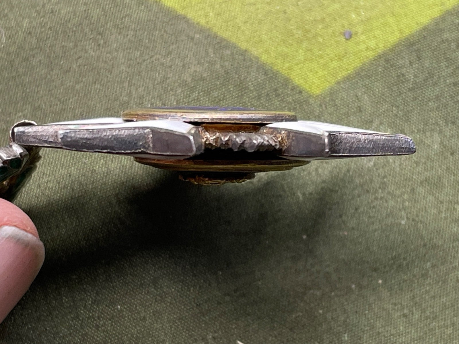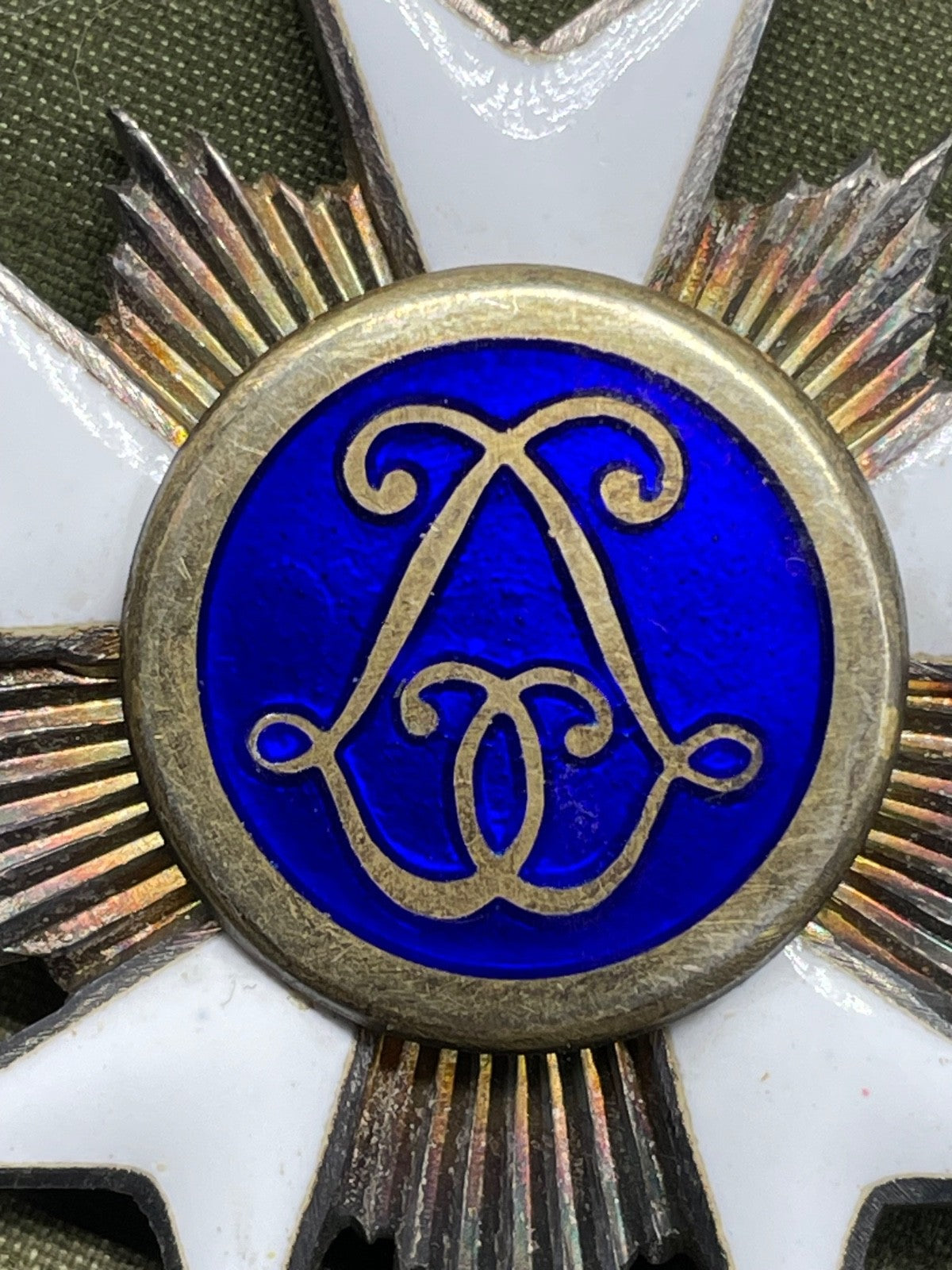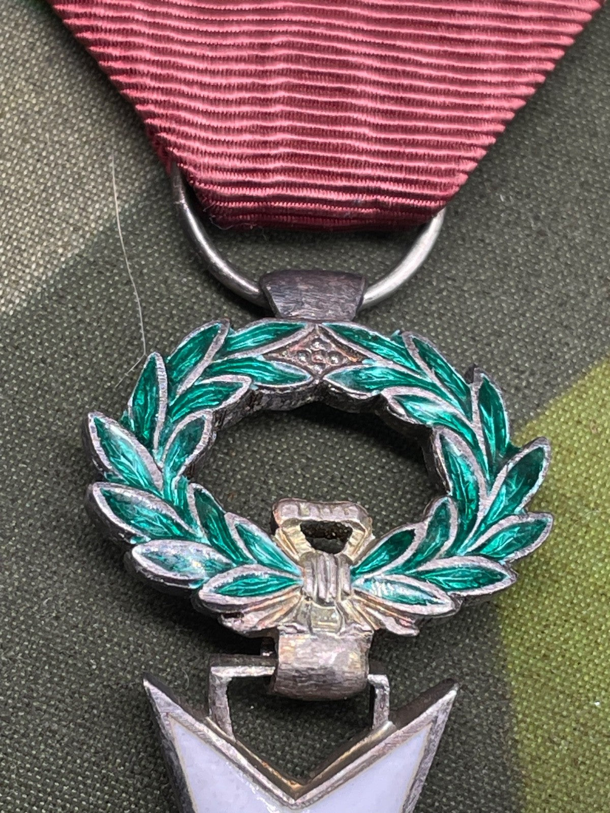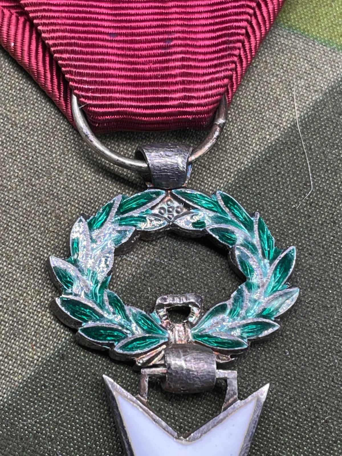 This is a very good quality original medal with superb enamelling in the blue, white and green - the lustre in the blue behind the crown is far more defined than it is in the flat toned copies.