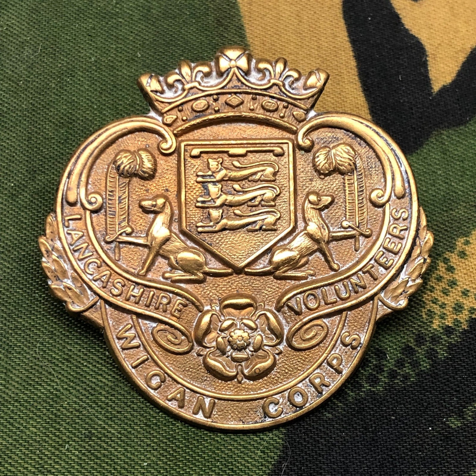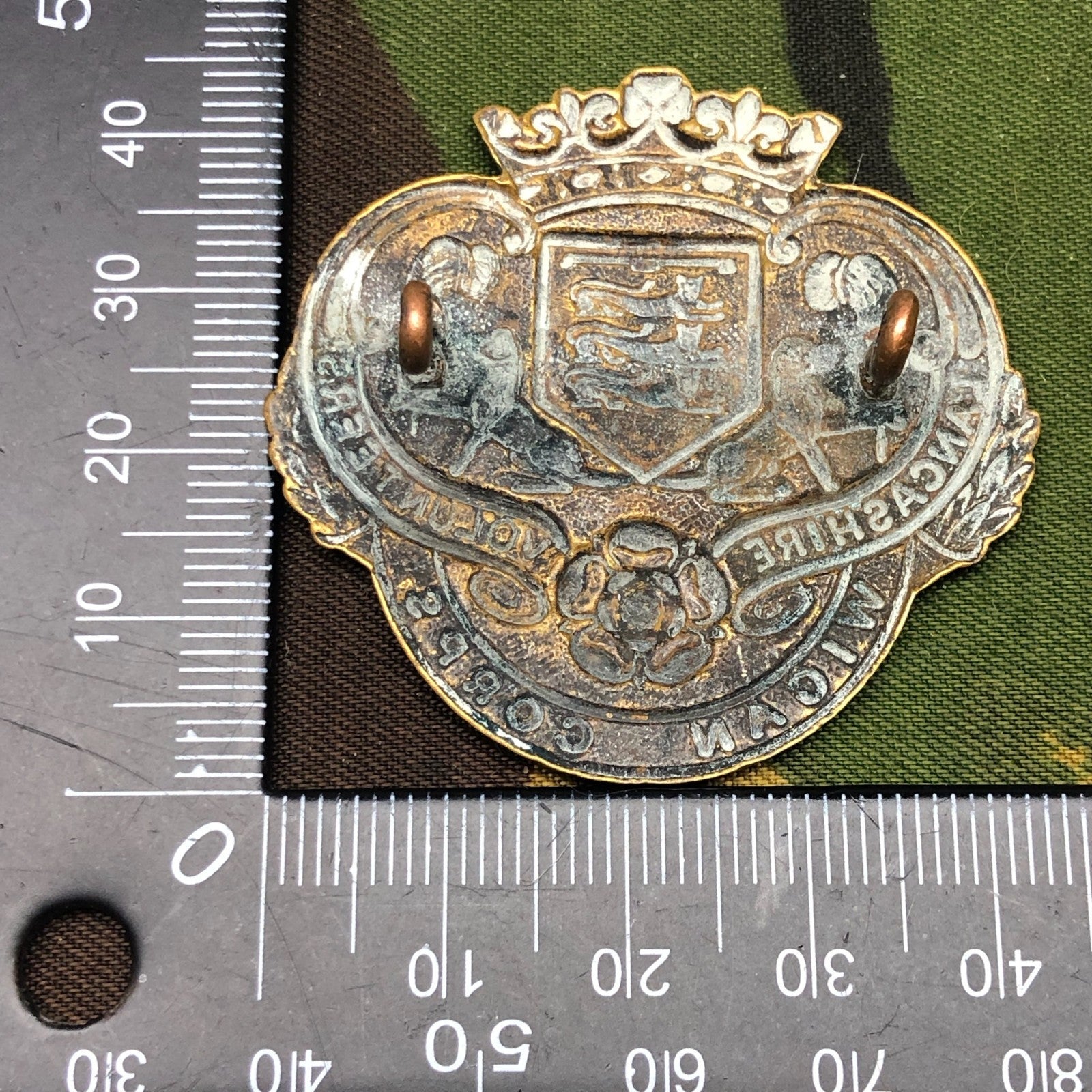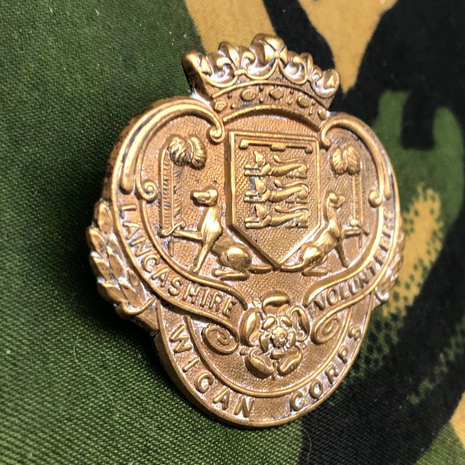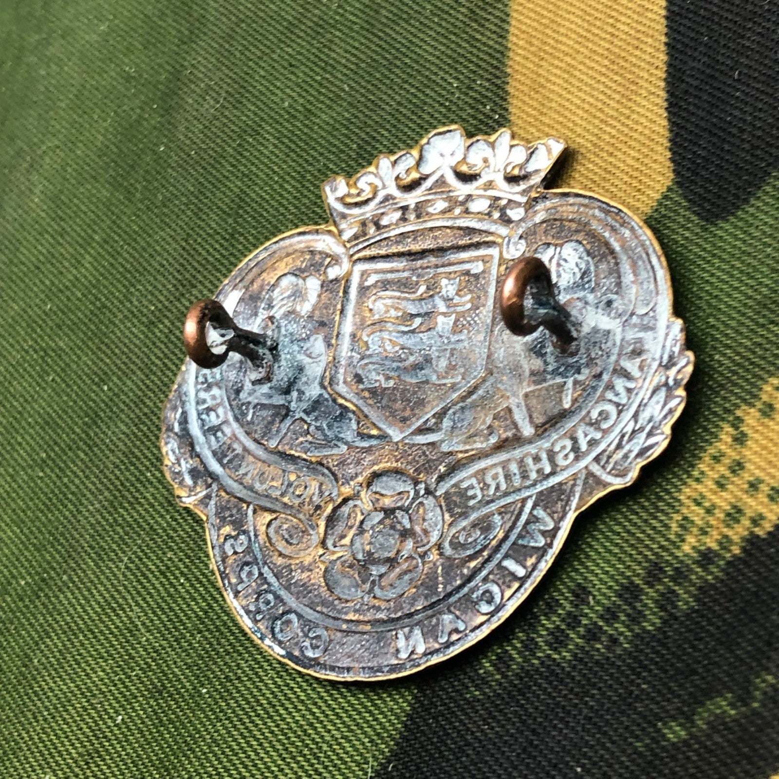 Original WW1 British Army Lancashire Volunteers Wigan Corps Cap Badge