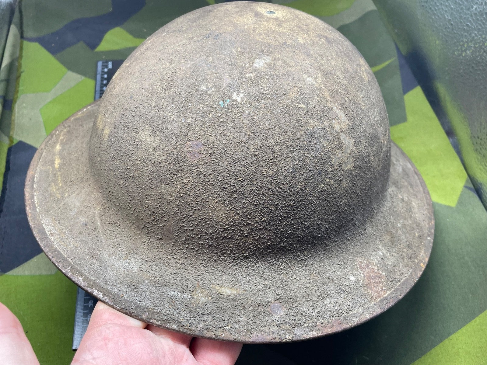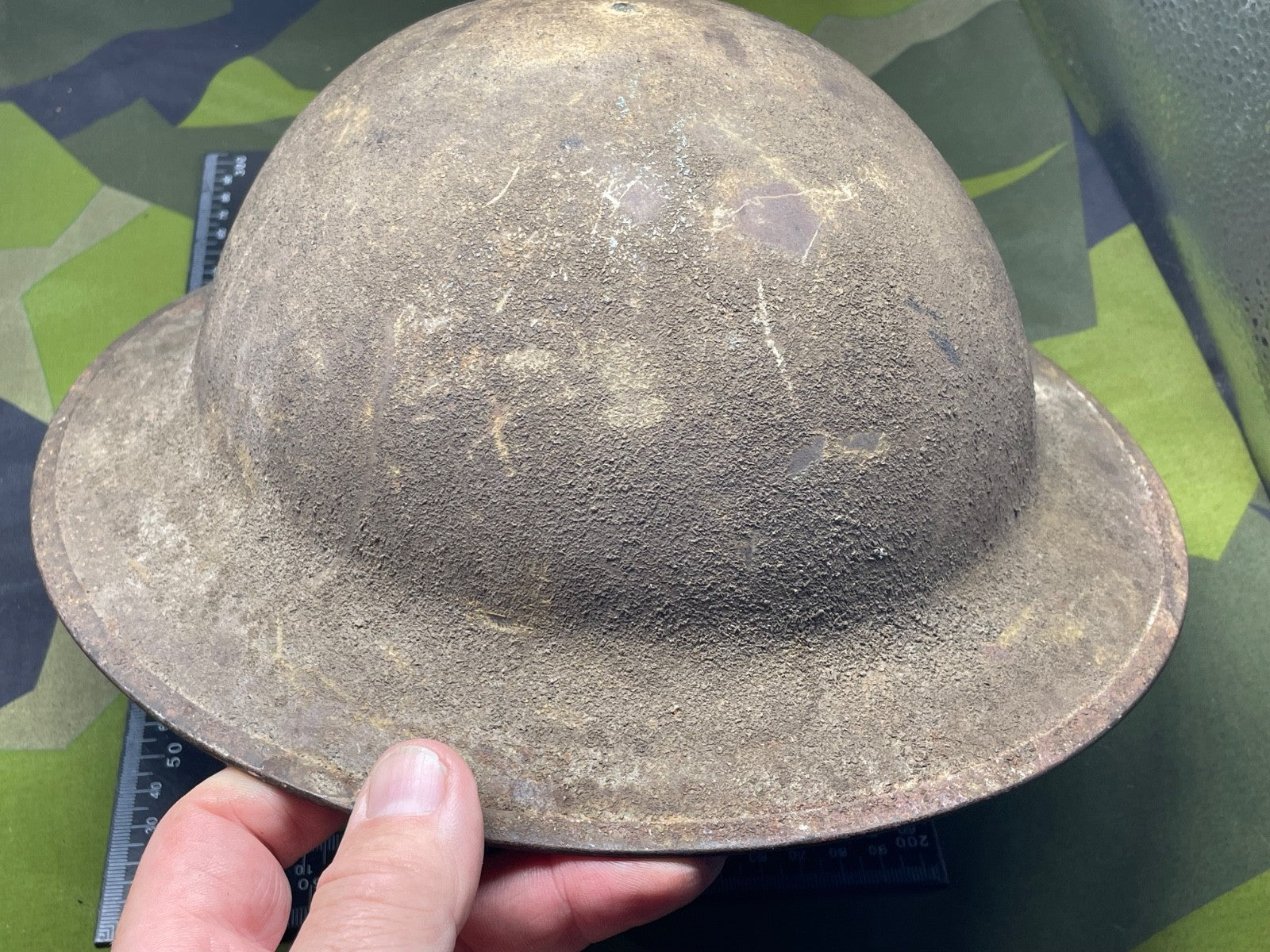Original WW1 US Army M1917 Combat Helmet with and an all original textured finish.