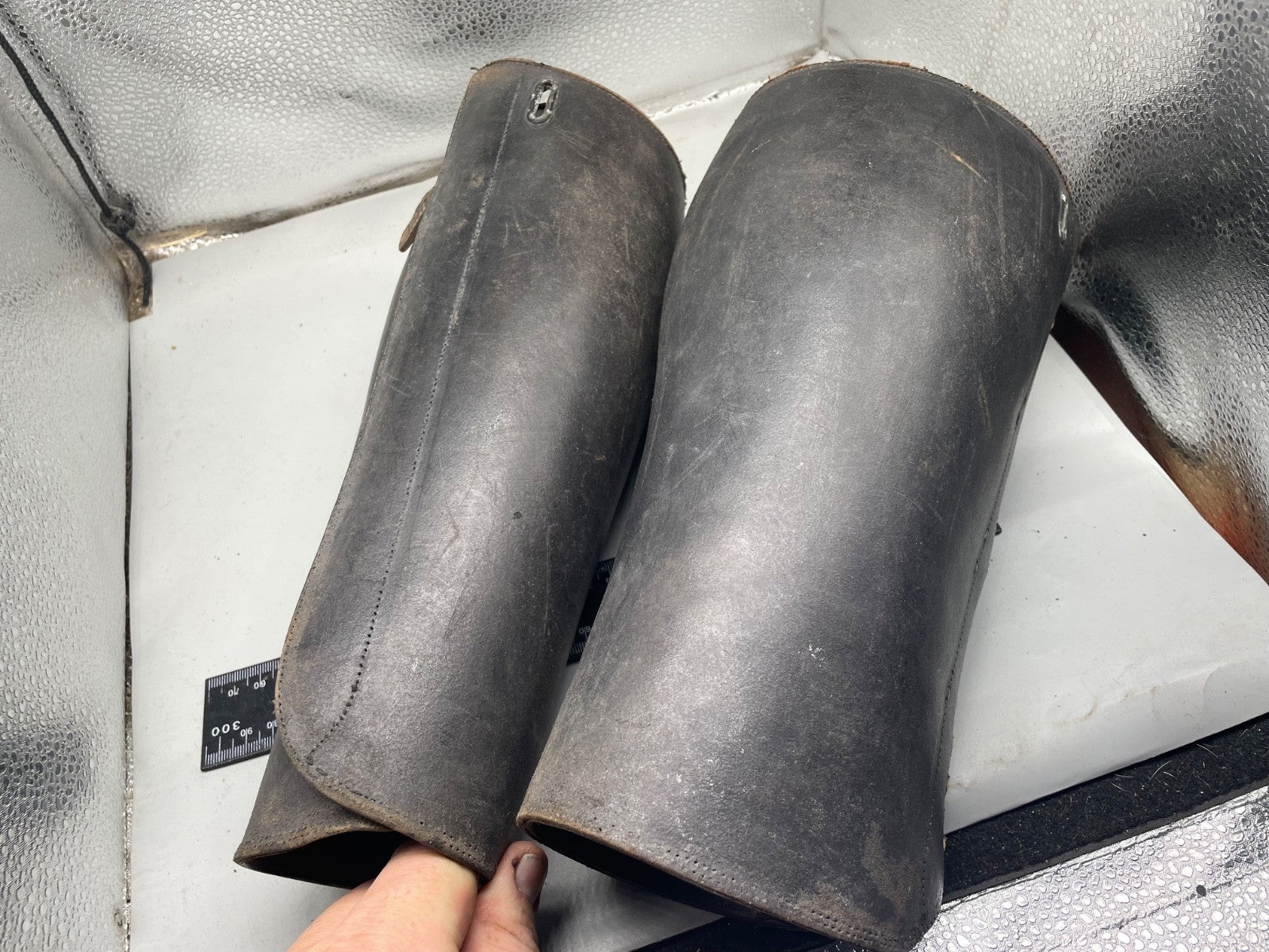 Original WW1 / WW2 British Army Officer's Black Leather Gaiters.