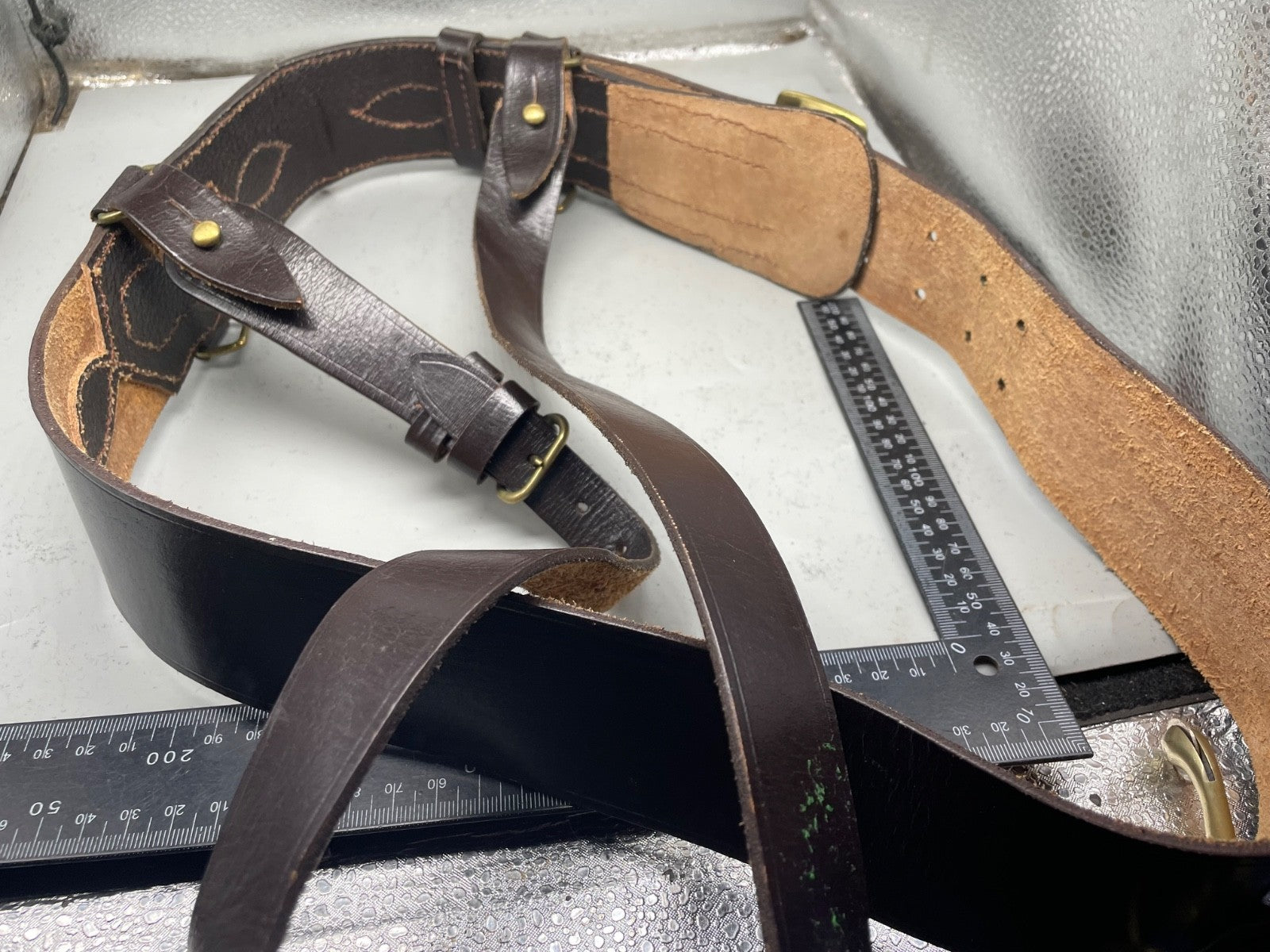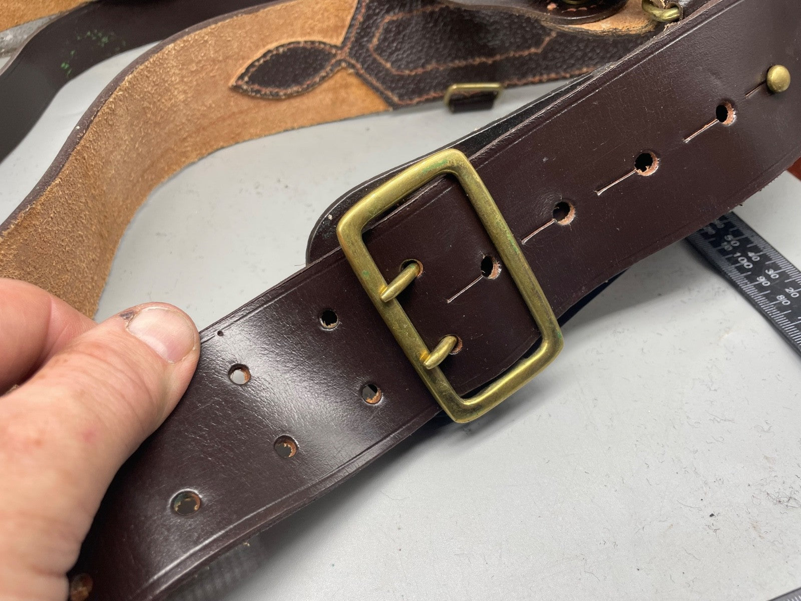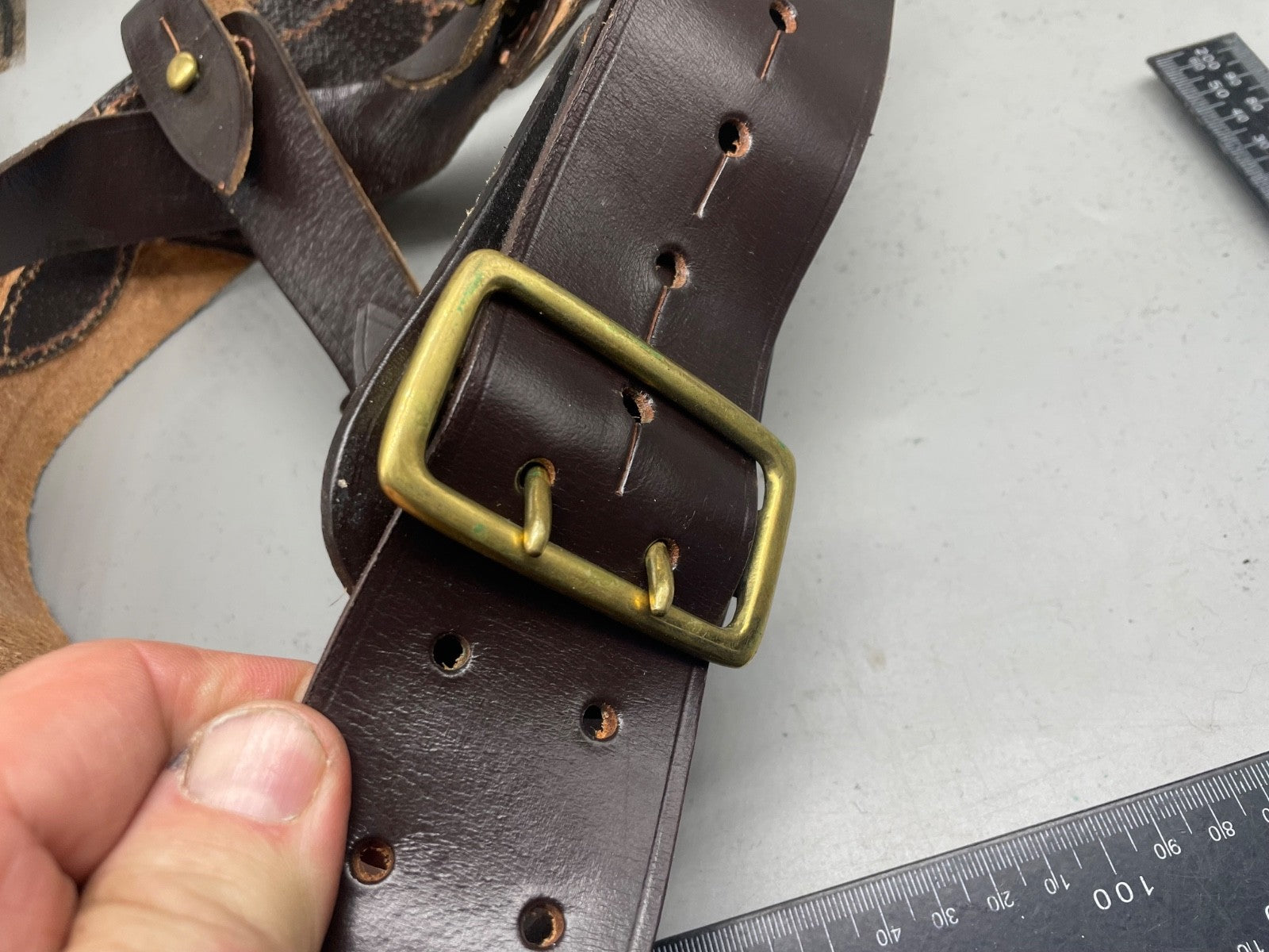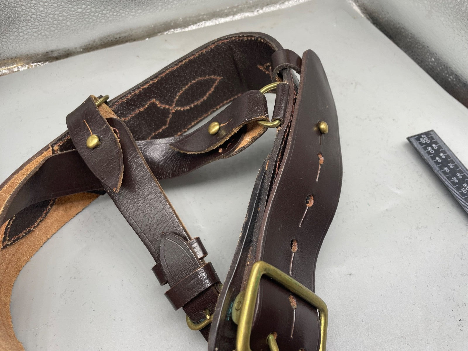 Original WW1 / WW2 British Army Officer's Leather Sam Browne Belt & Cross Strap - 42" Waist.