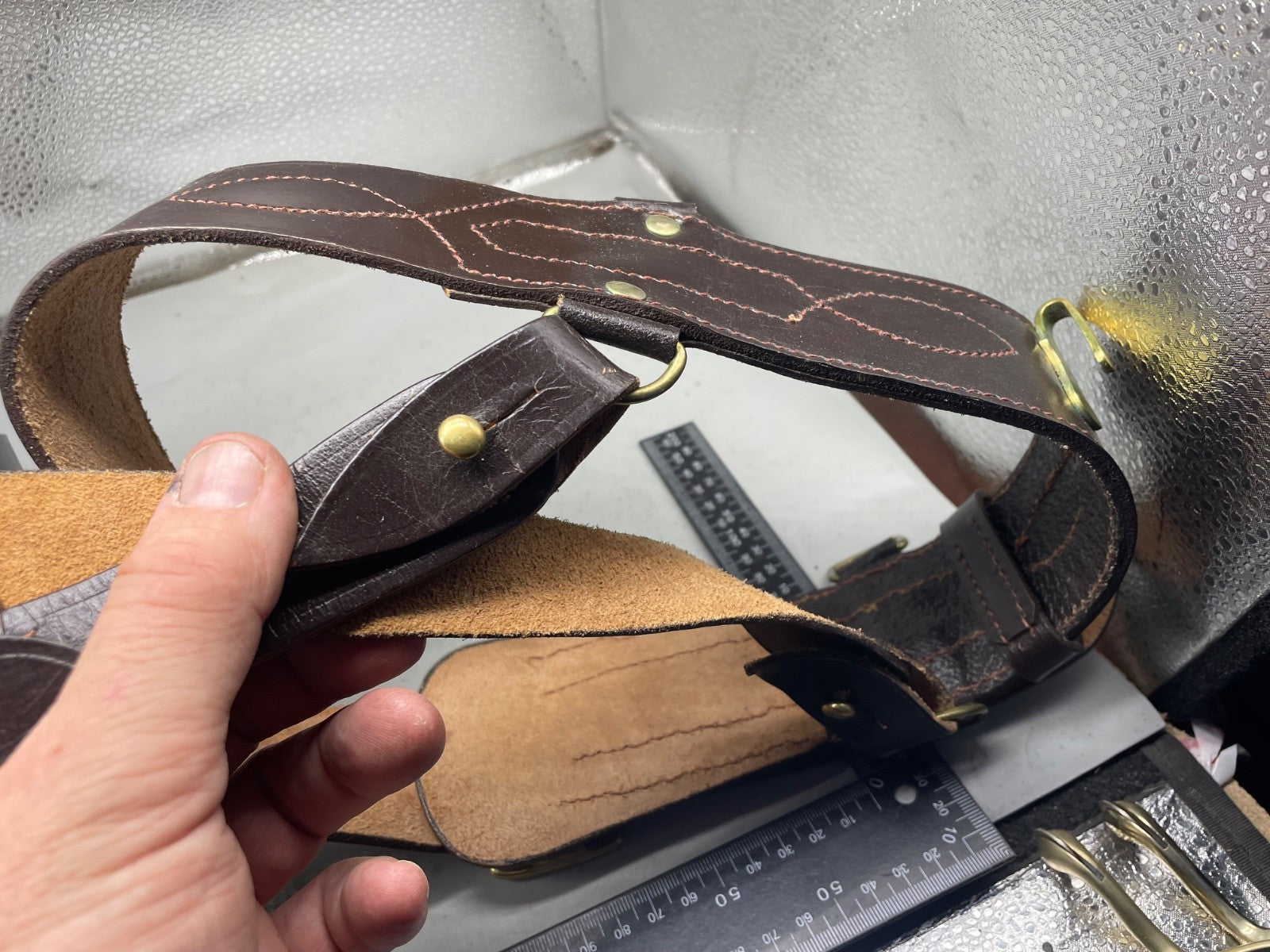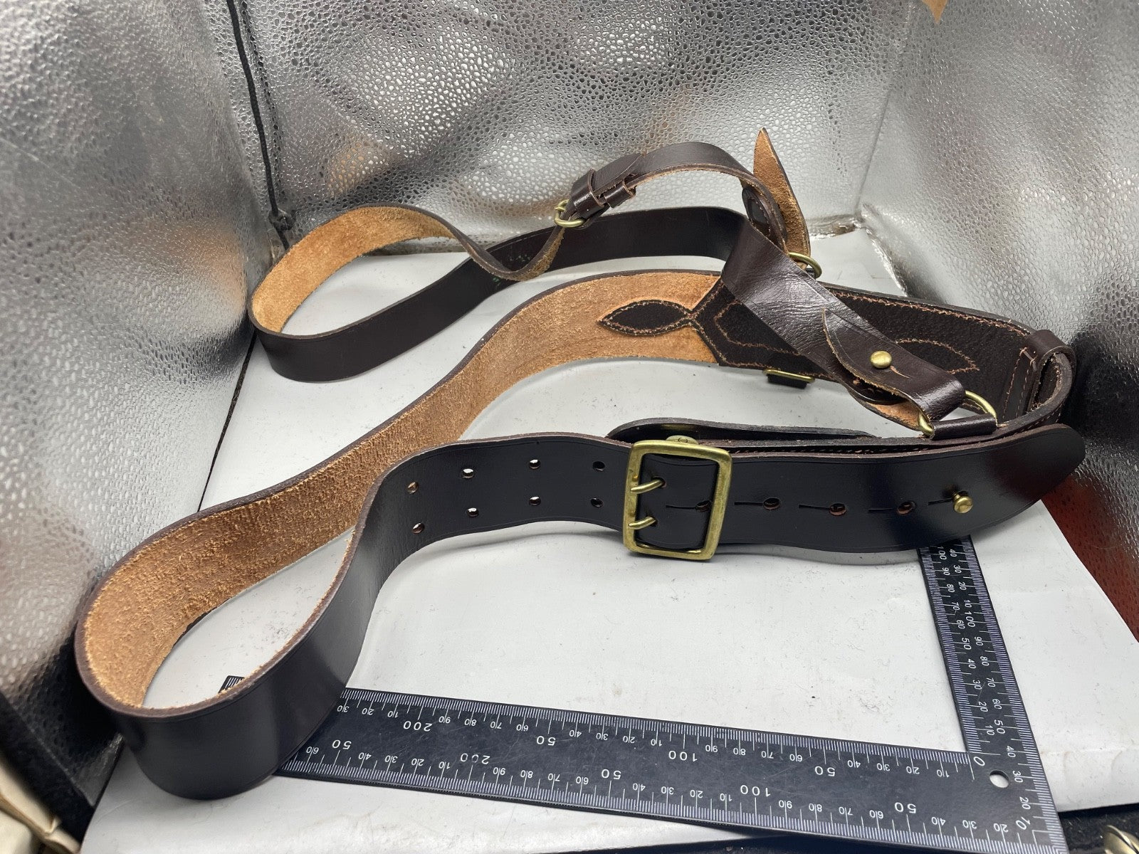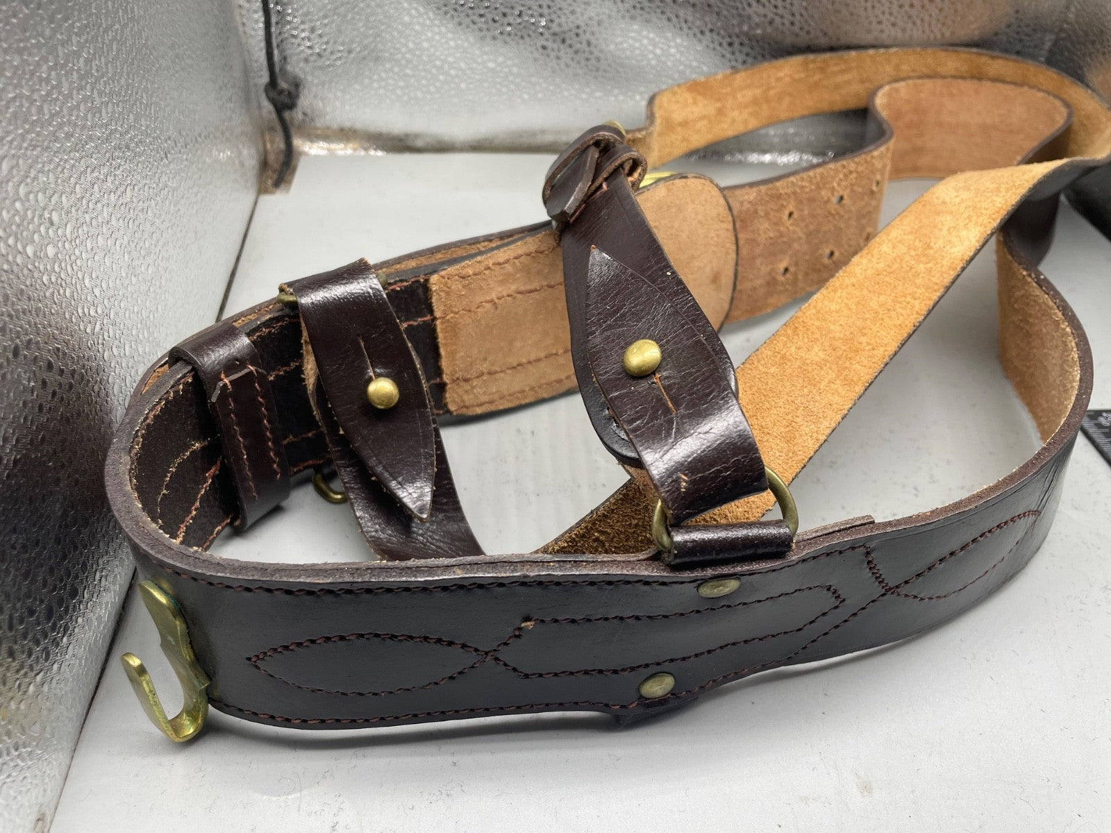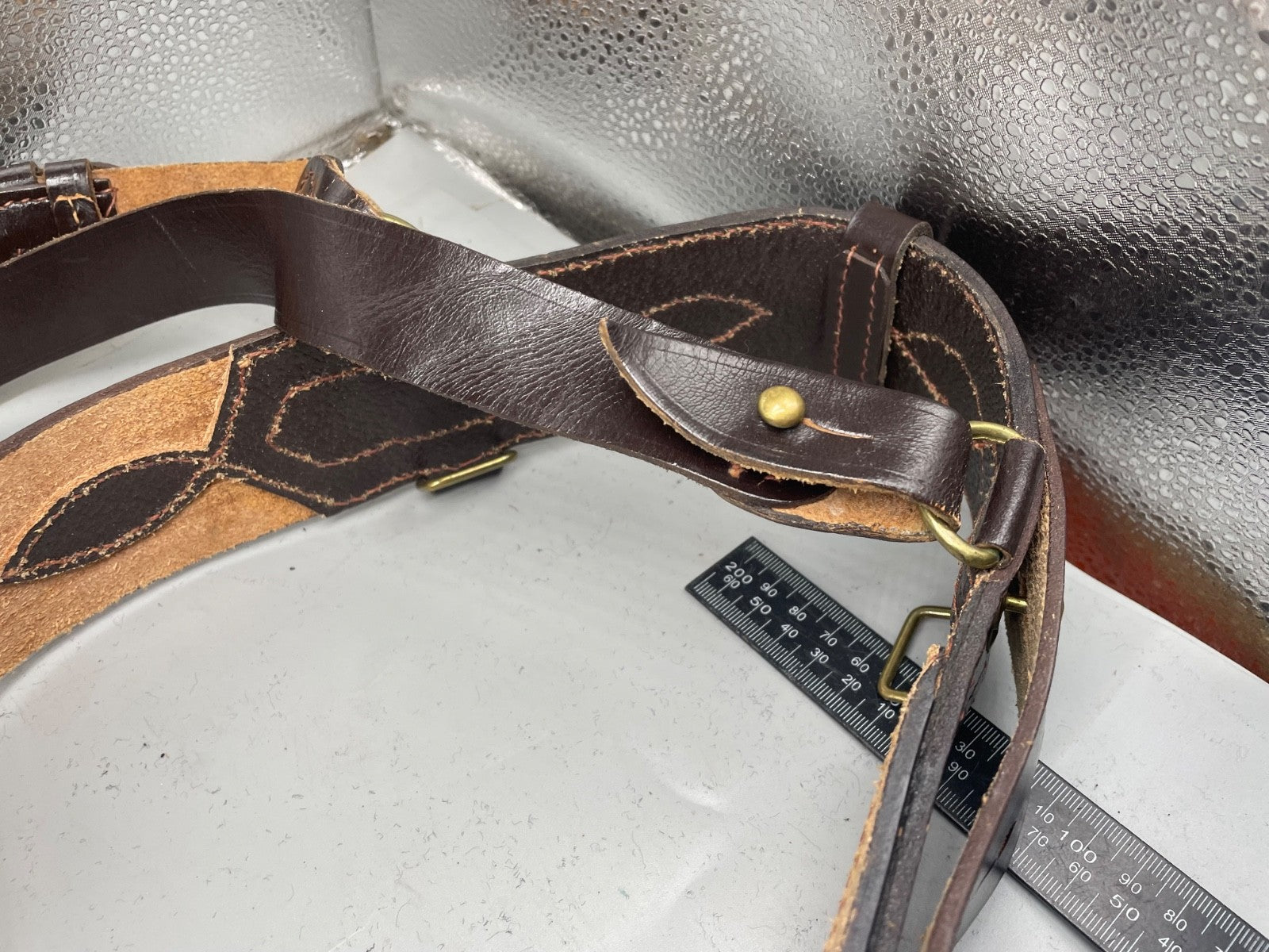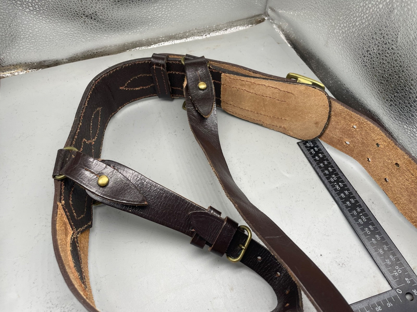 Original WW1 / WW2 British Army Officer's Leather Sam Browne Belt & Cross Strap - 42" Waist.
