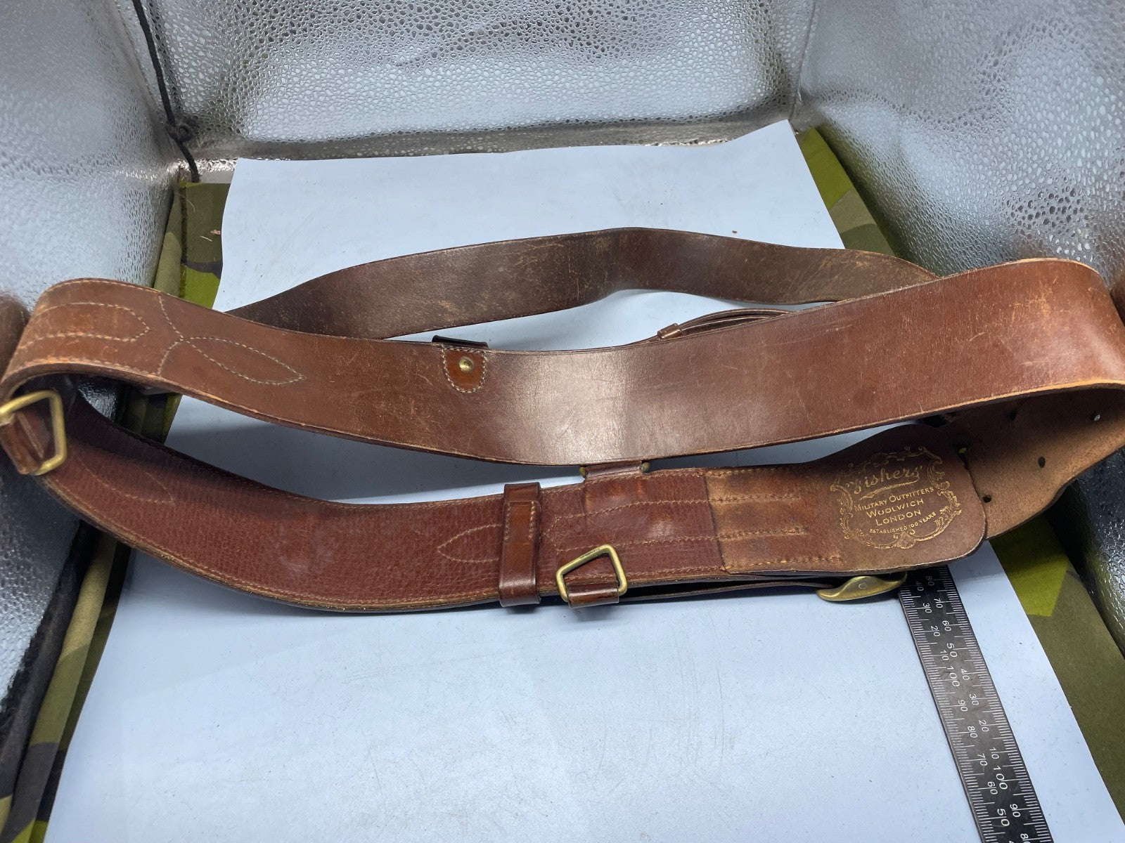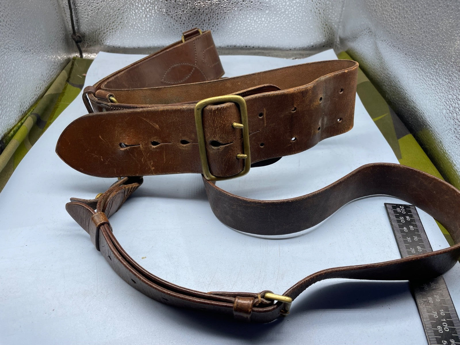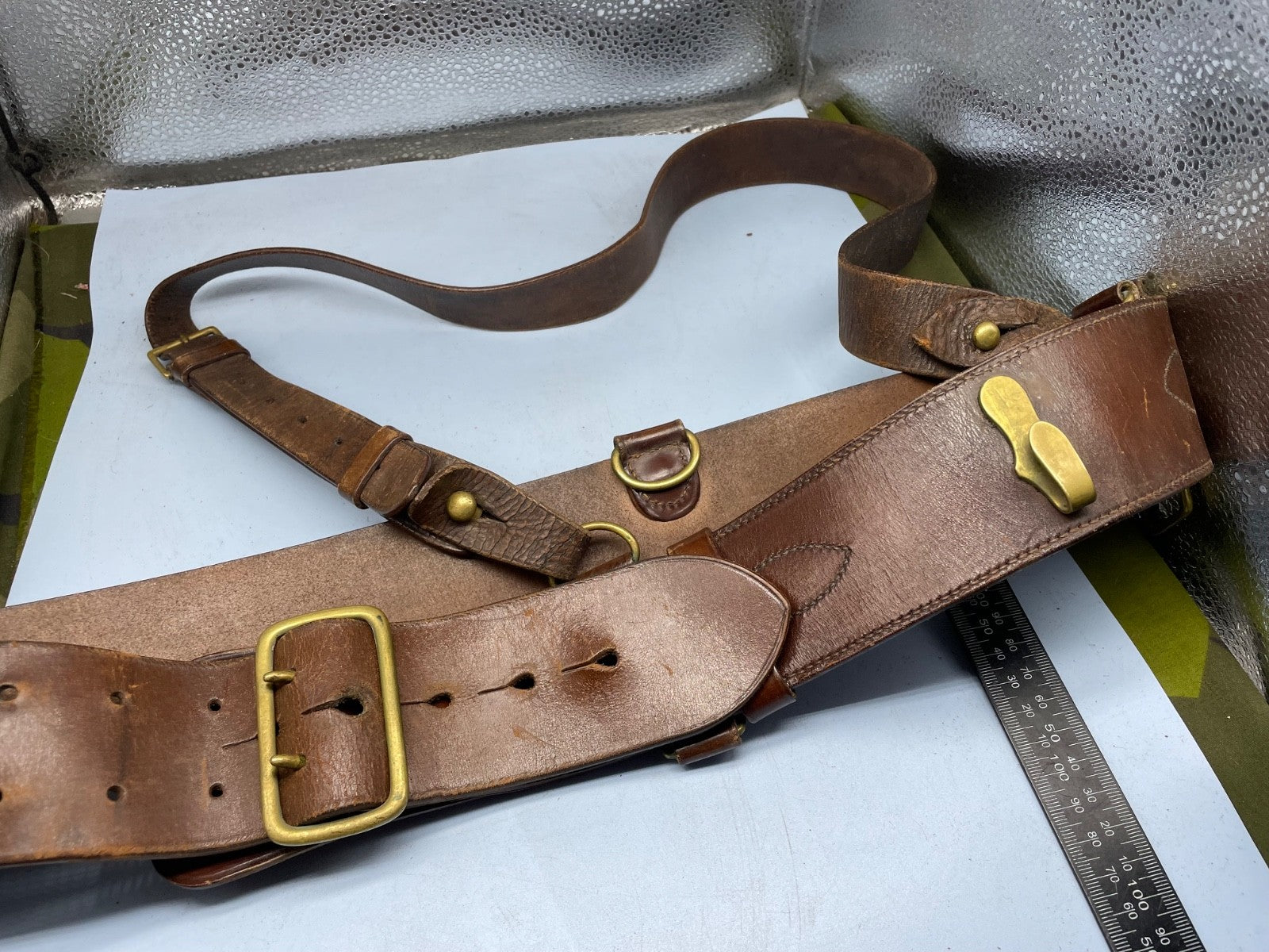 Original WW1 / WW2 British Army Officer's Sam Browne Leather Belt 36" Waist