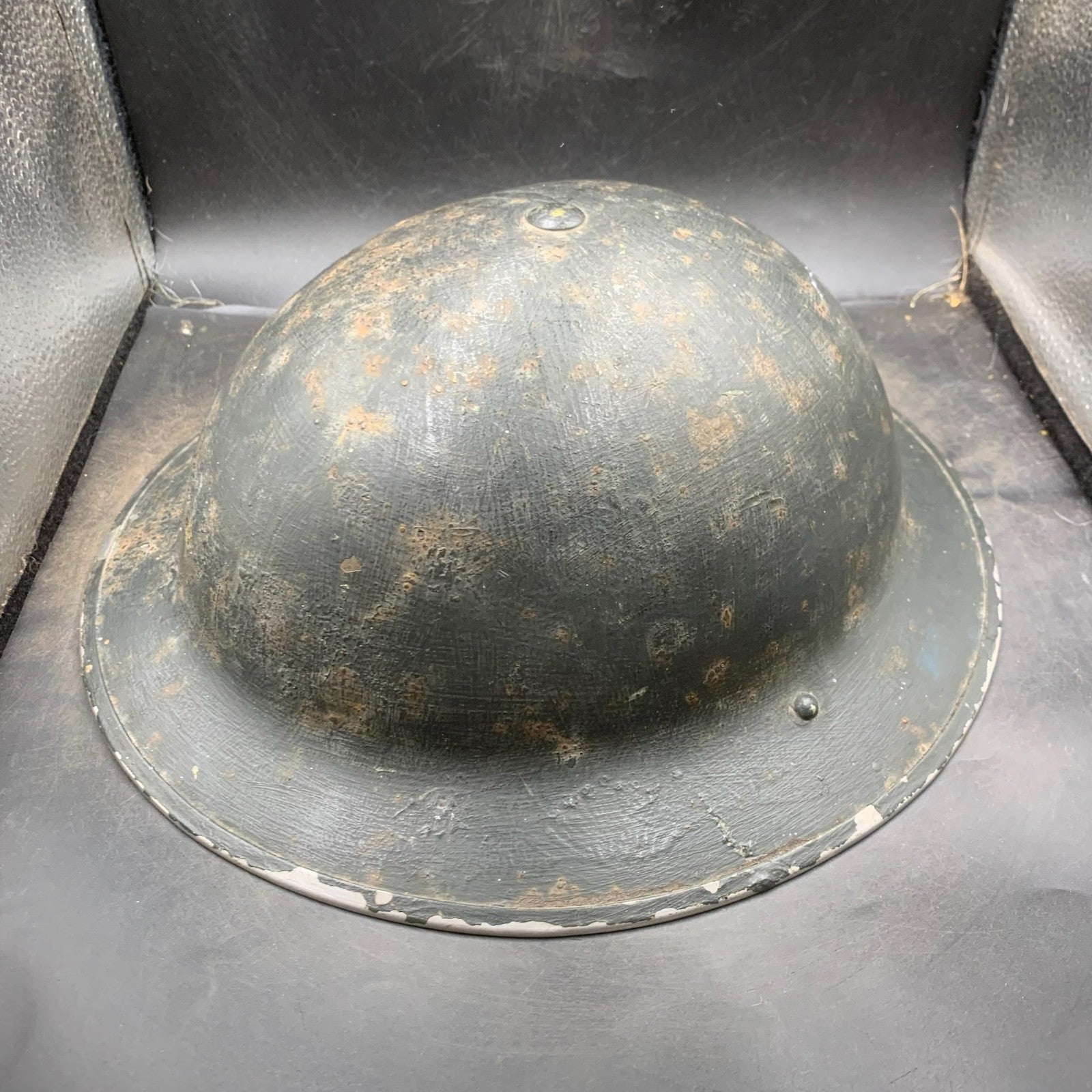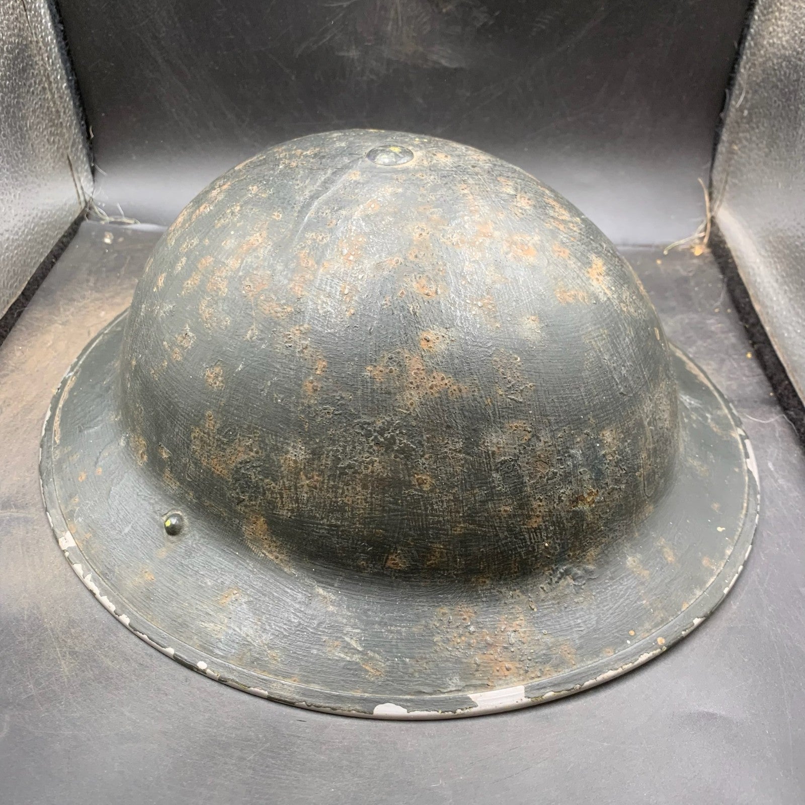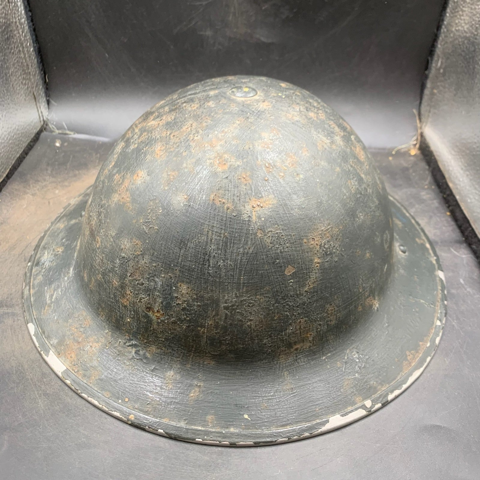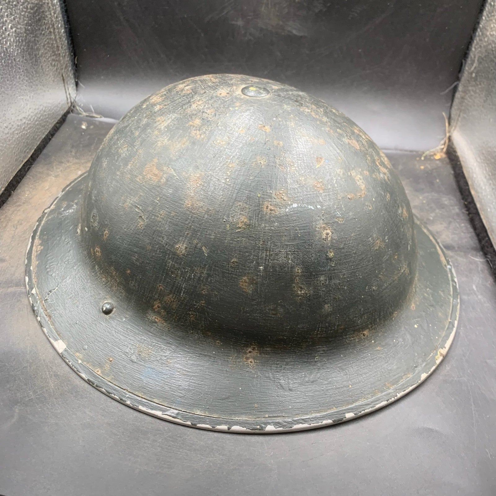 It has been brush overpainted at the time in a very dark blue almost black colour (Not quite civil defence black)