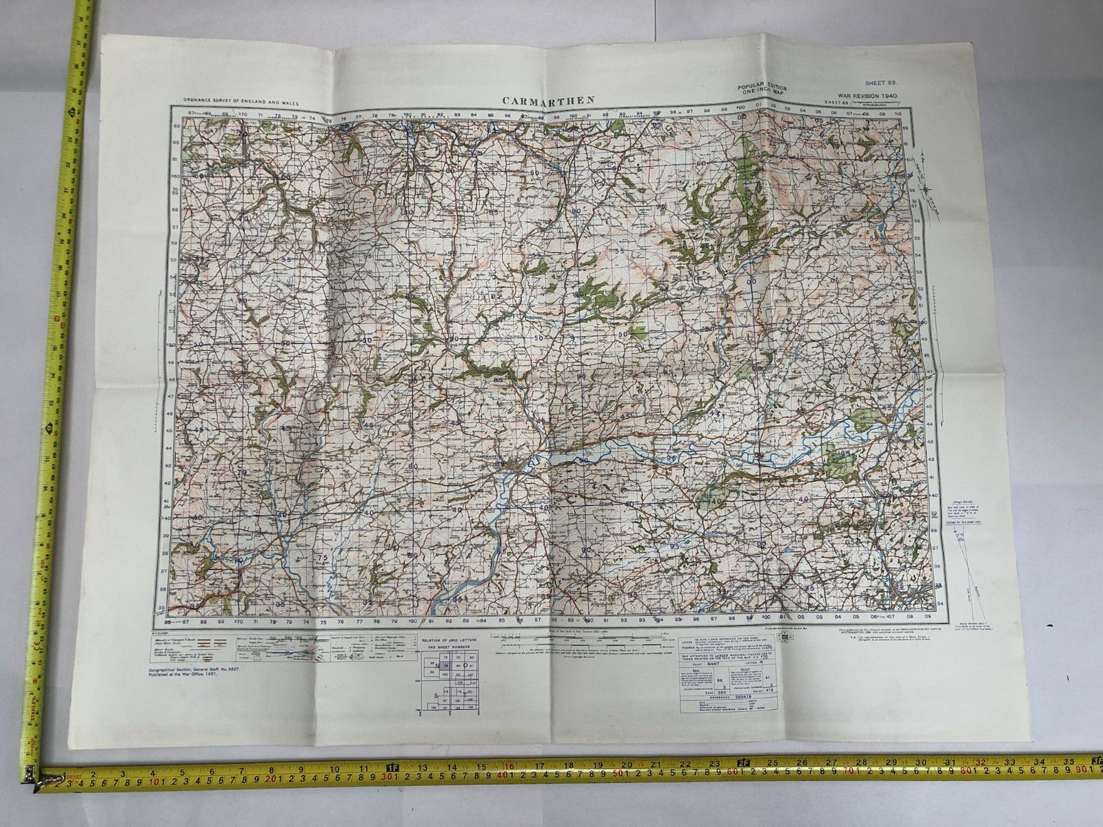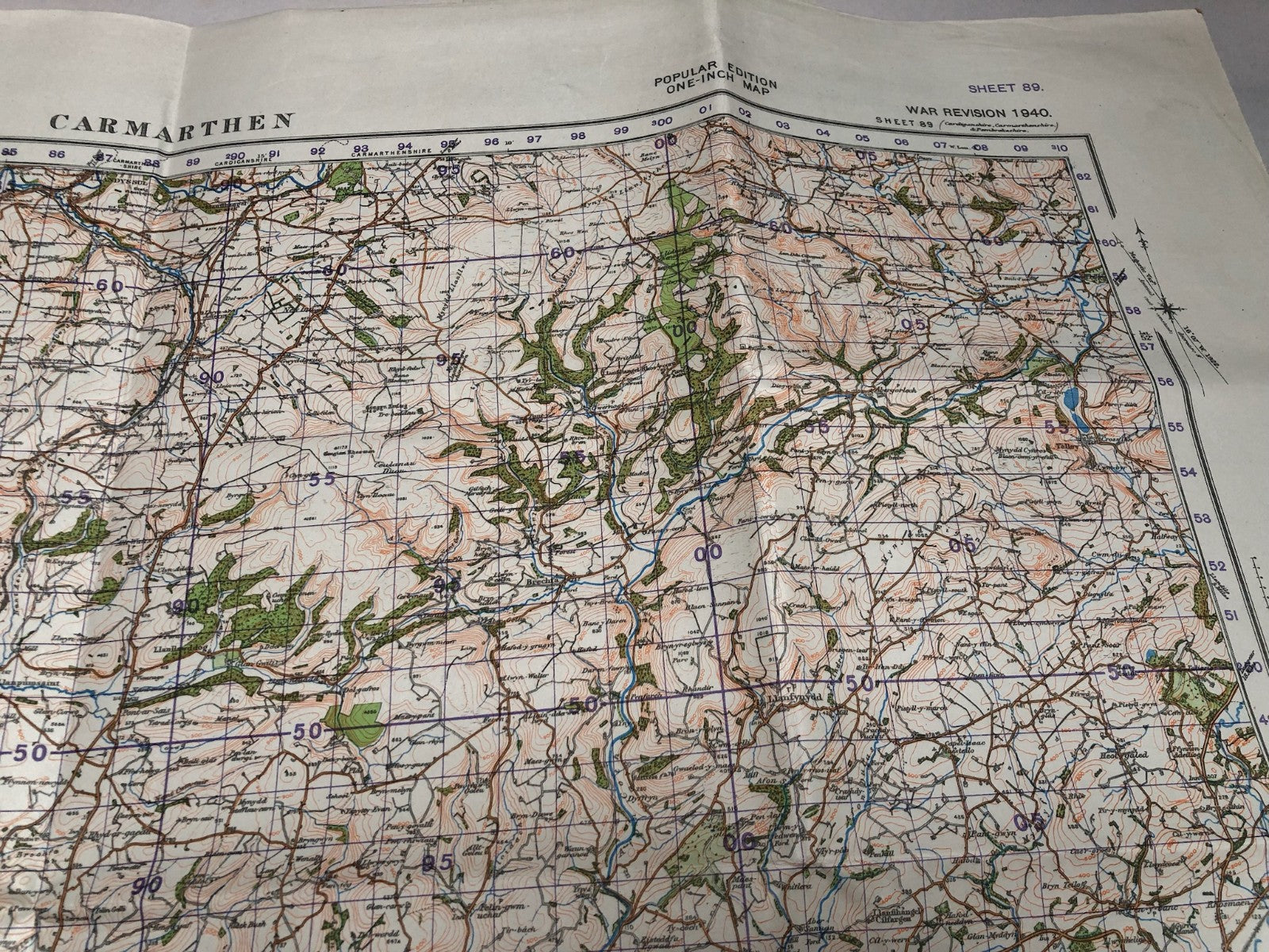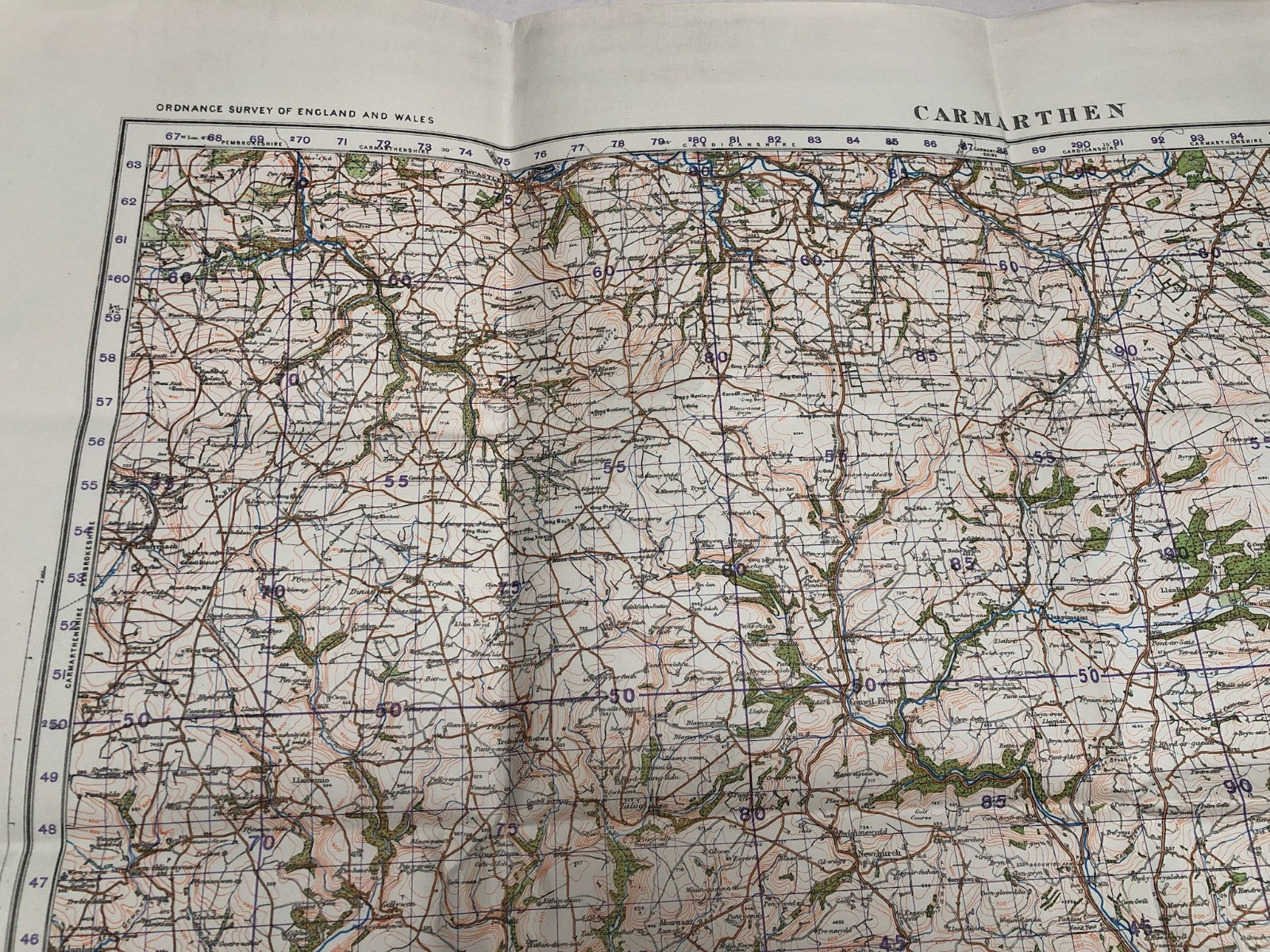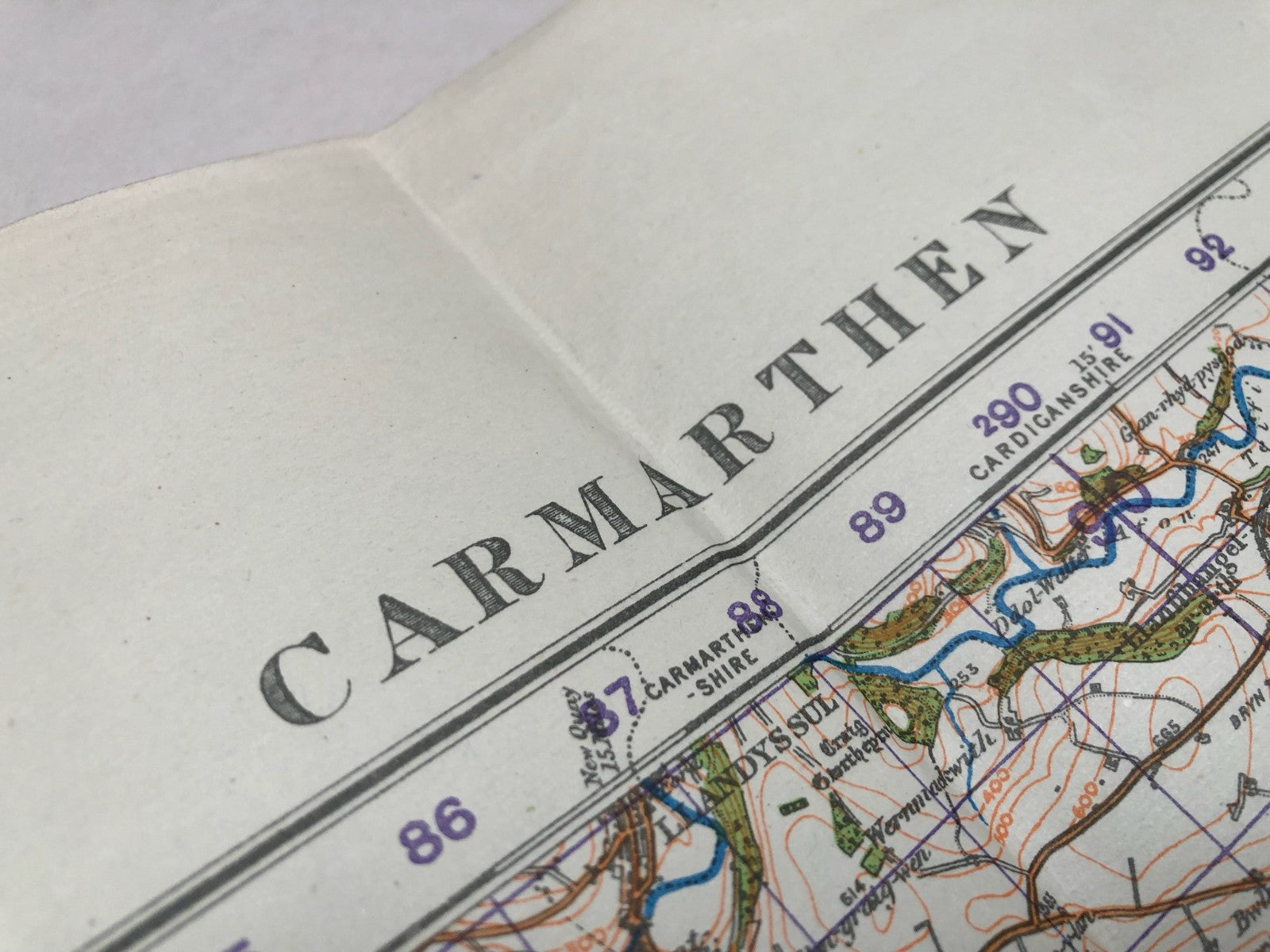Original WW2 British Army Map of the UK - Carmarthen