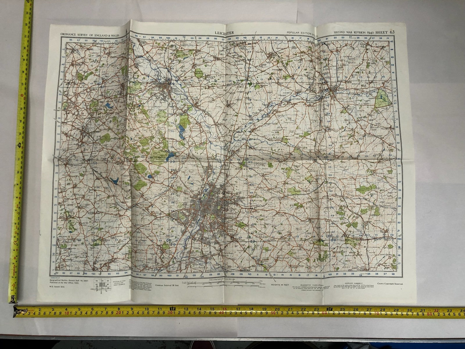 Original WW2 British Army Map of the UK - Leicester