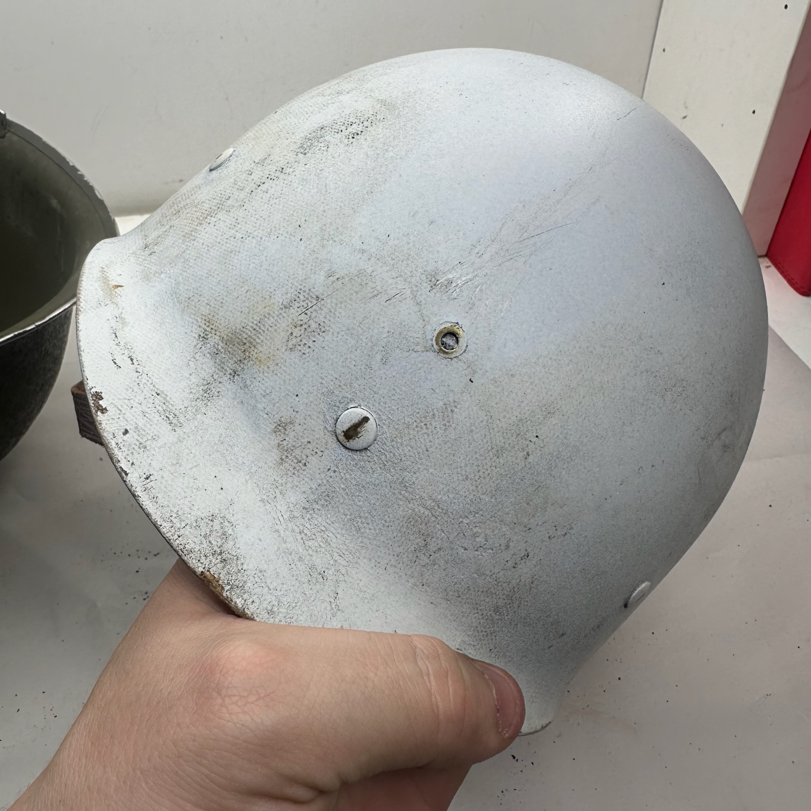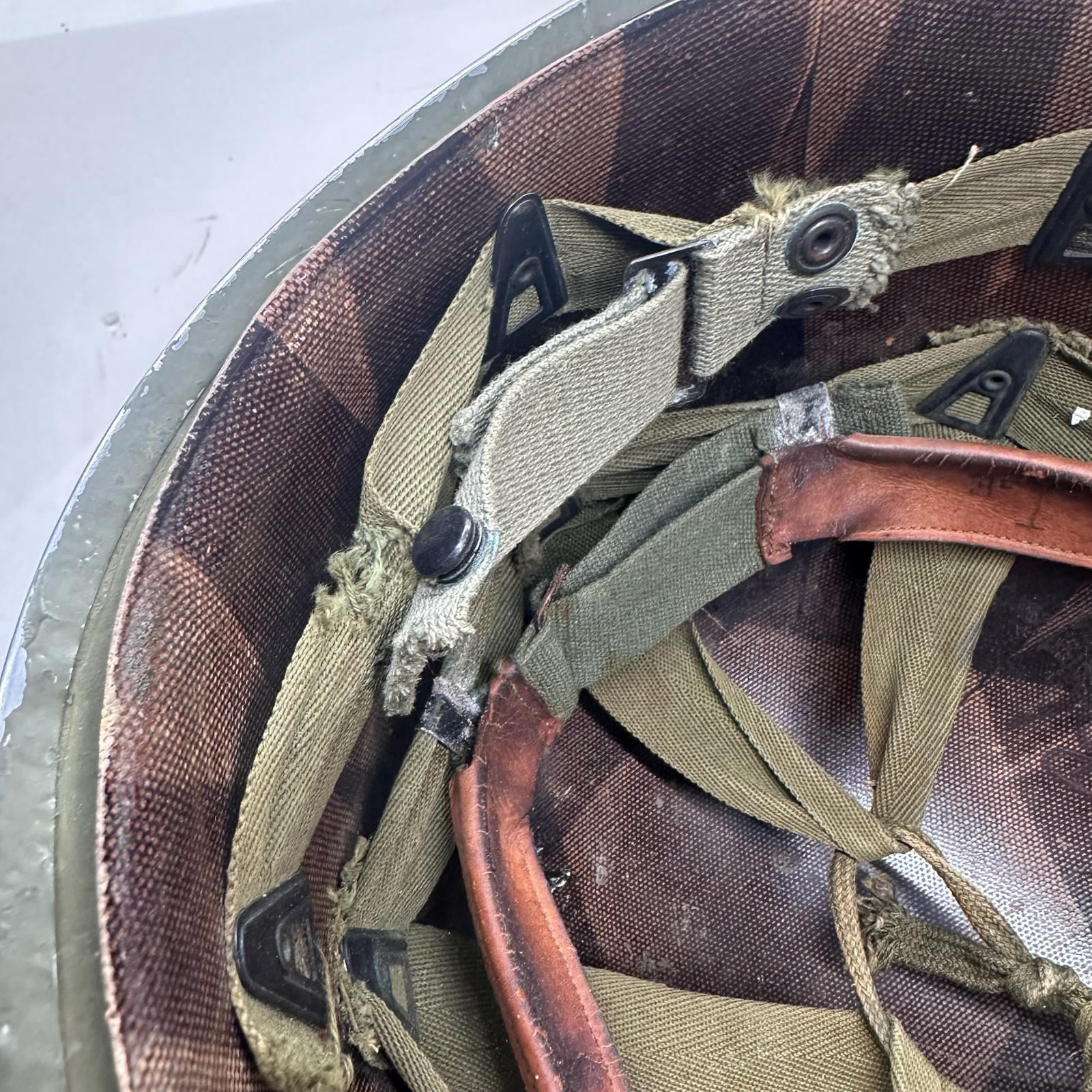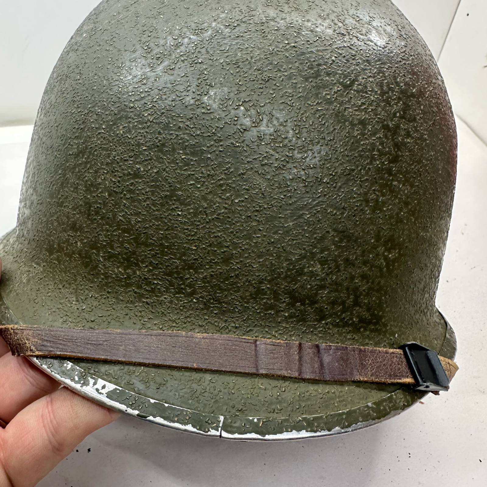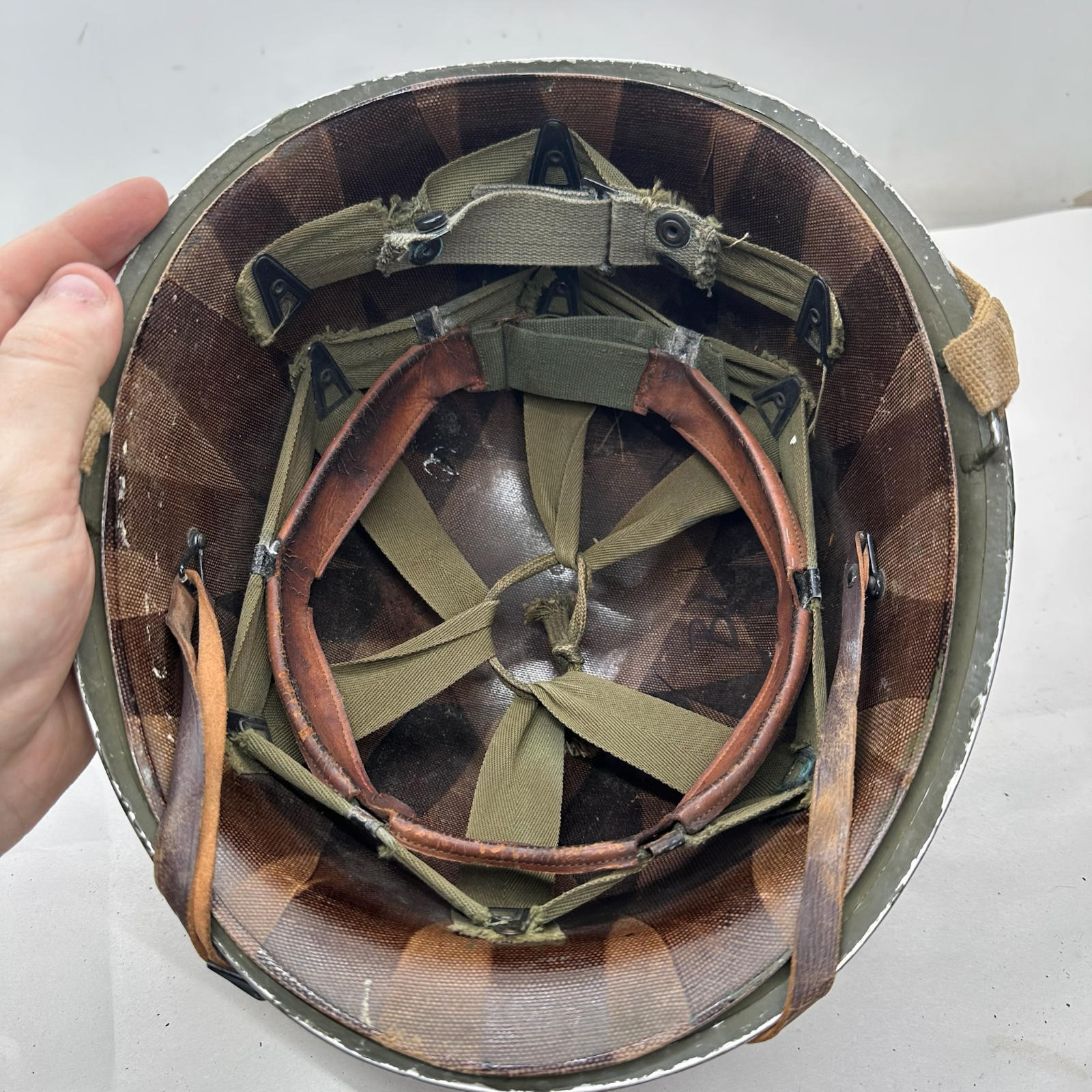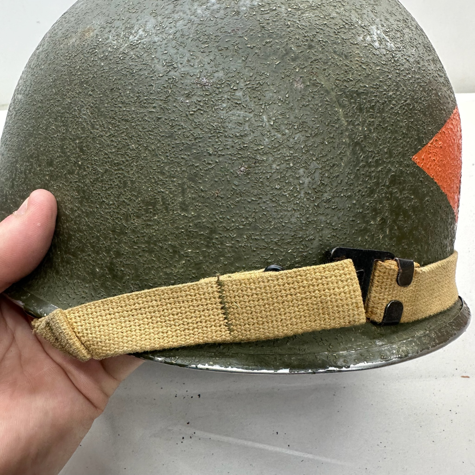 A really nice original solid M1 with an original liner, It has been restored as a 2nd Rangers helmet. But the finish is brilliantly done.