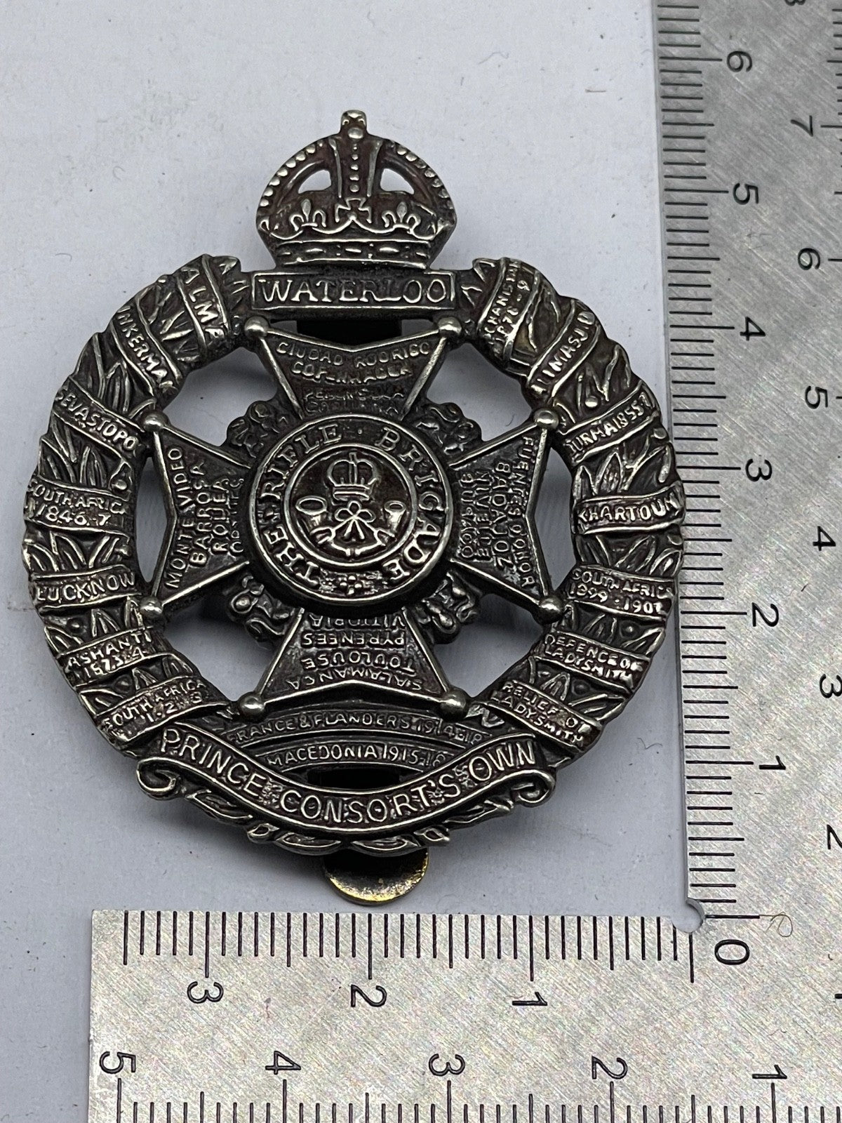The Rifle Corps Cap Badge - WW1 / WW2 Original White Metal Cap Badge.
