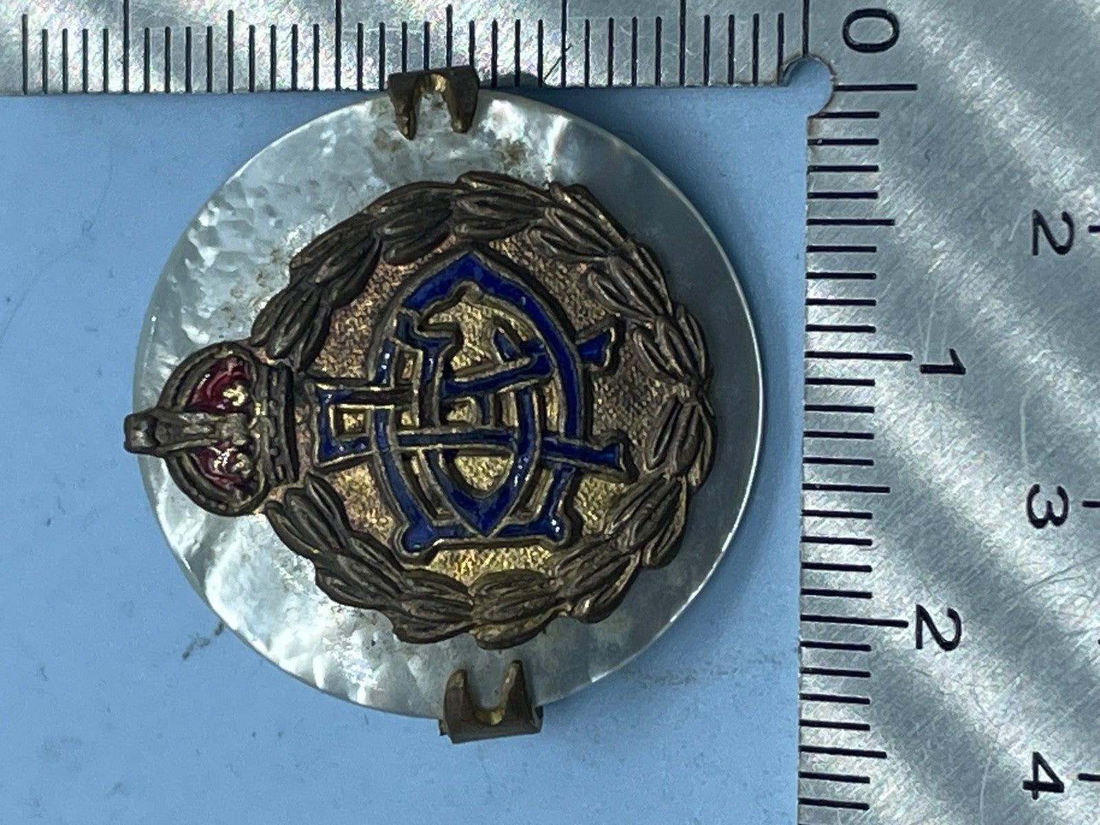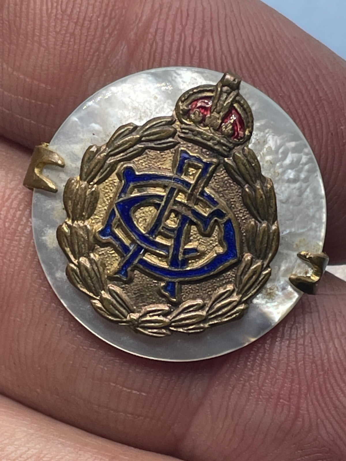 WW1 / WW2 Army Dental Corps British Army Gilt Sweetheart Brooch with Mother of Pearl backing.