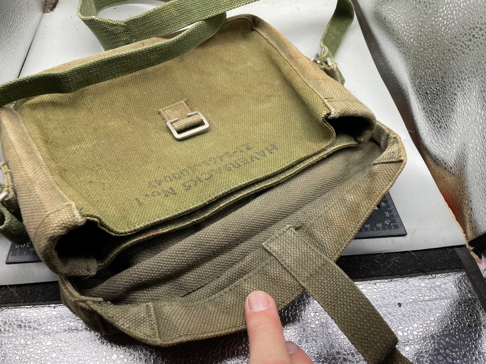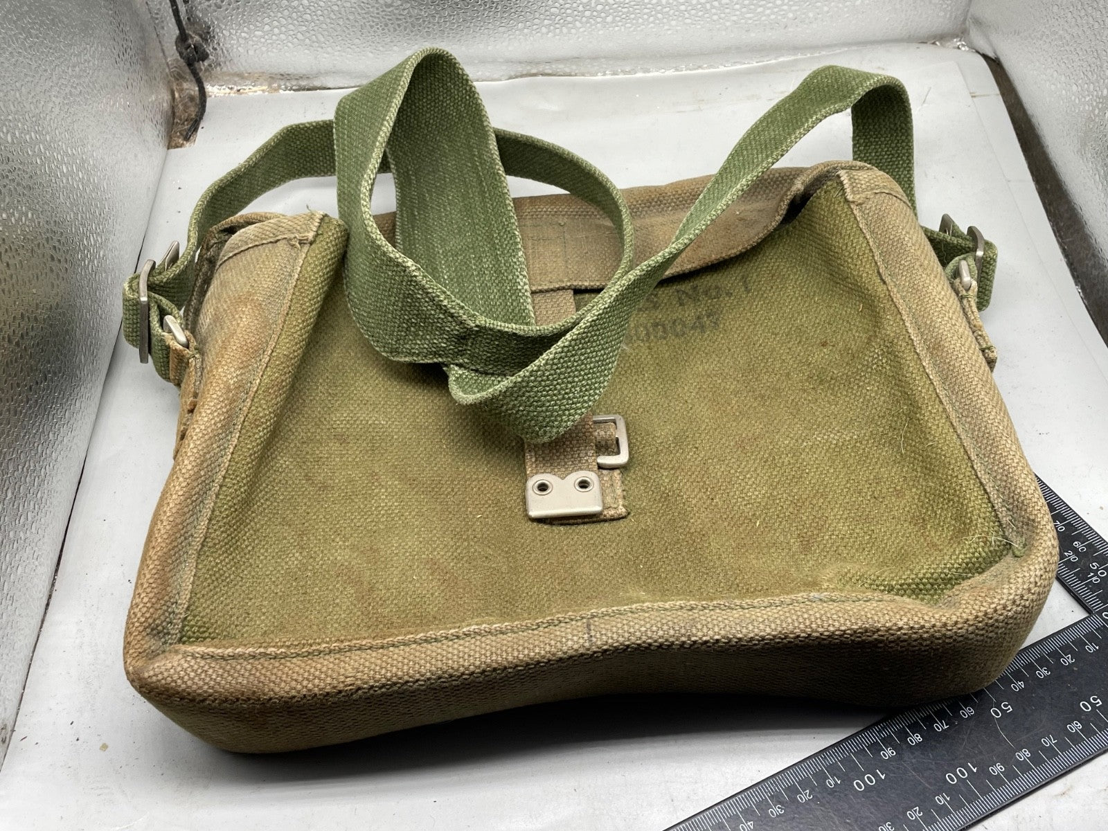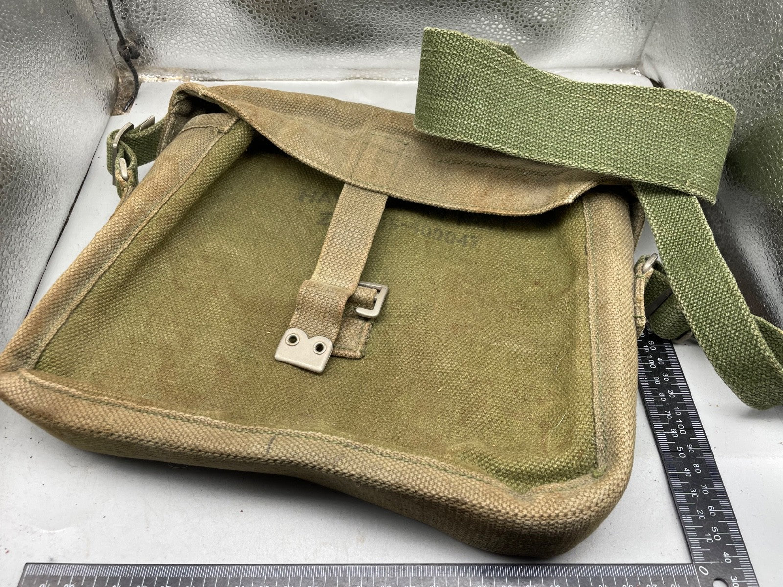 An original British Army Signals Satchel & Strap - issue 37 Pattern Haversack in good condition.