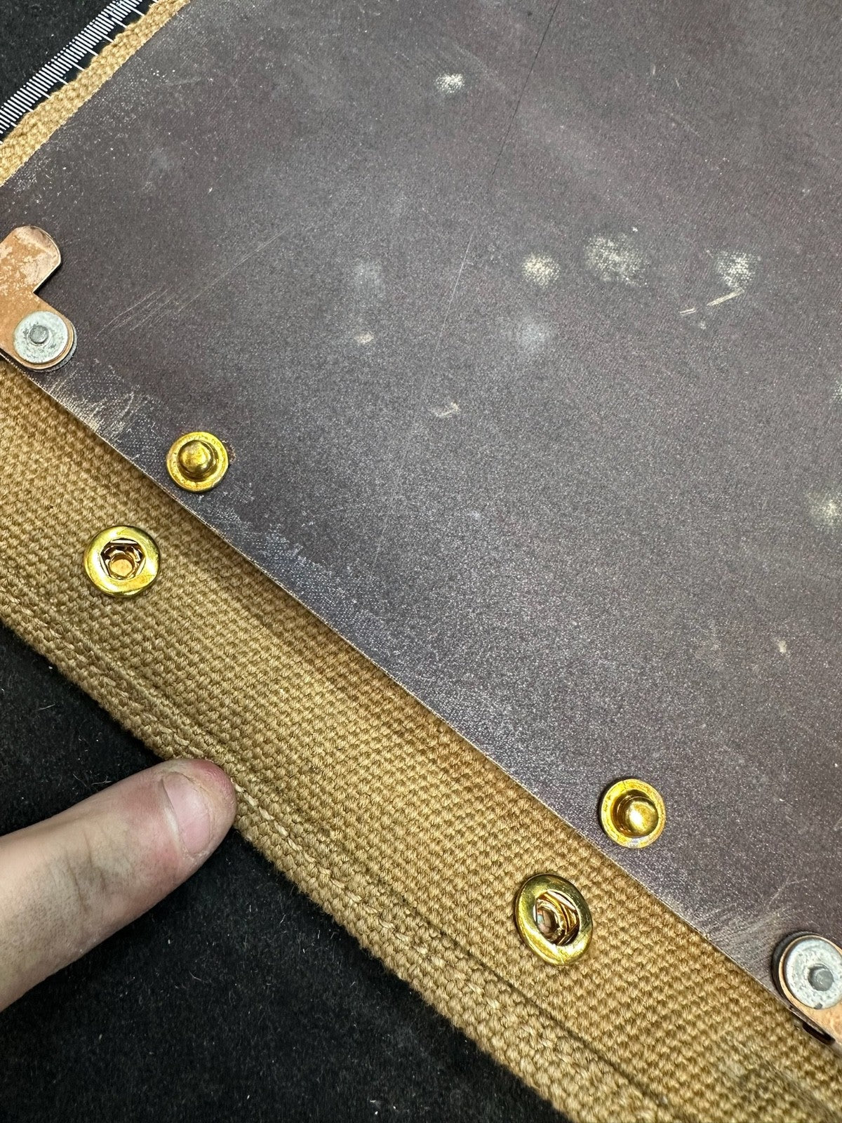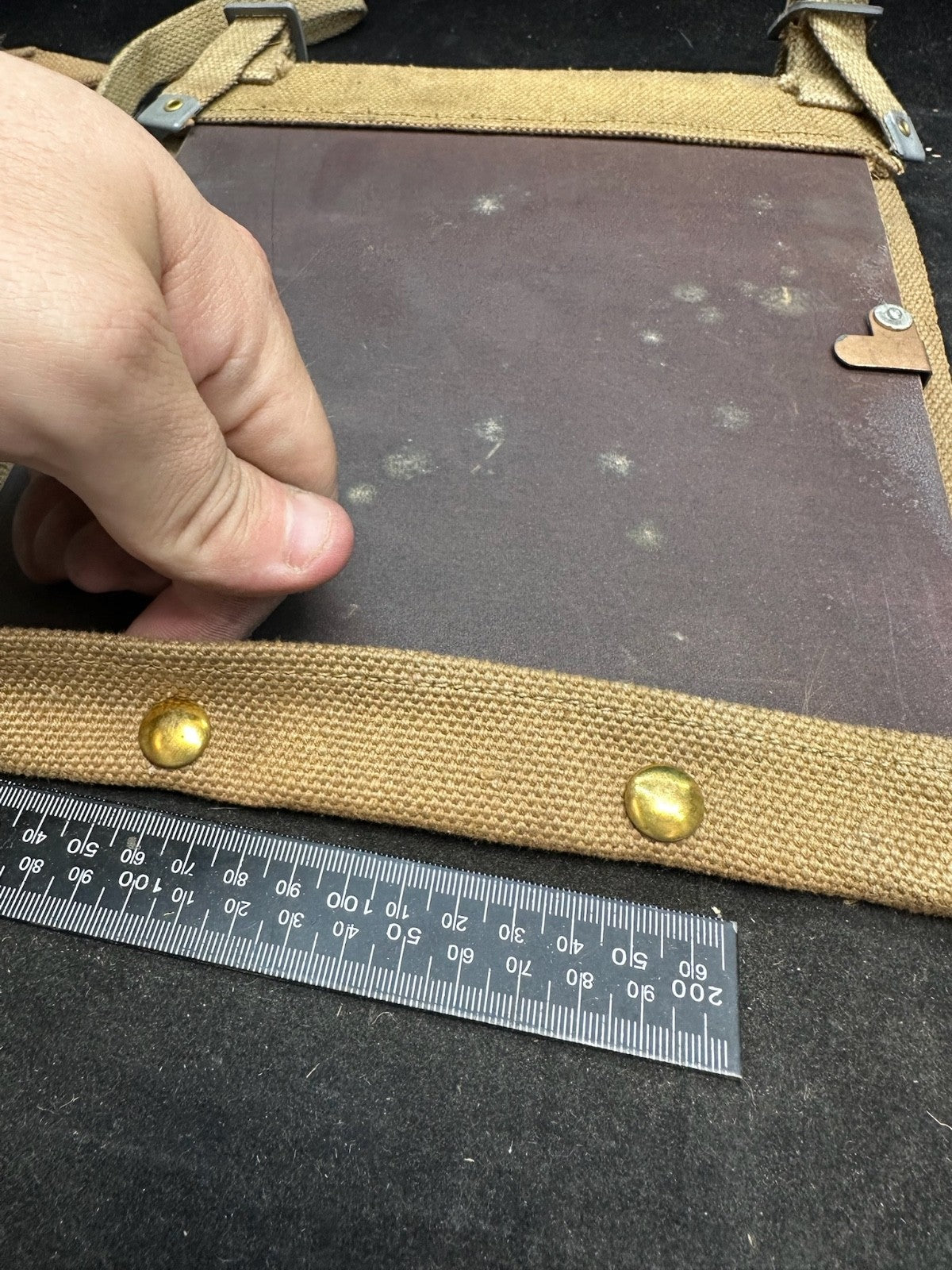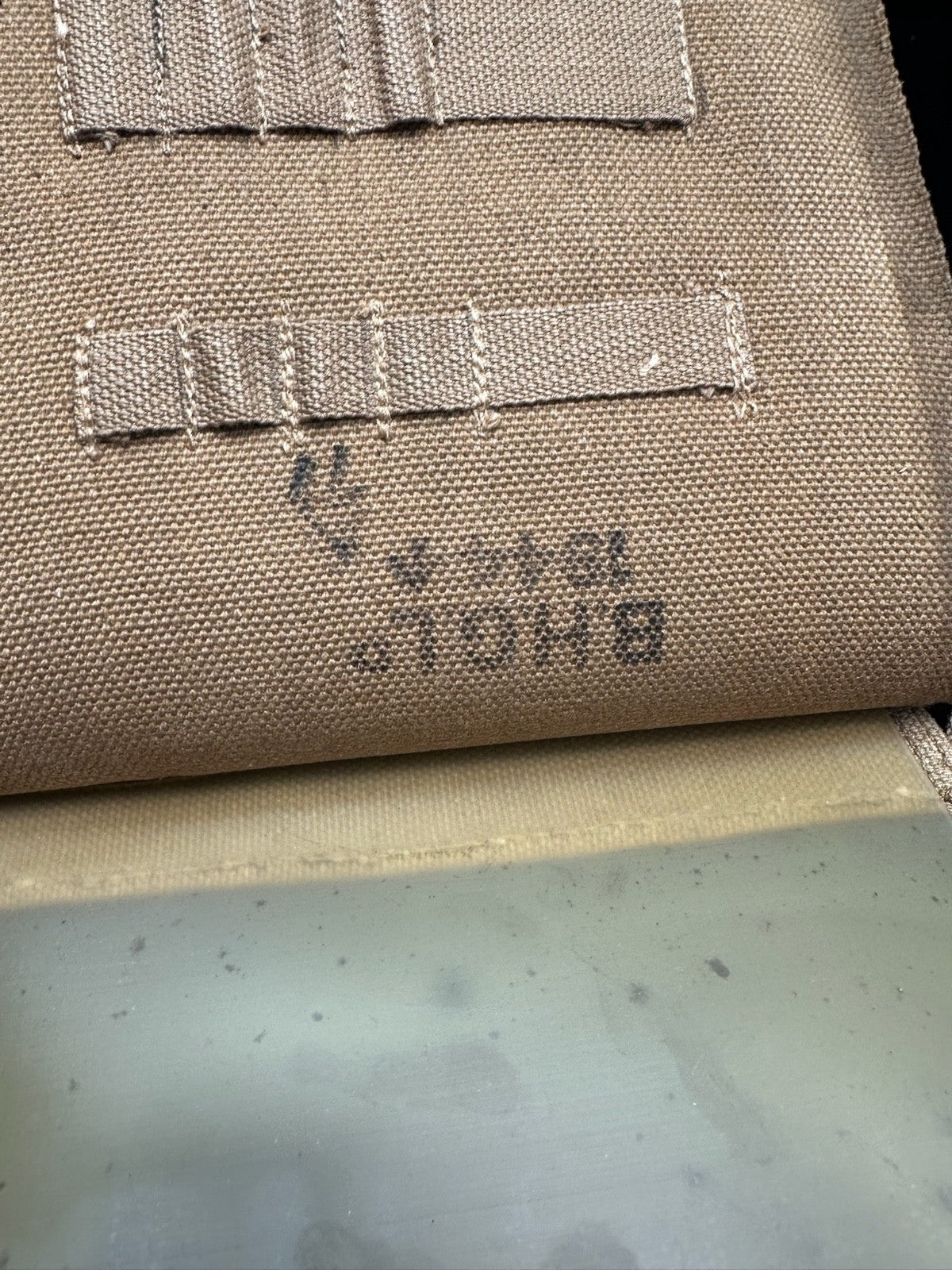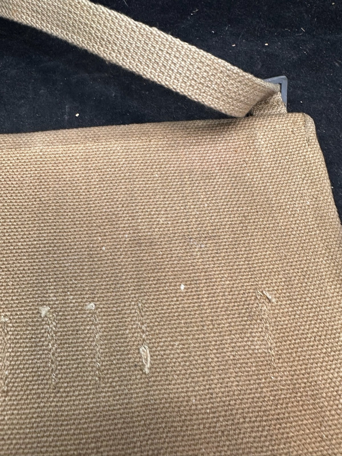 I love this ones markings, mainly because the shoulder strap is the end piece from manufacturing. It is well marked 72 yards from the original length of material. Just a cool thing!