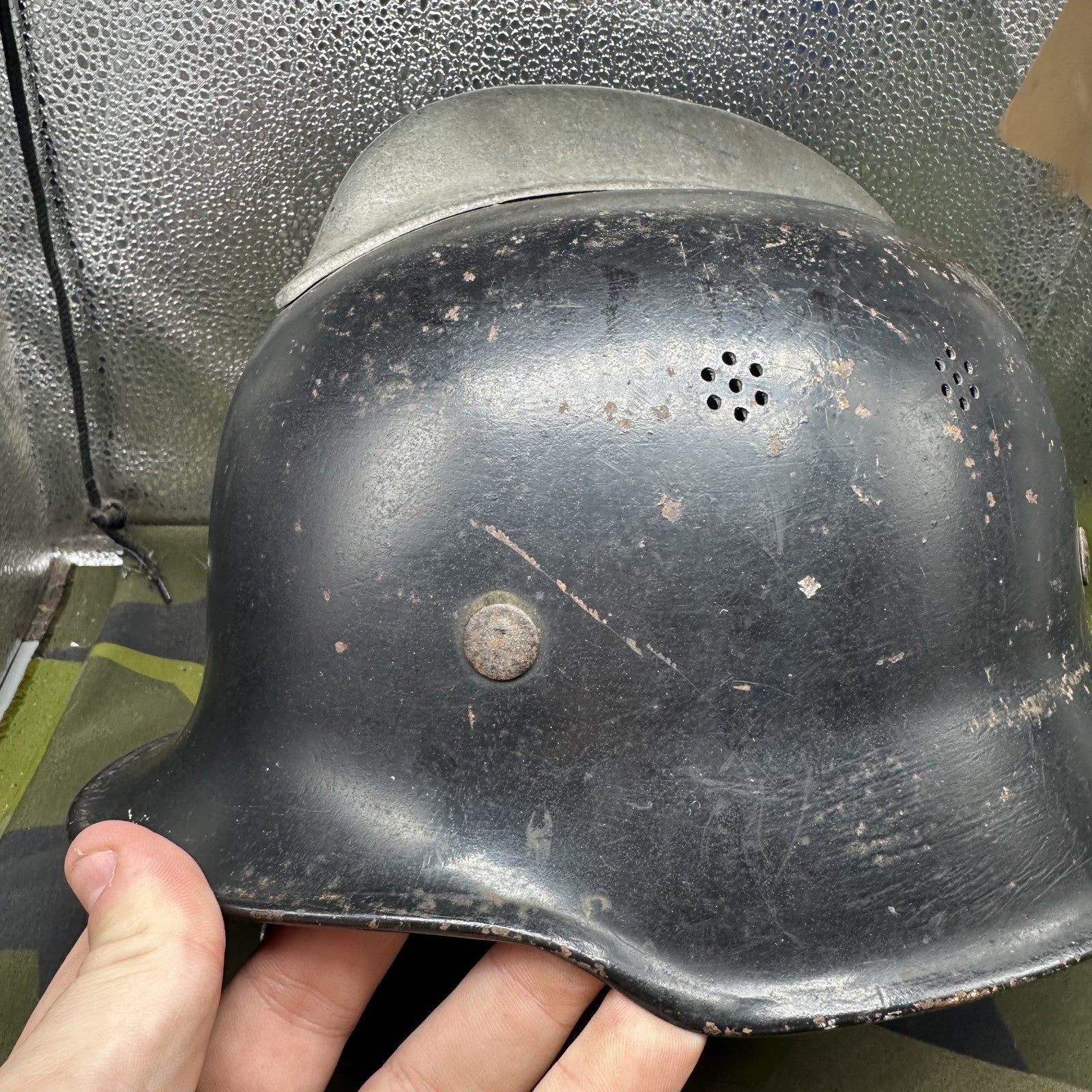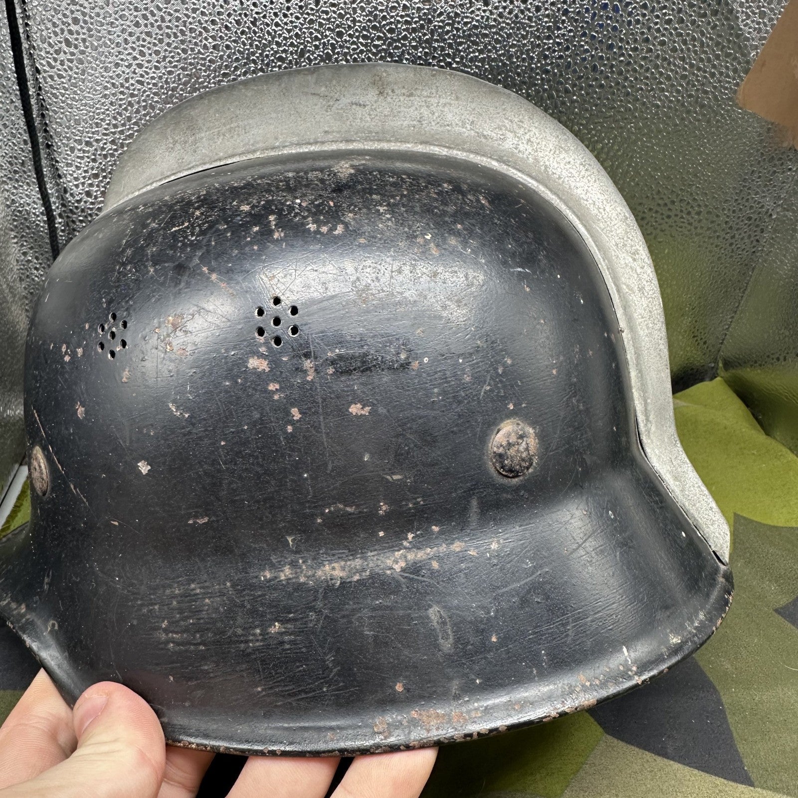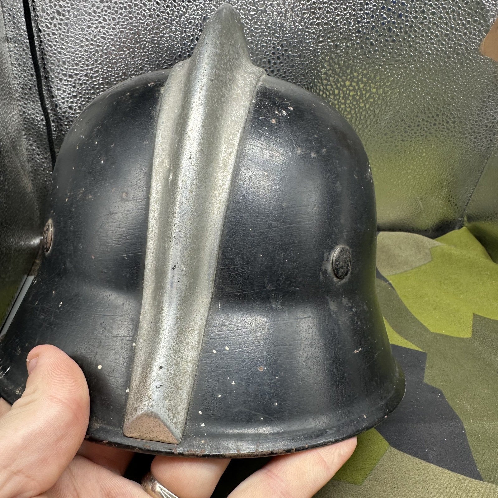 Original German WW2 M1934 Fire Police Helmet Aluminum Comb Complete