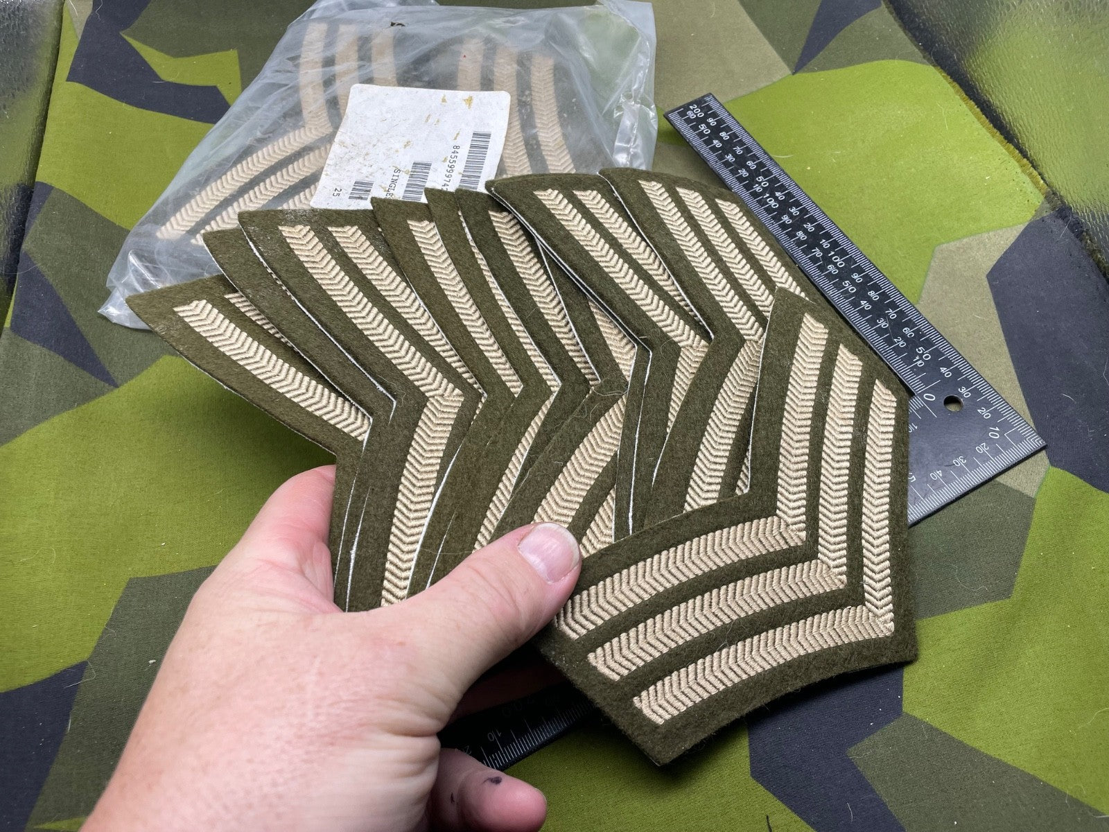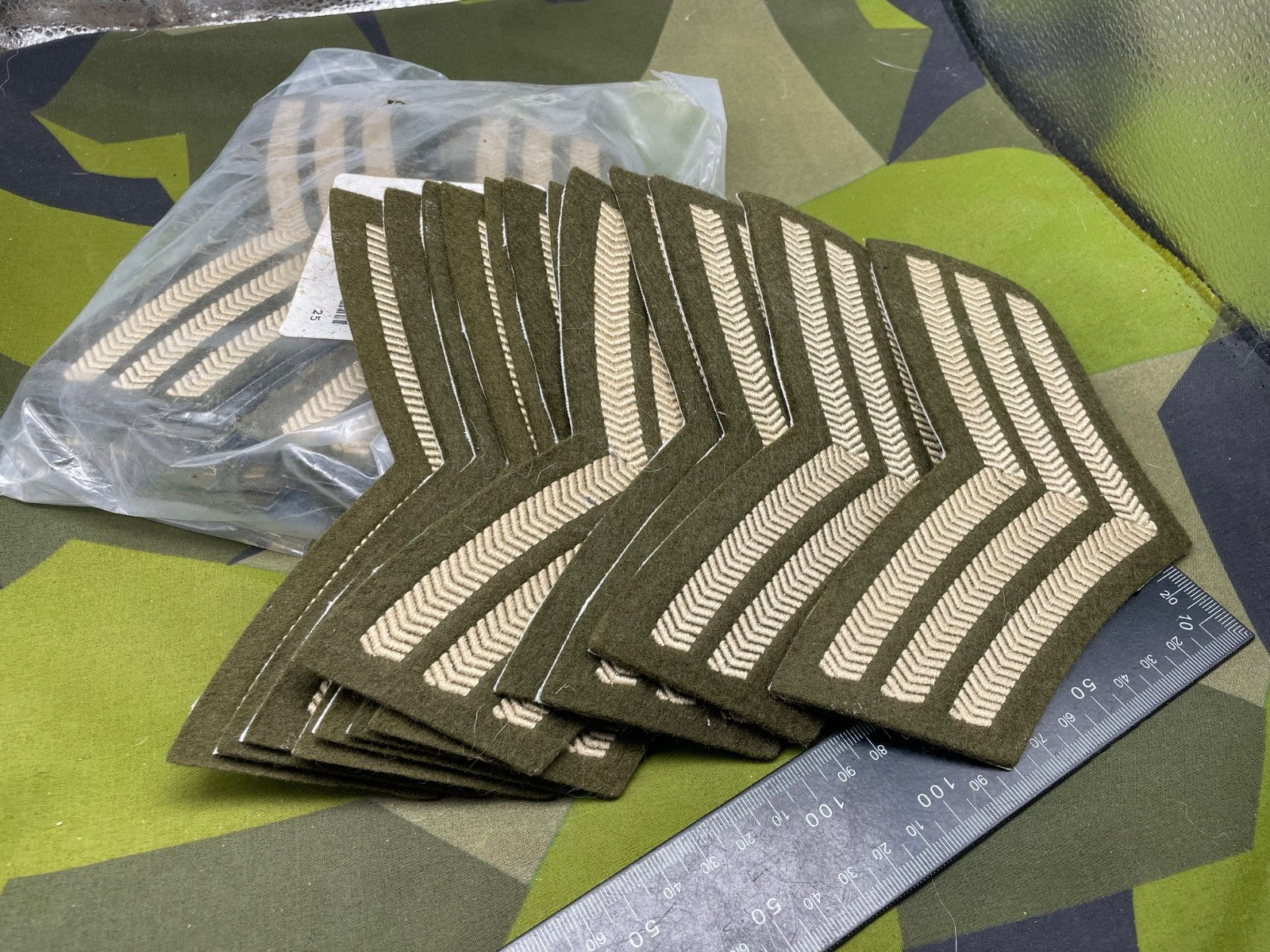 Original Pack of 25 British Army Sergeants Stripes - Unissued - Ideal for Resale.