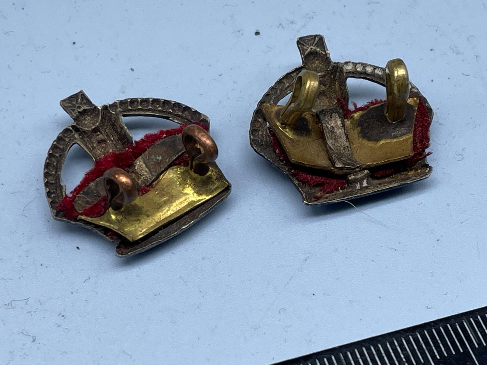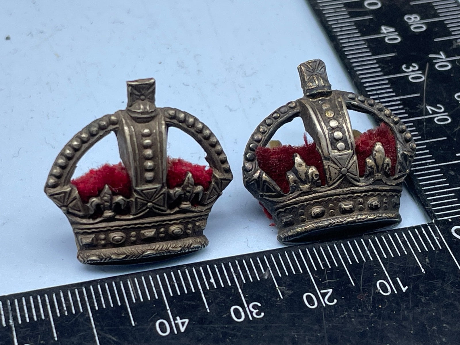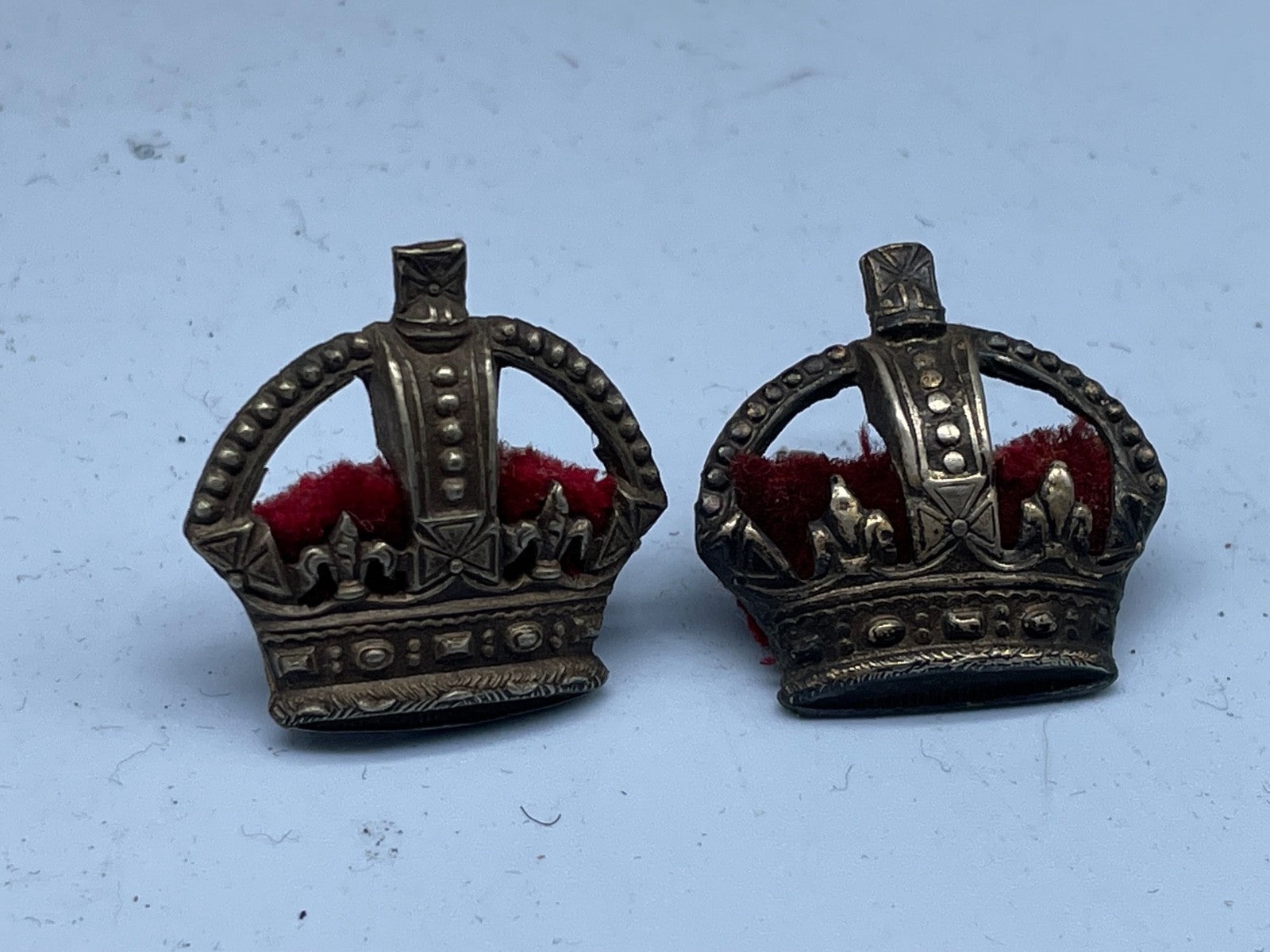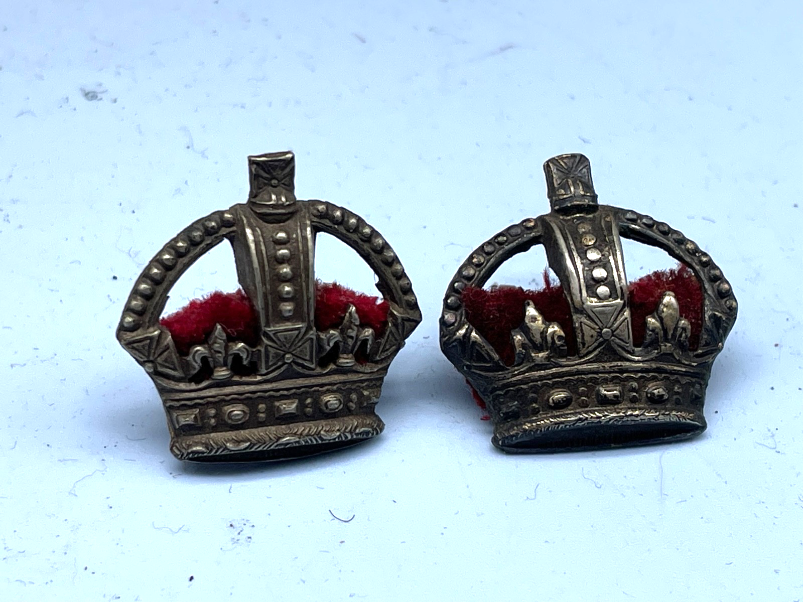 Original Pair of WW1 / WW2 British Army White Metal & Velvet Major's Rank Pips