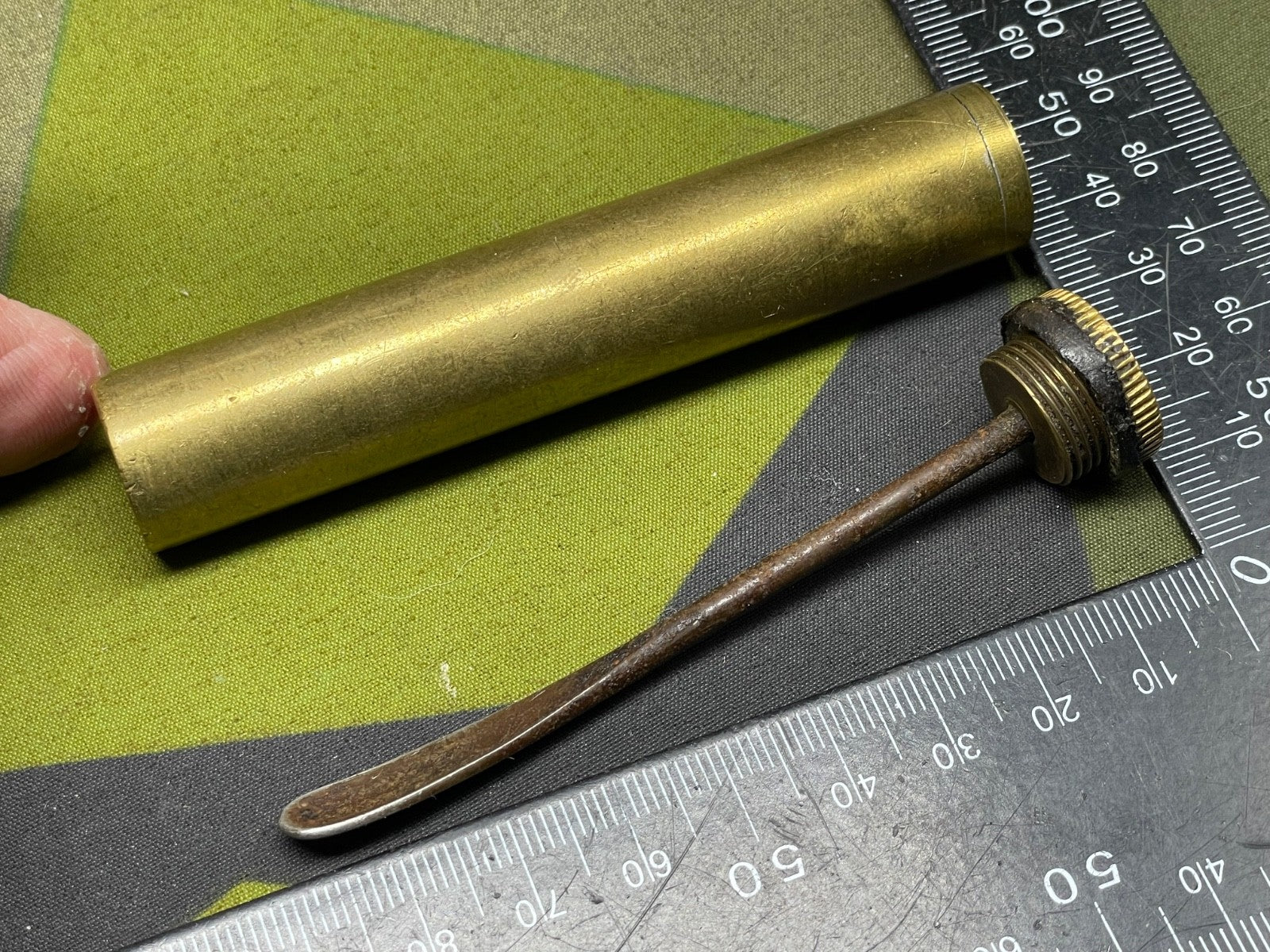 Original WW1 / WW2 British Army SMLE Enfield Brass Oil Bottle & Spoon - WD Marked on the base.