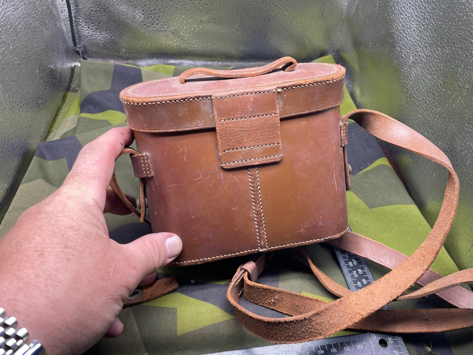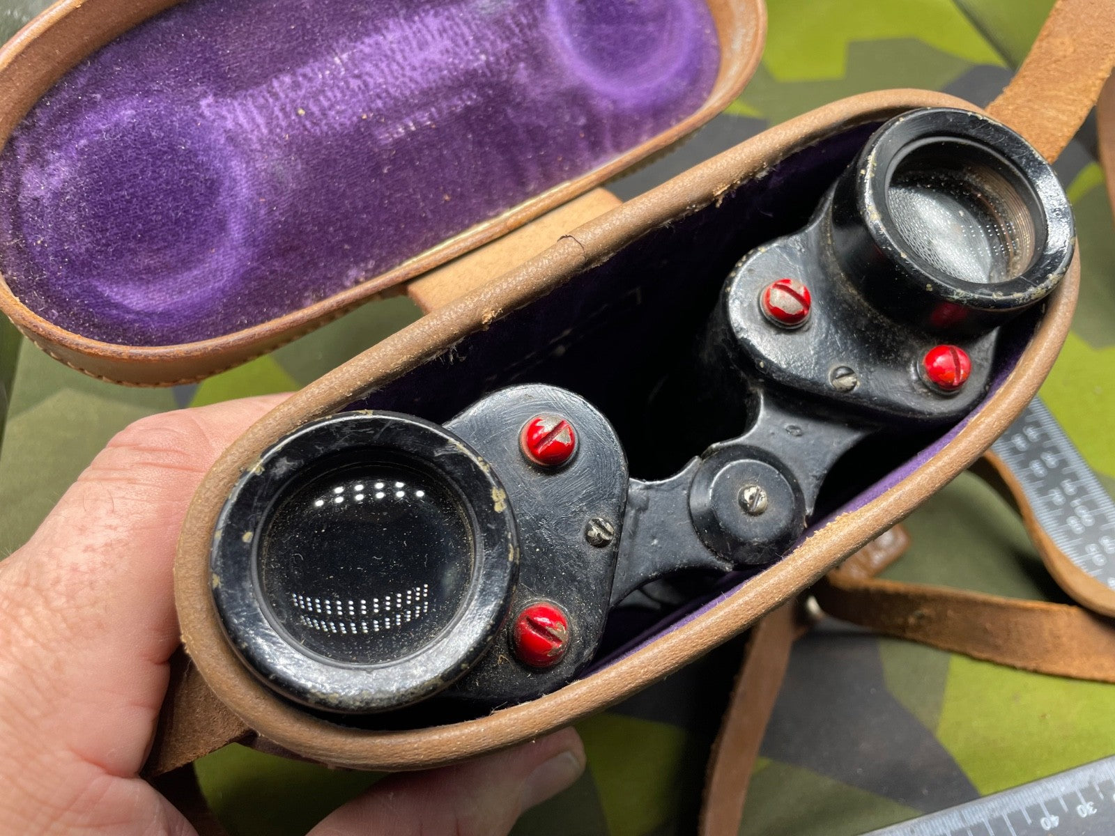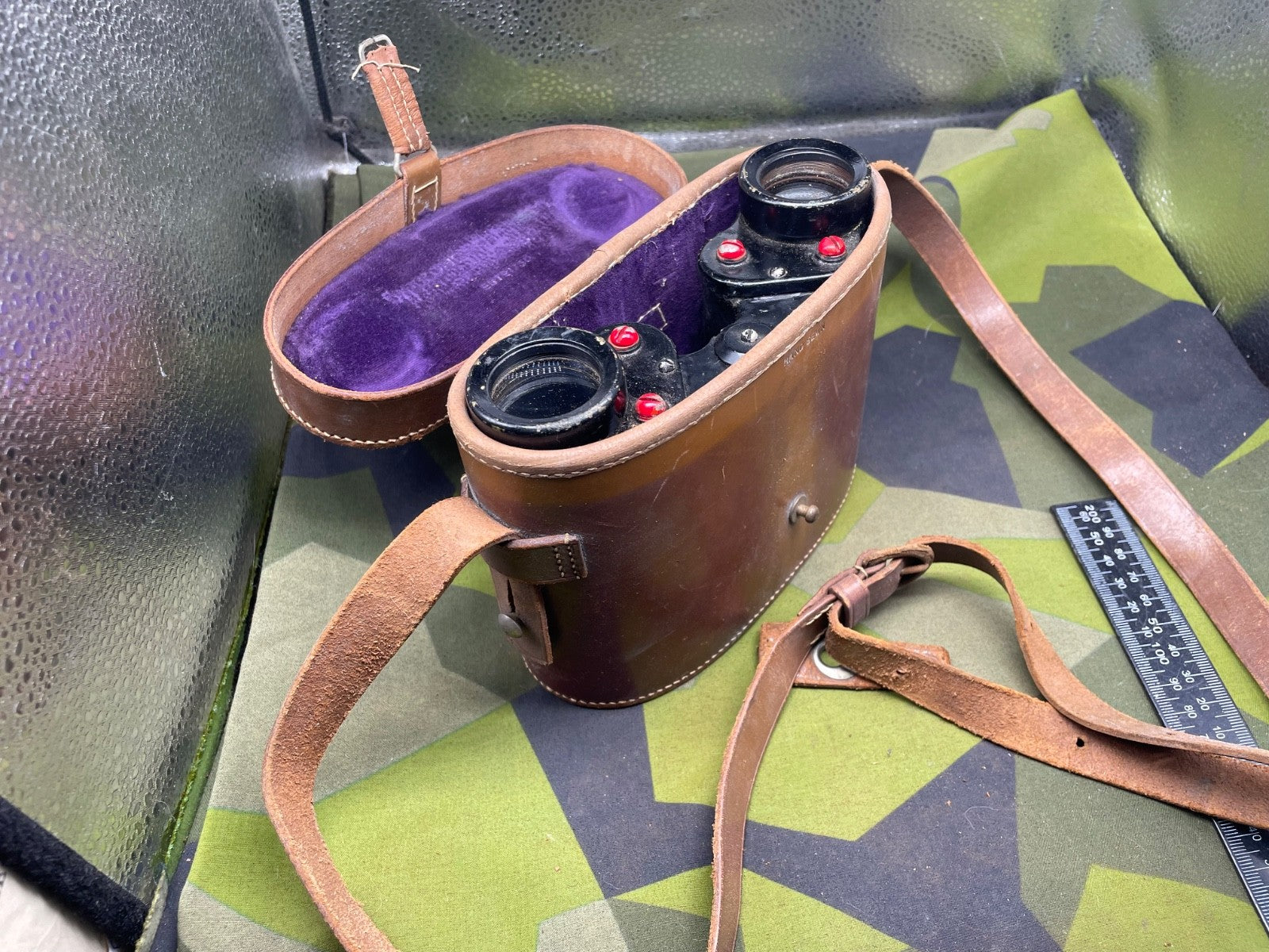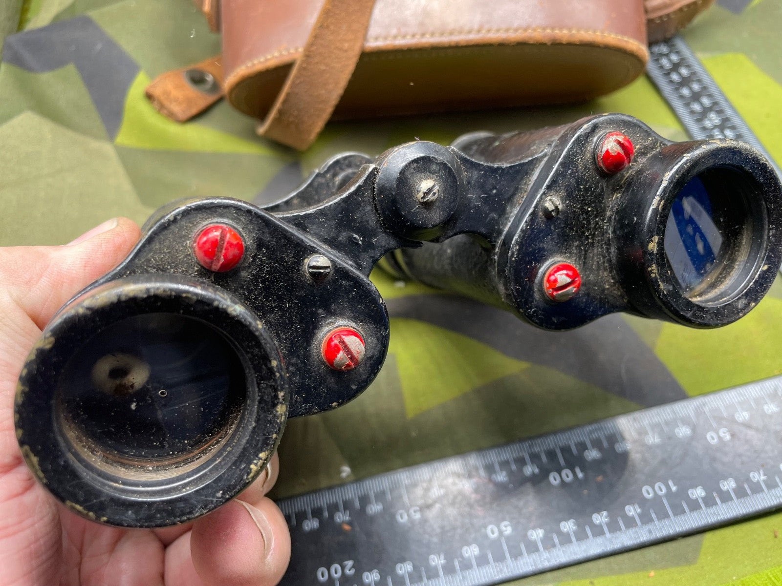 Original WW1 / WW2 US Army Binoculars in Leather Case. The closing strap for the case has become detached but it can be repaired. The lenses are very dusty and will need cleaning inside and out.