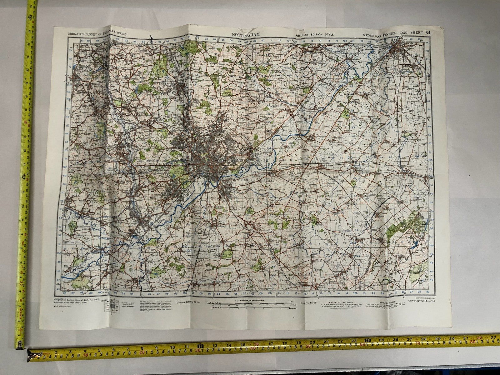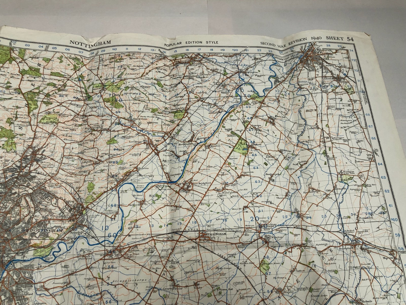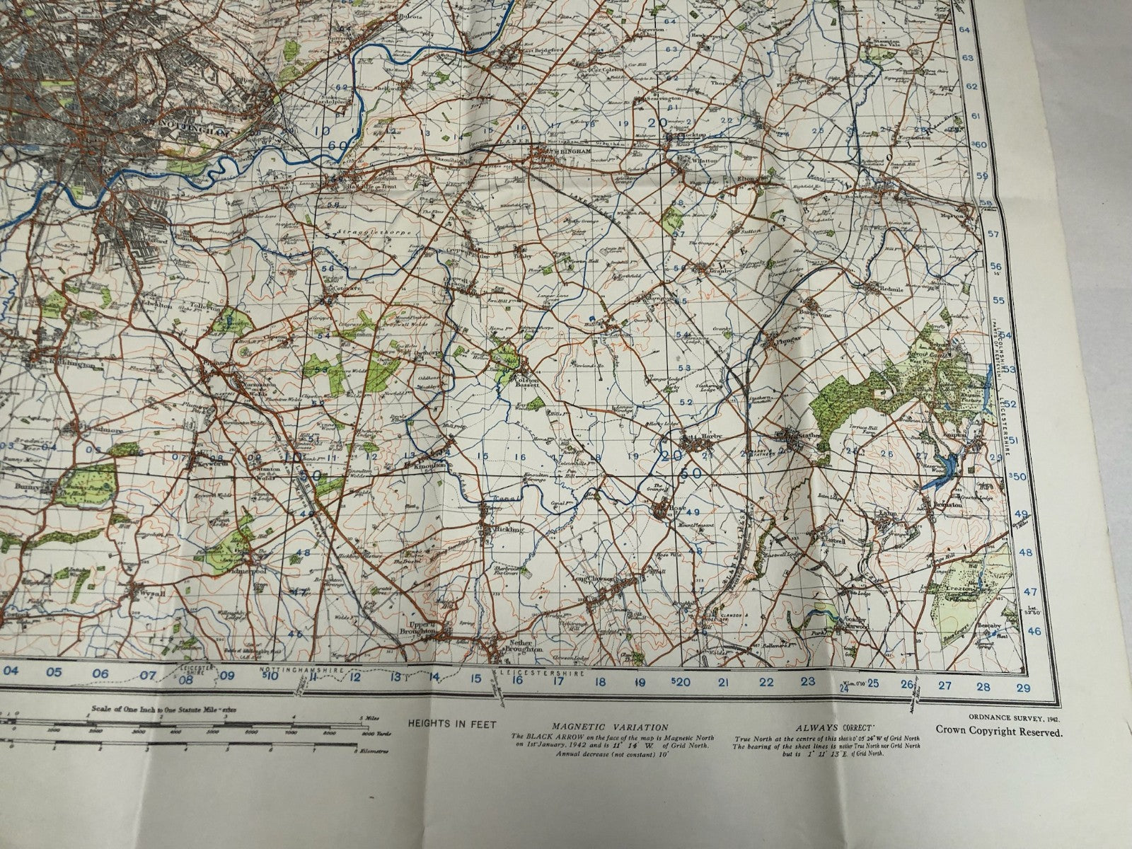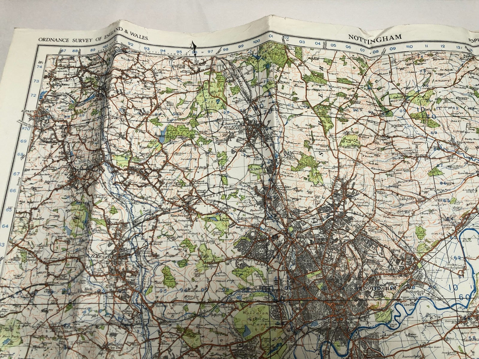 Original WW2 British Army Map of the UK - Nottingham